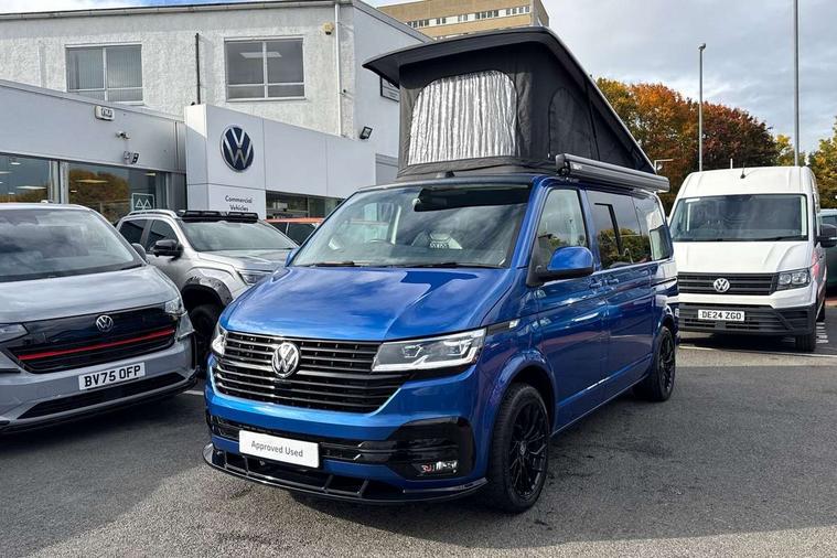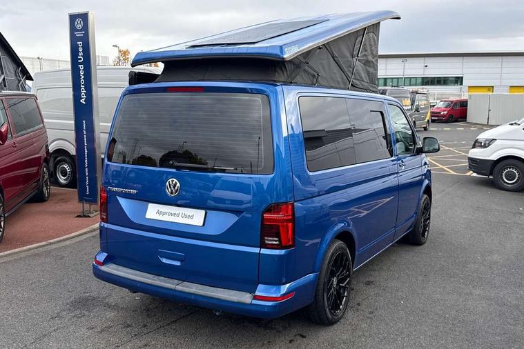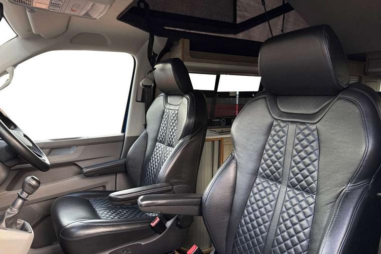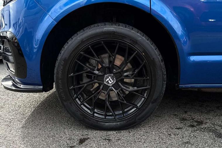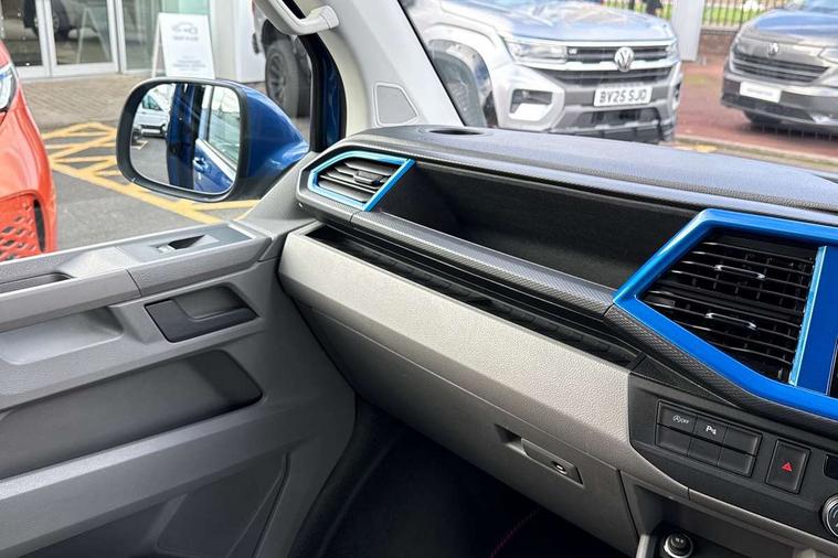 Adaptive cruise control, Cross wind assist, Dimmable illuminated instruments, Driver alert with Multi-function display plus, eCall emergency system, Electromechanical speed sensitive power steering, height and longitudinally adjustable steering column, Forward collision warning front assist with autonomous emergency braking, Mobile phone interface, Multi function display plus with black and white display, 2 USB interfaces type C in dashboard, 4 speakers with 2 tweeters and 2 woofers, Composition colour radio with 6.5" touchscreen, Digital radio reception (DAB+), Volkswagen app connect, Automatic headlight control, leaving home and manual coming home feature, Closing rear wing door with unlatching from the inside, Front fog lamps with cornering light, Green tinted heat insulating glass in cab and passenger compartment, Heated front windscreen, Left convex exterior mirror, Power adjustable and heated exterior mirrors, Power folding adjustable door mirrors with separately heated, Radiator grille with 2 chrome trims, Rear wing doors without window apertures, Right convex exterior mirror, Transporter nameplate on the rear fender, Windshield wiper intermittent control with rain sensor for windshield wipers, 3 spoke leather wrapped multi function steering wheel, Auto dimming breakaway interior rear view mirror, Comfort headliner in cab, hardboard roof trim in passenger and load compartment, Dust/pollen filter, Front and rear left without window closed side panel in load compartment, Front seats on the right in 1st row of seat, Glove compartment with illumination, High partition, Interior plastic loading edge protection, LED Interior lighting in load and passenger compartment, Manual adjustable lumbar support for right single seat in 1st row seats, Refrigerant R134a, Rubber floor covering in cab, Standard lower part dashboard in palladium, Storage compartments on cab seats and reading light, Without right side window apertures in passenger and load compartment, Comfort pack - Transporter, Exterior pack without fog light- Transporter, Non smoker pack - Transporter, 3 point height adjustable seat belts on outer seats cab with electric pretensioners, Driver and front passenger airbag with front passenger airbag deactivation, Single tone horn, Warning buzzer and light for driver and front passenger seat belt not fastened, Without child safety lock in passenger compartment, Anti theft alarm system with interior monitoring in cab, backup horn and towing protection, Lockable wheel bolts, 16" chassis with 16" brake system, Diesel particulate filter, Electronic stability control, ABS, ASR with deactivation button, hill start assist and brake assist system, Start/stop system with regenerative breaking, 16" Clayton alloy wheels,