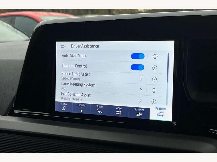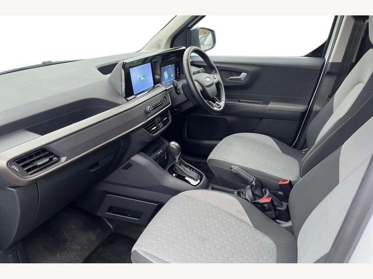 8" touchscreen, Door open warning light, Driver alert system, Easy fuel capless refuelling system, eCall emergency system, Electric power assisted steering (EPAS), Ford pass connect modem, Intelligent Speed Assist, Lane keeping alert, Reverse parking sensor, Tachometer, Traffic sign recognition, Trip computer, Tyre pressure monitor, Wireless charging pad, 4 front speakers, Aux input socket, Steering wheel radio controls, Auto High Beam Assist, Automatic windshield wiper, Body colour upper front bumper, Body coloured door handles, Complete tinted glass, Front grille with chrome spear, Halogen headlamps, High mounted stop lamp, Hinged rear cargo door, Power front windows with power one touch up and down on both sides, Self colour lower front bumper, Self coloured rear bumper, Self coloured rear bumper end caps, Side load door track cover, Unglazed rear doors, Variable intermittent windshield wipers, 12V power socket in front, 12V power socket in load compartment, 2 Front USB ports, 2 way front headrestraints, Barlo pin hex cloth upholstery, Electronic air temperature control (EATC), Floor mounted console, Glovebox with lid, Header courtesy light with 2 map lights, Overhead console, Rubber floor cover in cab area, Silver interior door handles, Sunvisors with mirrors, Tilt and telescopic adjustable steering wheel, Child proof rear door locks, Curtain airbags - left and right, Driver and passenger front seatbelt pre-tensioner, Driver and passenger seatbelt reminder, Driver and passenger side airbags, Driver's airbag, Front 3 point seatbelts, Passenger airbag, Passenger airbag deactivation switch, 2 remote fobs, Immobiliser, Keyless start, Emergency brake assist, ESC with ABS + EBA + EBD, ESP, Front disc and rear drum brakes, H6 70 AH EFB CCA 700 Alternator, Heavy duty battery, Hill launch assist, Mechanical parking brake, Roll over mitigation, Start/stop system, Traction control, 16" 10 spoke sparkle silver finish alloy wheels including locking wheel nut, Any vendor tyre eco tread,