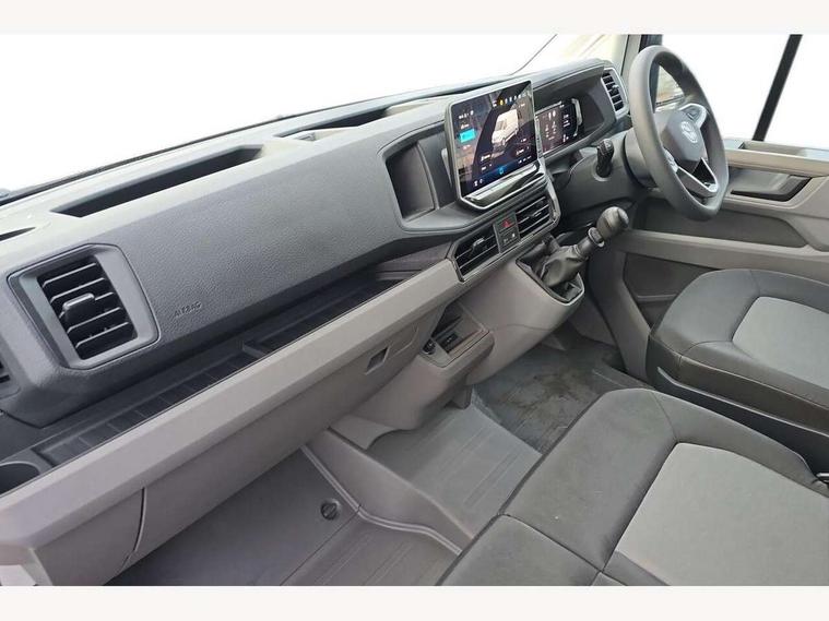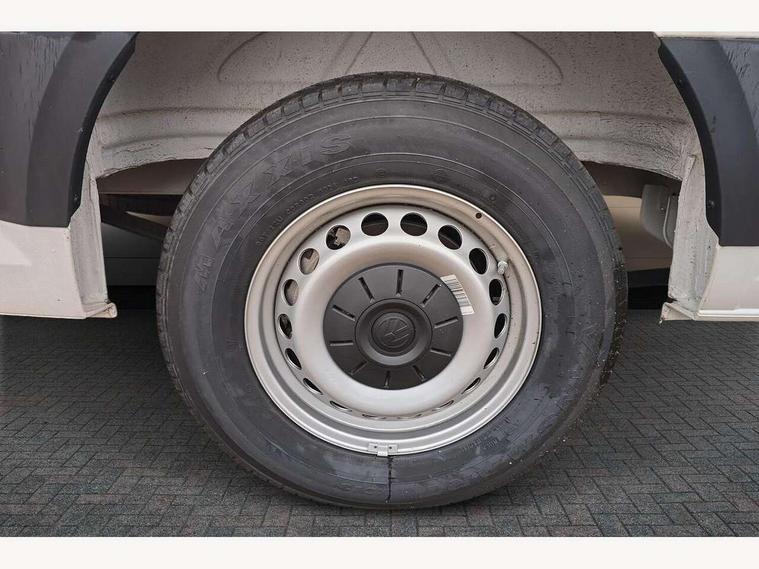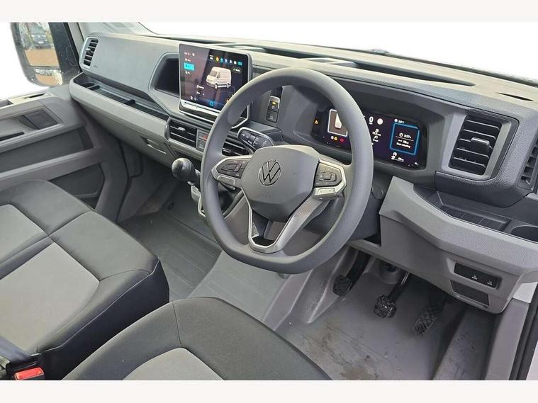 Bluetooth, Digital clock, Driver alert system, E-call + We connect basic preparation, Instrument cluster, Lights on warning buzzer, Locking fuel cap, Multi-function Display Plus, Rev counter, Service indicator, Speedometer, Voice control system, Composition media with 6.5" with we connect plus prep, 4 speaker, multifun display plus, USB, mob interface, app con, "We connect function", DAB Radio, Auto low beam mode, Leaving home function and manual coming home function, Cab doors, Convex and wide angle mirror, Driver seatbelt warning light, Electric windows, Electrically heated and adjustable door mirrors, Half painted front bumper, Heat insulating glass, Indicators in front door mirrors, One towing eye in front, Rear wing doors with 270 degree hinges, Special identification plate, Unpainted radiator grille, Air recirculation system, Ashtray, Centre console storage tray, CFCU preparation, Charcoal filter, Climatic air conditioning, Document holder on centre console, Drinks holders, Electromechanical Servotronic steering, Electronically controlled heating system, Fully adjustable suspension type driver seat, Grab handles on rear entry pillars, Height adjustable head restraints, Height and reach adjustable steering wheel, Illuminated glove compartment with lockable lid, Interior light, including 2 reading lights, Interior light, switchable by door, Jack and tool kit, Preparation for interface for external use with terminal block, Storage compartments in doors and in step, right, Storage tray on dashboard, Two 12V outlets in the cab (in the dashboard), Without rear side trim panel passenger load compartment, Non-smokers pack - Crafter, 3 point inertia reel belt on all seats, Automatic hazard light with emergency braking, Crosswind assist, Driver and front passenger airbag with front passenger airbag deactivation, Height adjustable seatbelts for outer cab seats, 1 rigid key, Anti-theft alarm with interior monitor, back up horn and tow away protect, overhead storage with two 1-DIN, reading light, SAFELOCK with 2 remote keys, Engine immobiliser, ABS, Automatic post collision braking system, EBA, EBD, EDL, ESP, Front disc brakes, HBA, Hill start assist, Parking brake - hill hold control, Start and stop system with regenerative braking, TCS, Hub cap covers,
