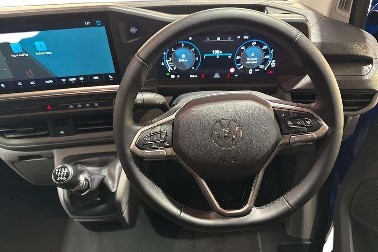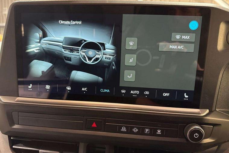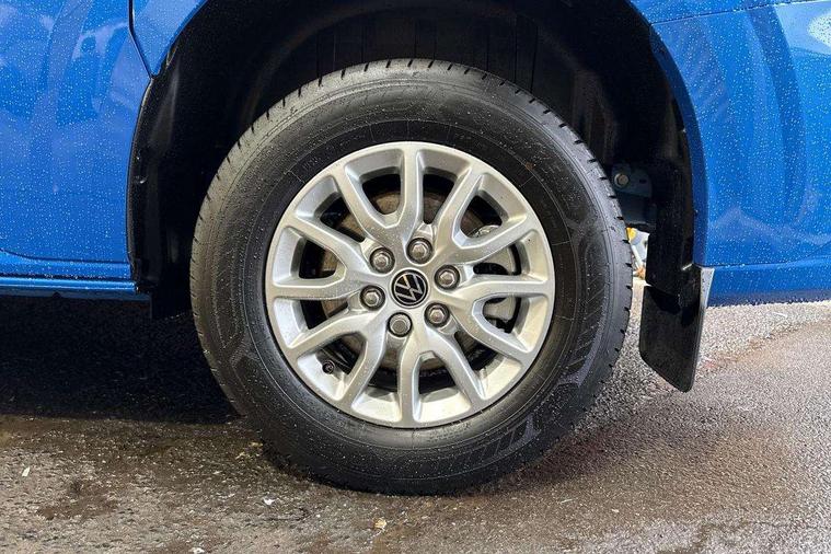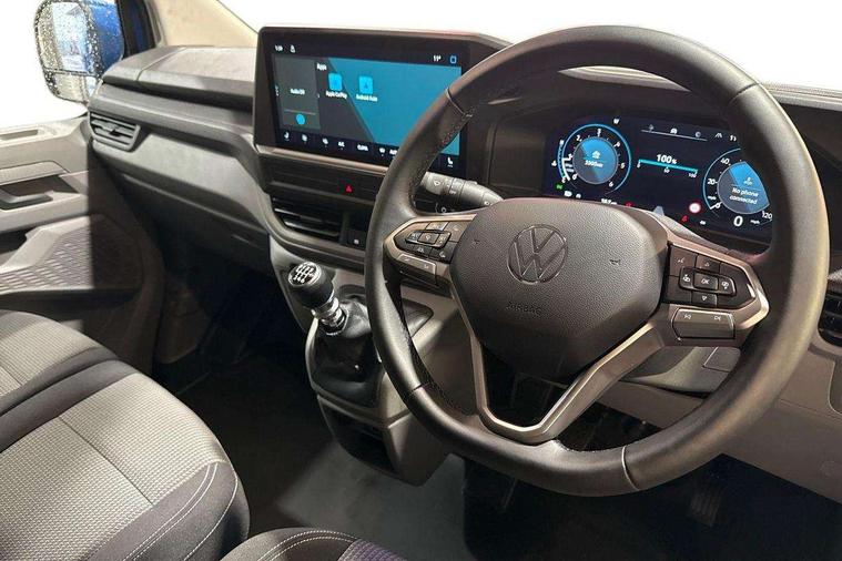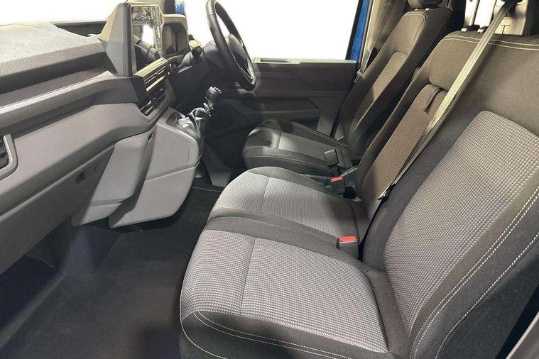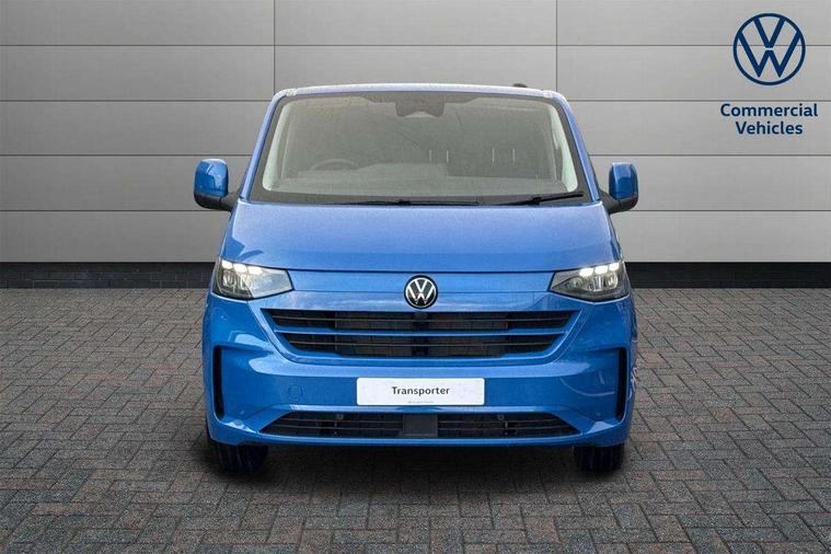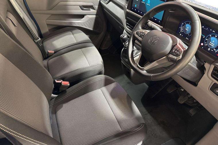 12" digital drivers display, 13" touchscreen infotainment display with wireless app connect and DAB radio, 5G Modem, Adaptive cruise control, Apple CarPlay and Android Auto, Dynamic road sign display, eCall emergency system, Electromechanical speed sensitive power steering, height and longitudinally adjustable steering column, Lane and blind spot assist with exit warning system, Preparation of VW connect and connect plus, Wireless mobile phone charging, Wrong way driver warning, Body colour bumpers, Body coloured door handles, Body coloured door mirrors, Body coloured radiator grille, Electrically heated, adjustable and folding door mirrors, Heat reflecting side window glass, Mud flaps front and rear, Rear Transporter nameplate in black grained decorative trim, Vehicle opening configuration 1x 1st row of seats, 2x all doors, 12V outlet in centre console and 12V outlet on rear right D-pillar, 2x 15-W USB data/charging ports in dashboard and 1x USB-C, 1x USB-A center bottom, 2x LED lights in load compartment, 3x additional super bright LED lights in load compartment, 4 way height and tilt adjustable head restraints, 5 additional USB-C charging ports, Black plastic scuff plate for sliding door in cargo without illumination, Cabin interior lighting, Glasses compartment in driver side roof, Grab handle on A-pillar passenger side, Illuminated lockable glovebox, Lashing rings for reinforced floor covering, Leatherette gear lever, Narrow centre console with cup holder and compartment for mobile phone, Overhead storage compartment, Rubber floor covering in cab, Striped fabric upholstery, Without passenger seats in load compartment, Driver and front passenger airbag with front passenger airbag deactivation, Dual tone horn, Front and curtain airbags for driver and front passenger, Seat belt pretensioner for driver seat, Anti theft alarm system with interior monitoring in cab, backup horn and towing protection, Electronic immobiliser, Lockable wheel bolts, Preparation for alcohol ignition interlock, 5+ Promise, Alternator - 230A, Electromechanical brake booster, Electronic stability control, ABS, ASR with deactivation button, hill start assist and brake assist system,