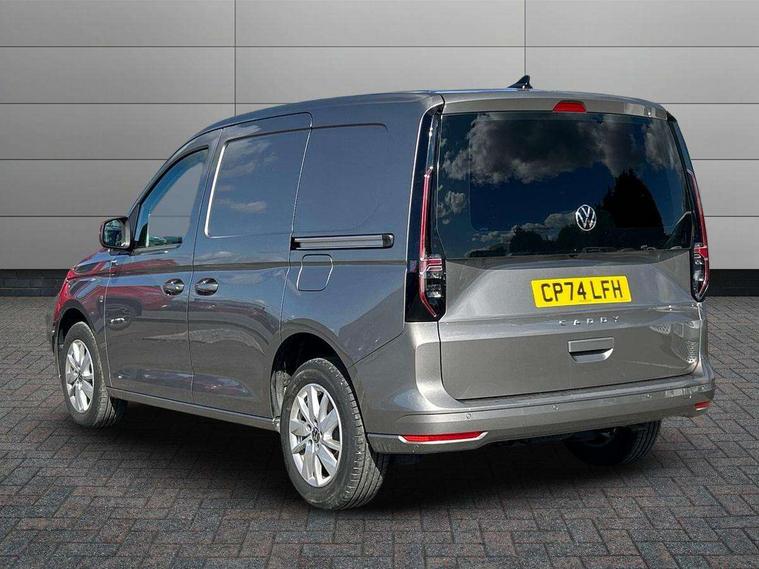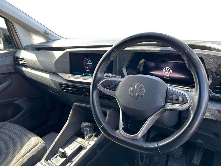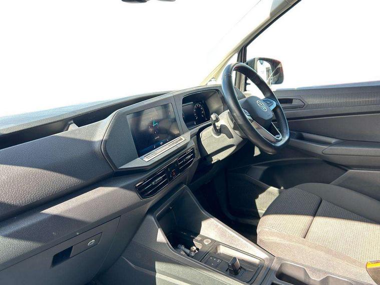Bluetooth - Mobile phone interface, Digital cockpit, Digital multi-function cockpit display, Driver alert system, eCall emergency system, Front and rear parking sensors, Lane assist, Rear view camera, Seatbelt warning indicator, Service indicator, Start-stop system with regenerative braking, 2 USB interfaces type C in dashboard, App-Connect - Wireless for Apple CarPlay, DAB Radio, We Connect Plus Preparation, Automatic hazard light activation under emergency braking, Body coloured bumpers, Electric front windows, Gloss black painted exterior mirror housings, body-colored door handles and Silver sliding door rail, LED rear combination lights, LED rear tail lights, Rear view mirror with anti dazzle function, Roof rail preparation, Windscreen wiper with variable intermittent delay and wash-wipe system, Electronically controlled heating system, ergoComfort seats for driver, Interior light in headliner incorporting LED technology, Lockable glove compartment door with light, Manual heating and ventilation system, Manual height adjustment for front seats and seat cushion inclination and depth adjustment on drivers seat, Multi function leather steering wheel, Power-adjustable lumbar support for drivers seat, Reach and rake adjustable steering column, Six lashing points for securing loads, Steering wheel paddle shift, Storage compartments under driver and front passenger seats, Sun visors with mirror, airbag label on front passenger sun visor, Winter pack plus - Caddy, 3-point seat belts in front, with pretensioner and height adjustment, Driver and front passenger airbag with front passenger airbag deactivation, Keyless-Go without SAFELOCK, Tyre pressure monitoring system, Anti-theft alarm system, interior monitoring, backup horn, and towing protection, Electronic engine immobiliser, Remote central locking with deadlocks, interior locking, Anti locking braking system (ABS), Automatic post collision braking system, Diesel particulate filter, Electric parking brake with auto hold function, Electronic brake force distribution (EBD), Electronic differential lock (EDL), Electronic stabilisation programme (ESP), Engine drag torque control (MSR), Hill hold assist, Traction control system (TCS), Decorative beige birch vein inserts, Wheel bolts with anti-theft protection (unlockable),
