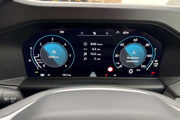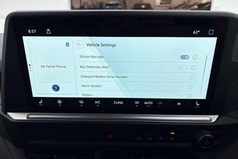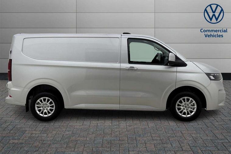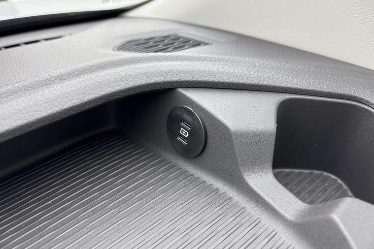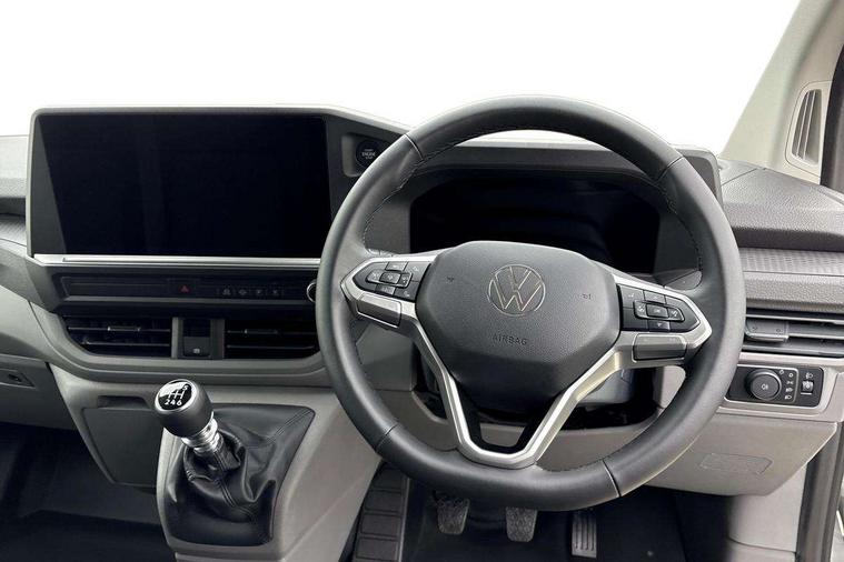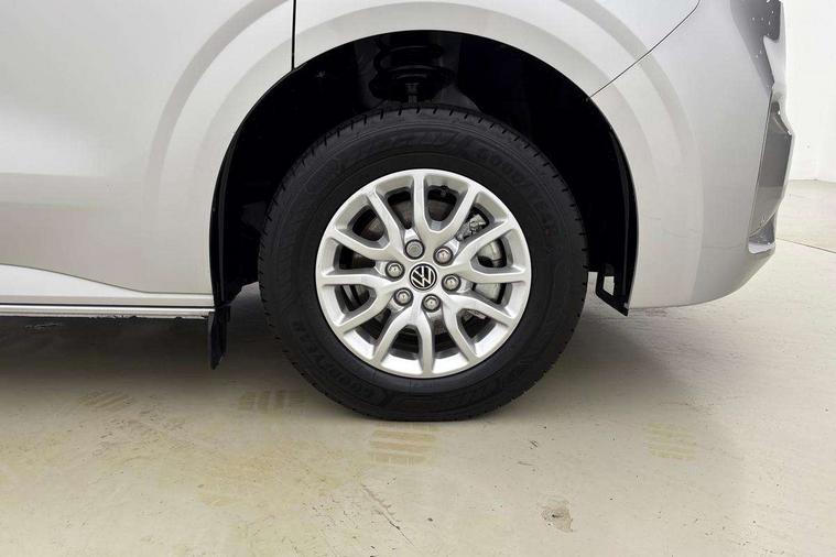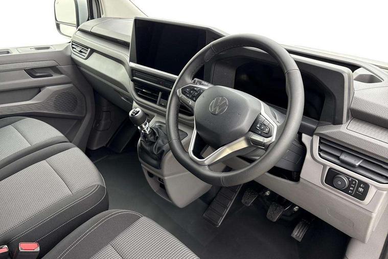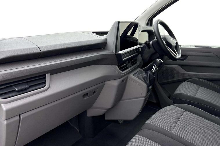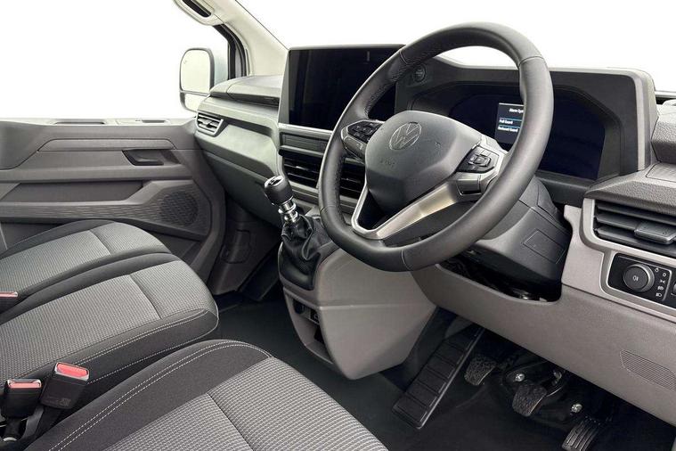 12" digital drivers display, 13" touchscreen infotainment display with wireless app connect and DAB radio, 5G Modem, Adaptive cruise control, Apple CarPlay and Android Auto, Dynamic road sign display, eCall emergency system, Electromechanical speed sensitive power steering, height and longitudinally adjustable steering column, Lane and blind spot assist with exit warning system, Preparation of VW connect and connect plus, Wireless mobile phone charging, Wrong way driver warning, Body colour bumpers, Body coloured door handles, Body coloured door mirrors, Body coloured radiator grille, Electrically heated, adjustable and folding door mirrors, Heat reflecting side window glass, Mud flaps front and rear, Rear Transporter nameplate in black grained decorative trim, Vehicle opening configuration 1x 1st row of seats, 2x all doors, 12V outlet in centre console and 12V outlet on rear right D-pillar, 2x 15-W USB data/charging ports in dashboard and 1x USB-C, 1x USB-A center bottom, 2x LED lights in load compartment, 3x additional super bright LED lights in load compartment, 4 way height and tilt adjustable head restraints, 5 additional USB-C charging ports, Black plastic scuff plate for sliding door in cargo without illumination, Cabin interior lighting, Glasses compartment in driver side roof, Grab handle on A-pillar passenger side, Illuminated lockable glovebox, Lashing rings for reinforced floor covering, Leatherette gear lever, Narrow centre console with cup holder and compartment for mobile phone, Overhead storage compartment, Rubber floor covering in cab, Striped fabric upholstery, Without passenger seats in load compartment, Driver and front passenger airbag with front passenger airbag deactivation, Dual tone horn, Front and curtain airbags for driver and front passenger, Seat belt pretensioner for driver seat, Anti theft alarm system with interior monitoring in cab, backup horn and towing protection, Electronic immobiliser, Lockable wheel bolts, Preparation for alcohol ignition interlock, 5+ Promise, Alternator - 230A, Electromechanical brake booster, Electronic stability control, ABS, ASR with deactivation button, hill start assist and brake assist system,