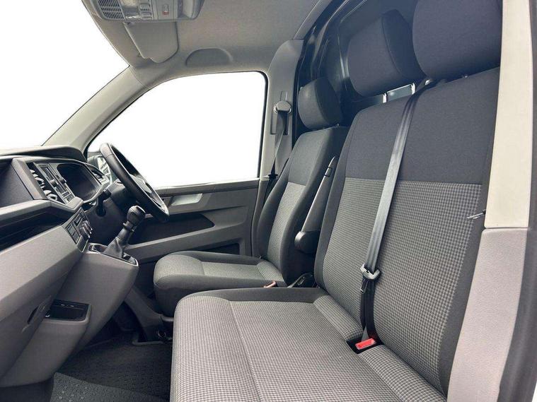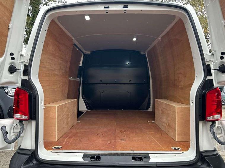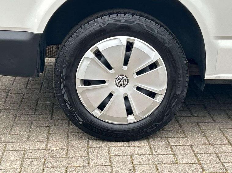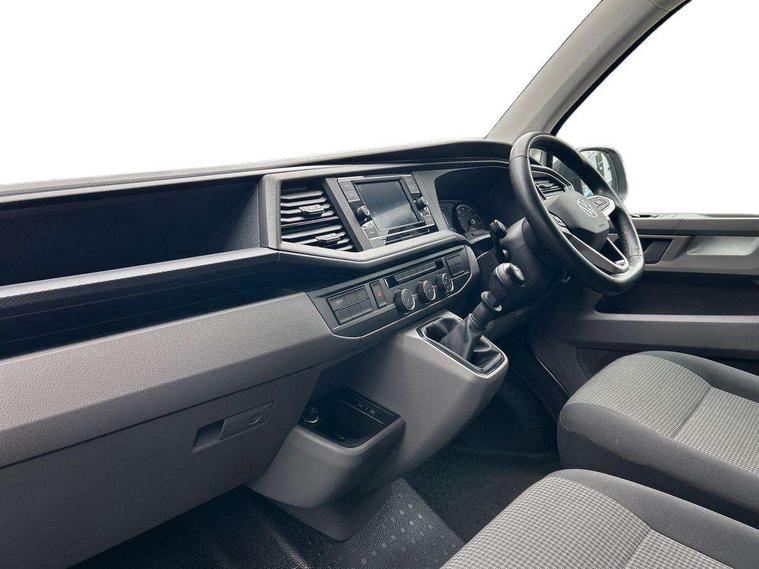 Cross wind assist, Dimmable illuminated instruments, Driver alert with Multi-function display plus, eCall emergency system, Forward collision warning front assist with autonomous emergency braking, Mobile phone interface, Multi function display plus with black and white display, 2 USB interfaces type C in dashboard, 4 speakers with 2 tweeters and 2 woofers, Composition colour radio with 6.5" touchscreen, Digital radio reception (DAB+), Volkswagen app connect, 4 stages windshield wiper intermittent control for windshield wipers, Closing rear wing door with unlatching from the inside, H7 twin halogen headlamps, Heat insulating glass (green) in cab and passenger/load compartment, Heat insulating windshield made of laminated glass, Left convex exterior mirror, Rear wing doors without window apertures, Right convex exterior mirror, Separate Daytime running lights, Transporter nameplate on the rear fender, Unpainted radiator grille with 2 chrome trims, 3 spoke leather wrapped multi function steering wheel, Comfort headliner in cab, hardboard roof trim in passenger and load compartment, Dust/pollen filter, Folding grab handles on roof frame, Front and rear left without window closed side panel in load compartment, Front seats on the right in 1st row of seat, Glove compartment without illumination, Heavy duty tool kit and jack, High partition, Interior plastic loading edge protection, LED Interior lighting in load and passenger compartment, Manual adjustable lumbar support for right single seat in 1st row seats, Standard lower part dashboard in palladium, Without breakaway interior rear view mirror, Without refrigerant, Without right side window apertures in passenger and load compartment, Non smoker pack - Transporter, 3 point height adjustable seat belts on outer seats cab with electric pretensioners, Driver and front passenger airbag with front passenger airbag deactivation, Warning buzzer and light for driver and front passenger seat belt not fastened, Without child safety lock in passenger compartment, Electronic immobiliser, Wheel bolts without wheel locks, 16" chassis with 16" brake system, Diesel particulate filter, Electronic stability control, ABS, ASR with deactivation button, hill start assist and brake assist system, Standard anti drum measures, Start/stop system with regenerative breaking,