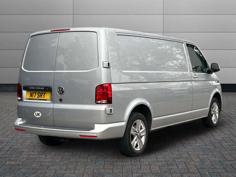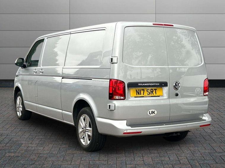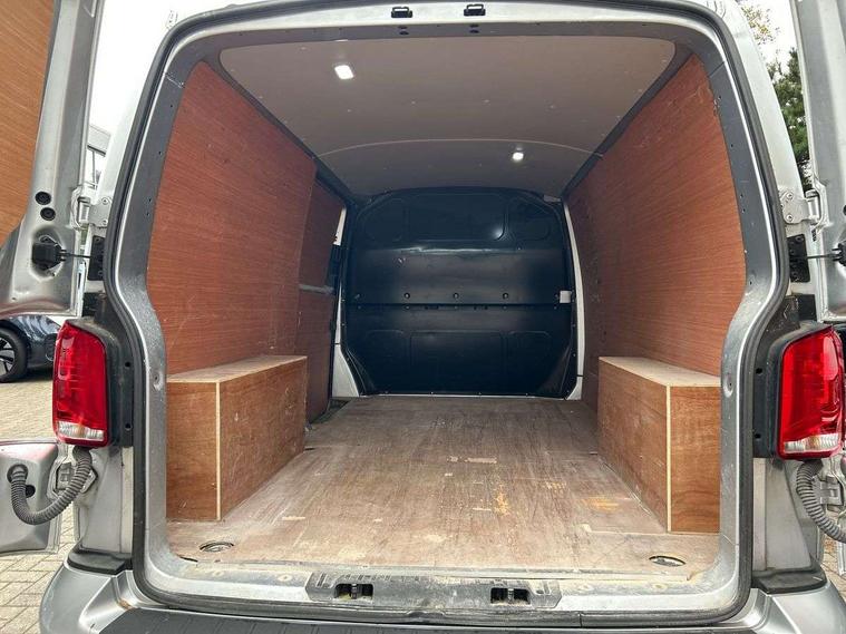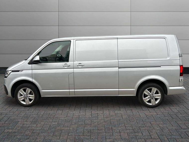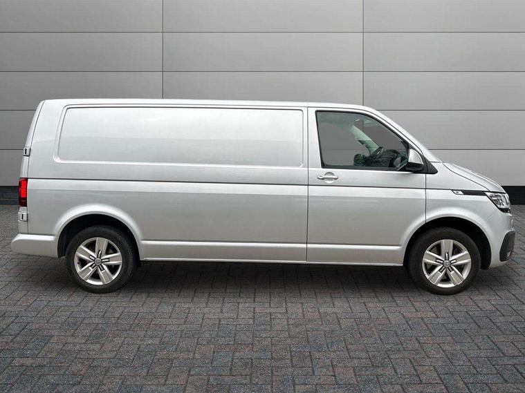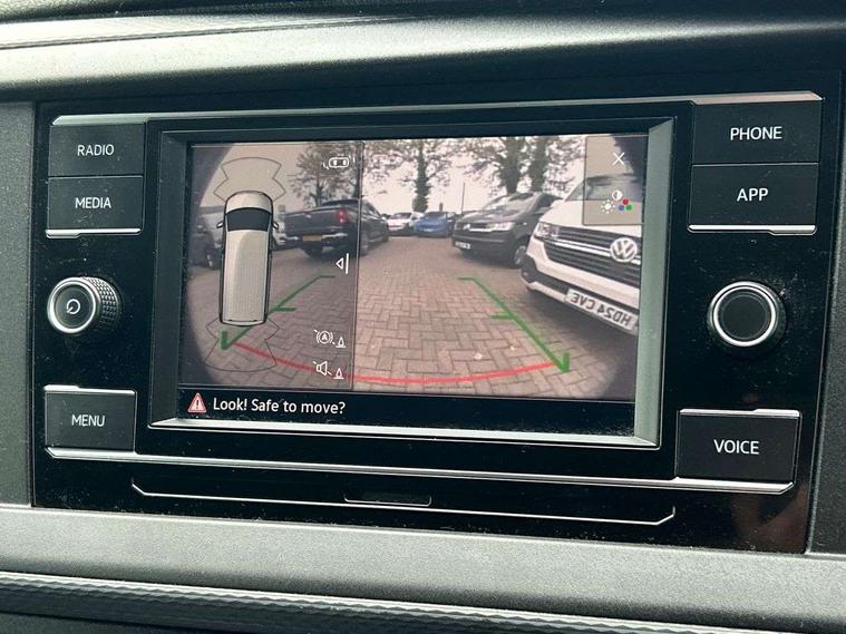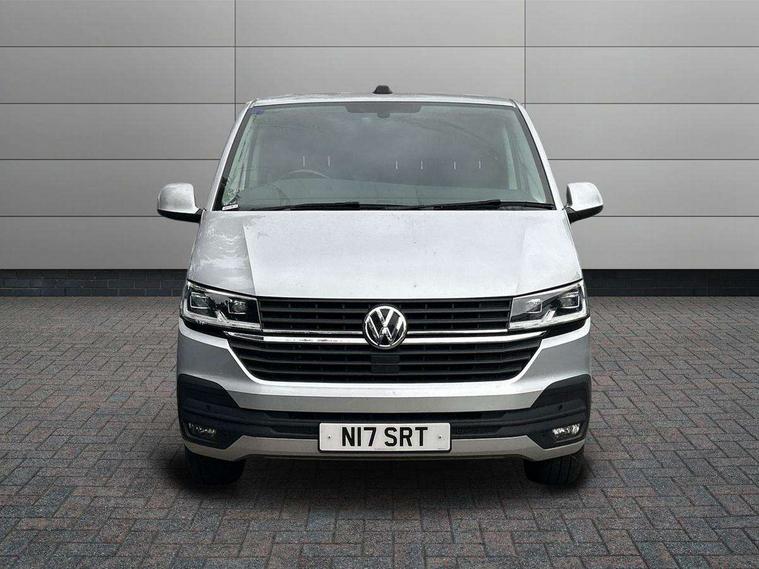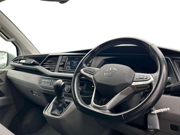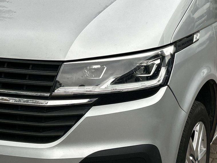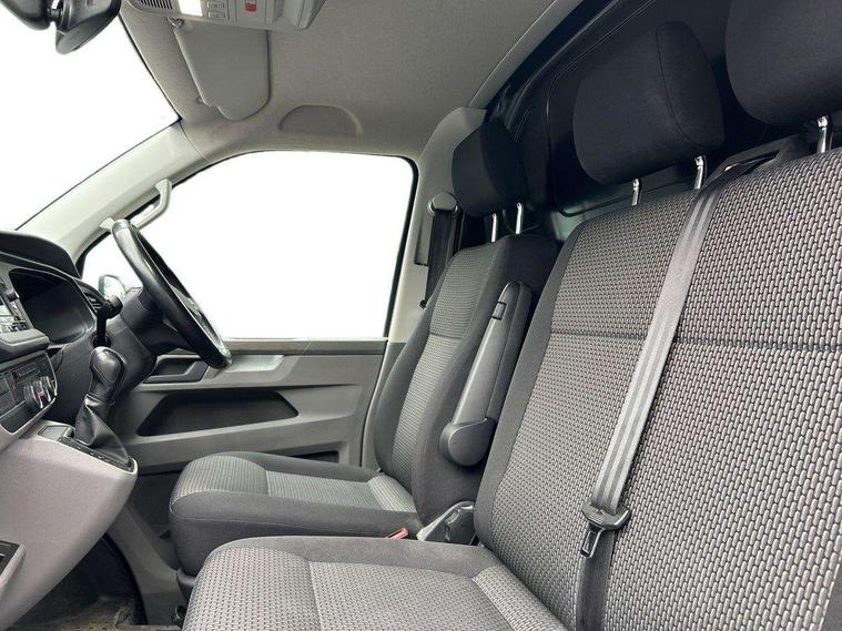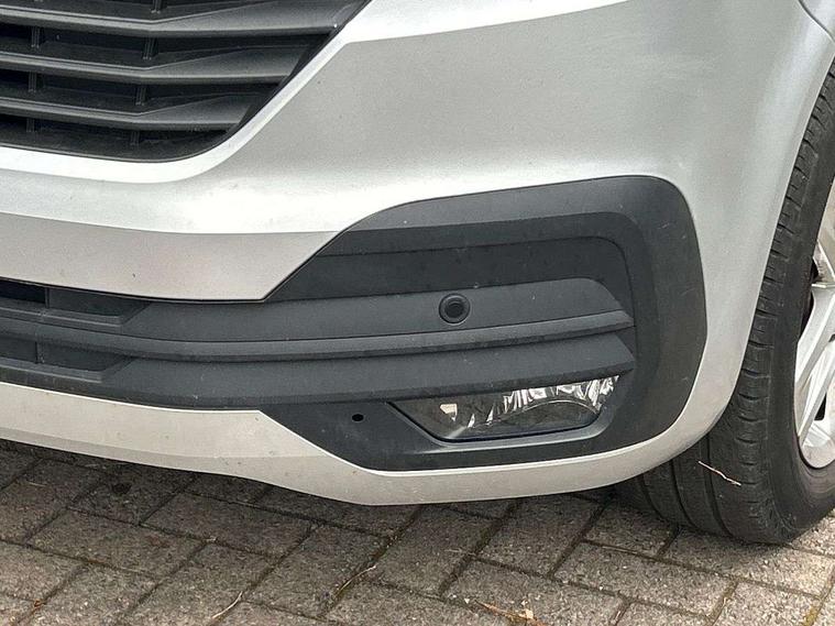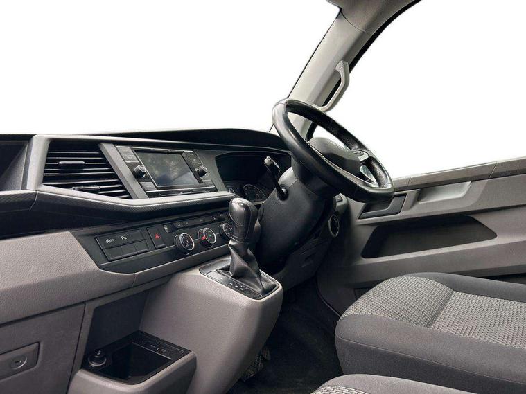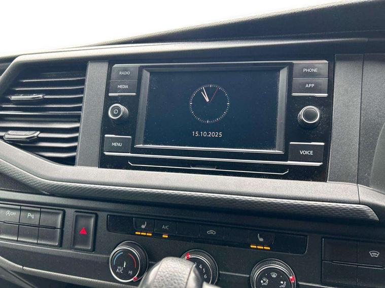 Adaptive cruise control, Cross wind assist, Dimmable illuminated instruments, Driver alert with Multi-function display plus, eCall emergency system, Forward collision warning front assist with autonomous emergency braking, Mobile phone interface, Multi function display plus with black and white display, 2 USB interfaces type C in dashboard, 4 speakers with 2 tweeters and 2 woofers, Composition colour radio with 6.5" touchscreen, Digital radio reception (DAB+), Volkswagen app connect, Automatic headlight control, leaving home and manual coming home feature, Closing rear wing door with unlatching from the inside, Front fog lamps with cornering light, Heat insulating glass (green) in cab and passenger/load compartment, Heated front windscreen, Left convex exterior mirror, Power folding adjustable door mirrors with separately heated, Radiator grille with 2 chrome trims, Rear wing doors without window apertures, Right convex exterior mirror, Transporter nameplate on the rear fender, Windshield wiper intermittent control with rain sensor for windshield wipers, 3 spoke leather wrapped multi function steering wheel, Auto dimming breakaway interior rear view mirror, Comfort headliner in cab, hardboard roof trim in passenger and load compartment, Dust/pollen filter, Front and rear left without window closed side panel in load compartment, Front seats on the right in 1st row of seat, Glove compartment with illumination, Heavy duty tool kit and jack, High partition, Interior plastic loading edge protection, LED Interior lighting in load and passenger compartment, Manual adjustable lumbar support for right single seat in 1st row seats, Refrigerant R134a, Standard lower part dashboard in palladium, Storage compartments on cab seats and reading light, Without right side window apertures in passenger and load compartment, Comfort pack - Transporter, Exterior pack without fog light- Transporter, Non smoker pack - Transporter, 3 point height adjustable seat belts on outer seats cab with electric pretensioners, Driver and front passenger airbag with front passenger airbag deactivation, Warning buzzer and light for driver and front passenger seat belt not fastened, Without child safety lock in passenger compartment, Anti theft alarm system with interior monitoring in cab, backup horn and towing protection, Lockable wheel bolts, 16" chassis with 16" brake system, Diesel particulate filter, Electronic stability control, ABS, ASR with deactivation button, hill start assist and brake assist system, Start/stop system with regenerative breaking, 17" Devonport alloy wheels,