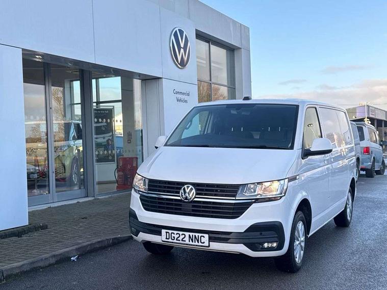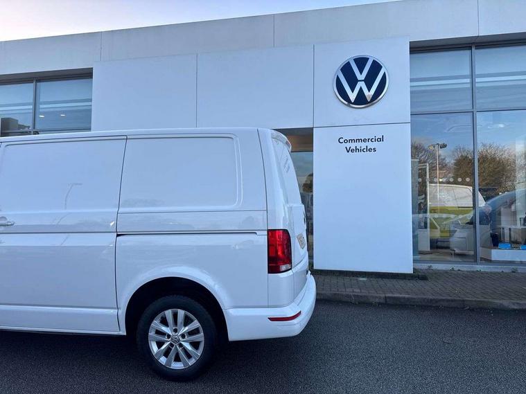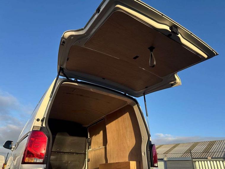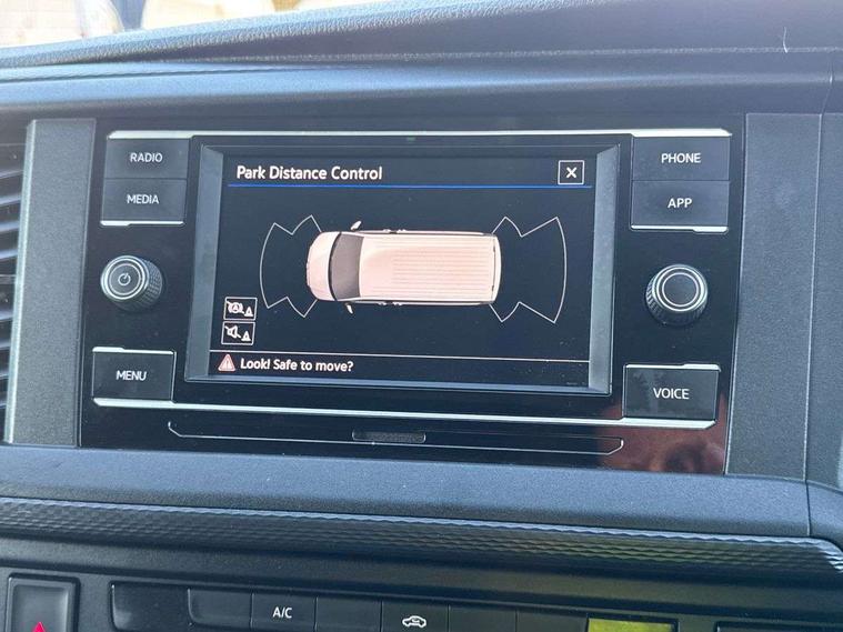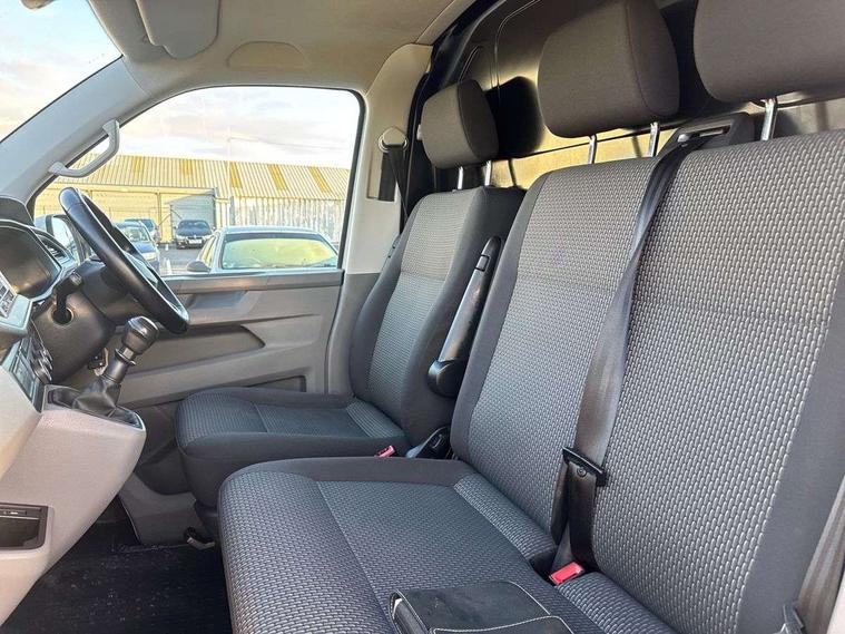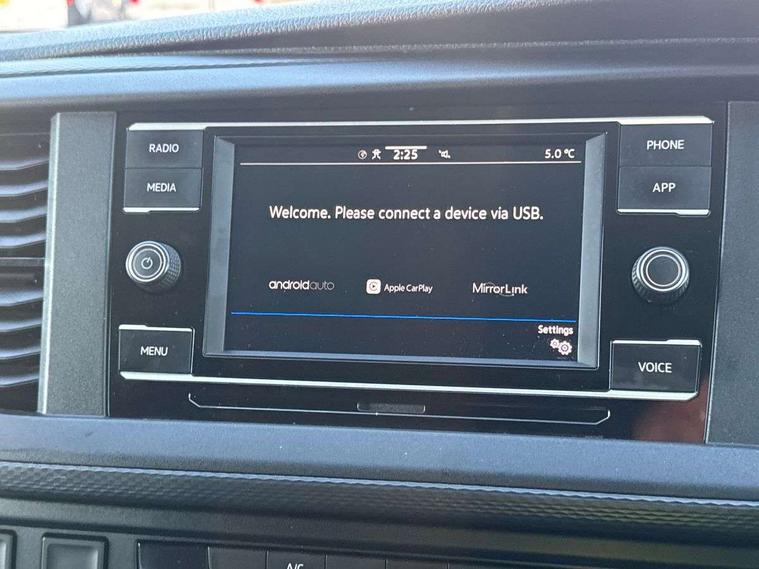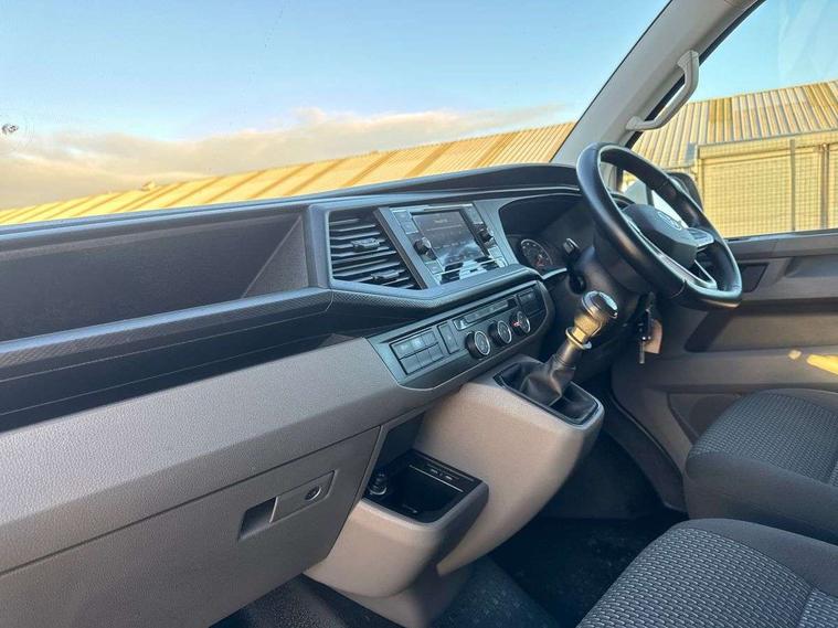 Adaptive cruise control, Cross wind assist, Dimmable illuminated instruments, Driver alert with Multi-function display plus, eCall emergency system, Electromechanical speed sensitive power steering, height and longitudinally adjustable steering column, Forward collision warning front assist with autonomous emergency braking, Mobile phone interface, Multi function display plus with black and white display, 2 USB interfaces type C in dashboard, 4 speakers with 2 tweeters and 2 woofers, Composition colour radio with 6.5" touchscreen, Digital radio reception (DAB+), Volkswagen app connect, Automatic headlight control, leaving home and manual coming home feature, Closing rear wing door with unlatching from the inside, Front fog lamps with cornering light, Heat insulating glass (green) in cab and passenger/load compartment, Heated front windscreen, Left convex exterior mirror, Power folding adjustable door mirrors with separately heated, Radiator grille with 2 chrome trims, Rear wing doors without window apertures, Right convex exterior mirror, Transporter nameplate on the rear fender, Windshield wiper intermittent control with rain sensor for windshield wipers, 3 spoke leather wrapped multi function steering wheel, Auto dimming breakaway interior rear view mirror, Comfort headliner in cab, hardboard roof trim in passenger and load compartment, Dust/pollen filter, Front and rear left without window closed side panel in load compartment, Front seats on the right in 1st row of seat, Glove compartment with illumination, Heavy duty tool kit and jack, High partition, Interior plastic loading edge protection, LED Interior lighting in load and passenger compartment, Manual adjustable lumbar support for right single seat in 1st row seats, Refrigerant R134a, Standard lower part dashboard in palladium, Storage compartments on cab seats and reading light, Without right side window apertures in passenger and load compartment, Comfort pack - Transporter, Exterior pack without fog light- Transporter, Non smoker pack - Transporter, 3 point height adjustable seat belts on outer seats cab with electric pretensioners, Driver and front passenger airbag with front passenger airbag deactivation, Warning buzzer and light for driver and front passenger seat belt not fastened, Without child safety lock in passenger compartment, Anti theft alarm system with interior monitoring in cab, backup horn and towing protection, Lockable wheel bolts, 16" chassis with 16" brake system, Additional 12V socket, Diesel particulate filter, Electronic stability control, ABS, ASR with deactivation button, hill start assist and brake assist system, Start/stop system with regenerative breaking, 16" Clayton alloy wheels,