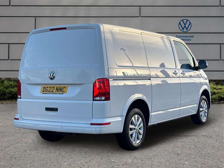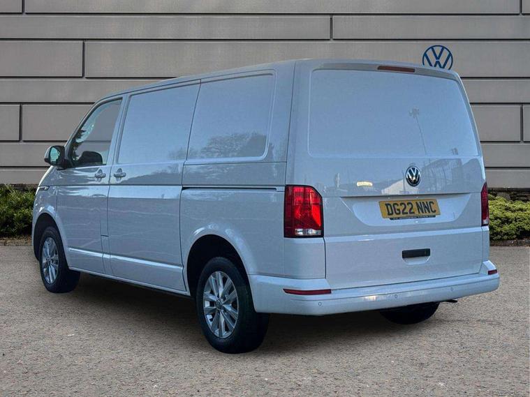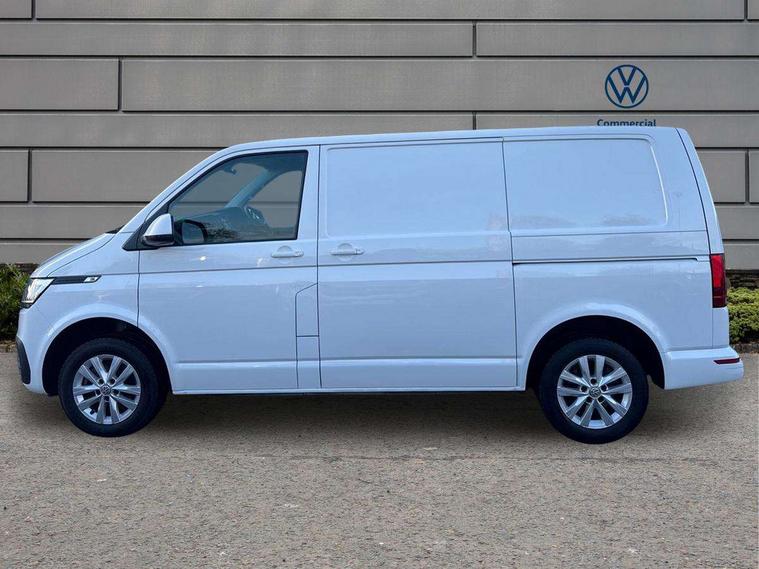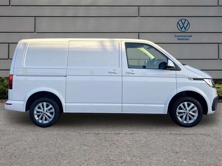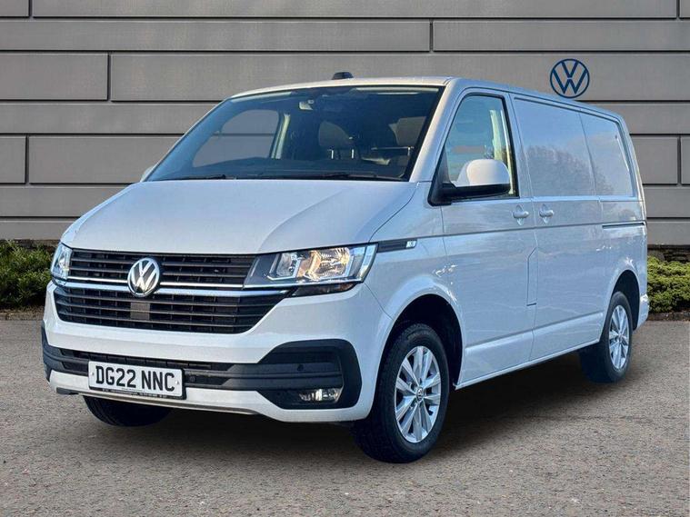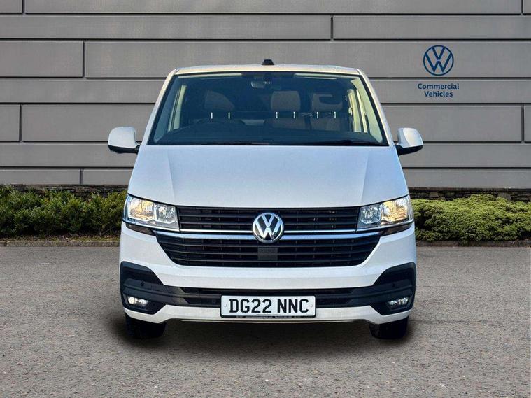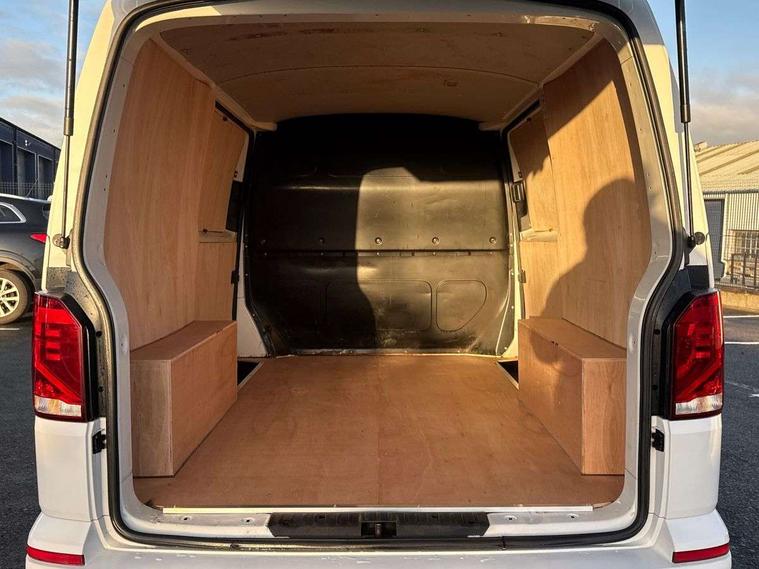 Adaptive cruise control, Cross wind assist, Dimmable illuminated instruments, Driver alert with Multi-function display plus, eCall emergency system, Electromechanical speed sensitive power steering, height and longitudinally adjustable steering column, Forward collision warning front assist with autonomous emergency braking, Mobile phone interface, Multi function display plus with black and white display, 2 USB interfaces type C in dashboard, 4 speakers with 2 tweeters and 2 woofers, Composition colour radio with 6.5" touchscreen, Digital radio reception (DAB+), Volkswagen app connect, Automatic headlight control, leaving home and manual coming home feature, Closing rear wing door with unlatching from the inside, Front fog lamps with cornering light, Heat insulating glass (green) in cab and passenger/load compartment, Heated front windscreen, Left convex exterior mirror, Power folding adjustable door mirrors with separately heated, Radiator grille with 2 chrome trims, Rear wing doors without window apertures, Right convex exterior mirror, Transporter nameplate on the rear fender, Windshield wiper intermittent control with rain sensor for windshield wipers, 3 spoke leather wrapped multi function steering wheel, Auto dimming breakaway interior rear view mirror, Comfort headliner in cab, hardboard roof trim in passenger and load compartment, Dust/pollen filter, Front and rear left without window closed side panel in load compartment, Front seats on the right in 1st row of seat, Glove compartment with illumination, Heavy duty tool kit and jack, High partition, Interior plastic loading edge protection, LED Interior lighting in load and passenger compartment, Manual adjustable lumbar support for right single seat in 1st row seats, Refrigerant R134a, Standard lower part dashboard in palladium, Storage compartments on cab seats and reading light, Without right side window apertures in passenger and load compartment, Comfort pack - Transporter, Exterior pack without fog light- Transporter, Non smoker pack - Transporter, 3 point height adjustable seat belts on outer seats cab with electric pretensioners, Driver and front passenger airbag with front passenger airbag deactivation, Warning buzzer and light for driver and front passenger seat belt not fastened, Without child safety lock in passenger compartment, Anti theft alarm system with interior monitoring in cab, backup horn and towing protection, Lockable wheel bolts, 16" chassis with 16" brake system, Additional 12V socket, Diesel particulate filter, Electronic stability control, ABS, ASR with deactivation button, hill start assist and brake assist system, Start/stop system with regenerative breaking, 16" Clayton alloy wheels,