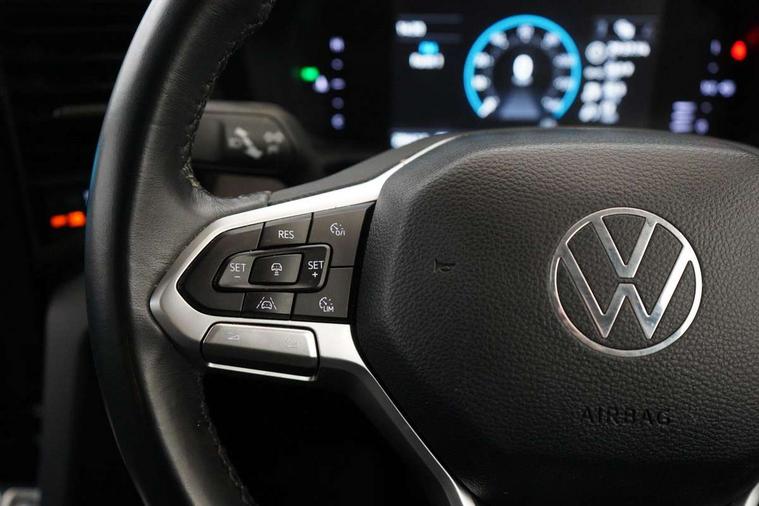 Adaptive cruise control ACC with predictive speed limiter, Autonomous emergency braking front assist with monitoring and braking for vehicles, pedestrians, cyclists, Digital Cockpit 8-inch, Dynamic road sign display, eCall emergency system, Gearshift lever, Infotainment system 10.1 inch, Lane keeping system Lane Assist, Park Distance Control in front and rear with maneuver braking, PAS, Rear view camera, Without manual activation of 360-degree surround and cargo area lighting, Without navigation system, Without tachograph, Without trailer maneuvering system Trailer Assist, 6 speakers, AM / FM antenna and digital radio reception DAB+, Preparation for VW Connect Basic, Without USB charging socket on the interior rearview mirror, Black bumper in rear, Black radiator grille, Body coloured exterior mirror housings and door handles, Body coloured front bumper, Body-colored rear gate handle, Dark-tinted privacy glass rear side windows and rear window, Diversity antenna, Exterior mirrors, power-adjustable, heated and power-folding, with surround lighting, Front and rear power windows, Fuel filler door with integrated misfueling prevention device, Headlights range control, Heated rear window, High beam control with light assist, LED front fog lamps, LED headlamps, Mud flaps front and rear, Rear combination lamps, Step with chrome insert, Trailer hitch preparation, Windshield, Windshield wiper intermittent control with rain sensor, Without advanced high-beam control Dynamic Light Assist, Without hardtop, Without roof rails/roof rack, Without sports styling bar, Without towing eyes in rear, Without trailer hitch, Without underride guard, 3 head restraints in 2nd row of seats, 3 point belts in addition height-adjustable in 1st row of seats, 3-point belts in 2nd row of seats, 3-seater bench in 2nd row of seats, Air conditioning system with manual control, Black air vents, Center armrest in rear, Child seat anchors ISOFIX on outer rear seats, i-Size compatible, Child seat recognition, Dashboard, Door handles in black, Driver and front passenger seats with 8-way madjustment, Driver seat with map pocket, Fabric upholstery, Gearshift/selector lever knob, leather, Glove compartment with illumination, Headliner stone gray, Heating and fresh air system, Leather-wrapped multi-function steering wheel, Overhead console 2 reading lights for driver and front passenger with glasses compartment in overhead console, Refrigerant, Roof grab handle on driver side, rigid grab handles, on A-pillar, Seat belt pretensioner, Seat occupied recognition with seat belt reminder for driver, front passenger and rear seat area, Sun visor on driver and front passenger side with illuminated vanity mirror, Tie-downs on the cargo area, Top tether child safety seat anchorage, Vinyl floor covering, Without ambient lighting, Without floor mats, Without hand brake lever, Without inductive charging feature, Without LED cargo area lighting, Without load compartment cover, Without load compartment loadliner, Without load support including protection frame on the rear cabin wall, Without seat heater, Rear seat package II, Curtain and side airbags with center airbag, Front passenger airbag deactivation, Knee airbags for driver and front passenger, Without fire extinguisher, Without first aid kit, Anti-theft alarm system with interior monitoring, backup horn and towing protection, Central locking system with SAFELOCK, with radio remote control and 2 remote control folding keys, Online anti-theft alarm system, Rear gate lockable via central locking system, Wheel lock for spare wheel, Wheel locks, With programmable key, Without tire pressure monitoring system, 4.55 gear ratio, Alternator - 250A, Automatic post collision braking system, Electronic parking brake, Electronic Stability Control (ESC), Emission standard, Four-wheel drive, Particle filter, Standard suspension, Stop/start function, Without 120-V/230-V outlet in rear center console, Without differential lock in rear, Without electrical interface for external use, 6 switches in overhead console, 17" Combra silver alloy wheels, Steel spare wheel,