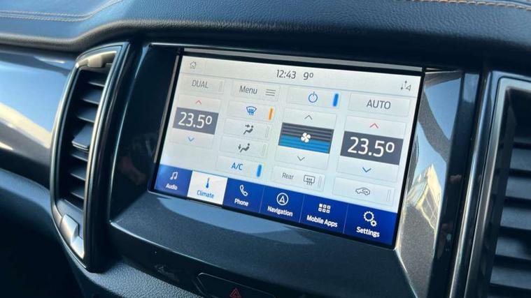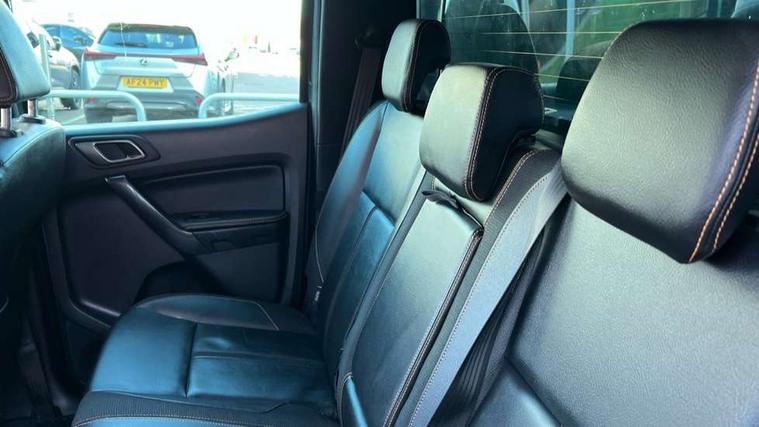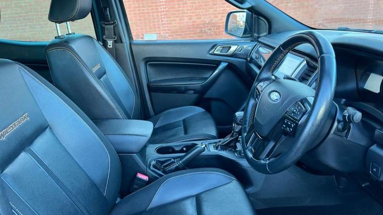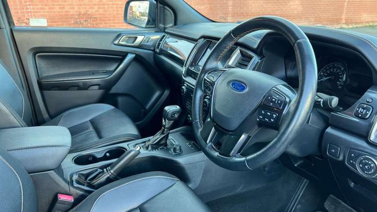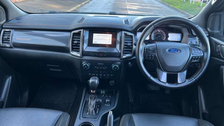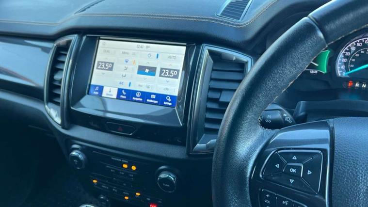 2 key fob, Collision mitigation braking system, Electric power assisted steering, Fixed rear view camera, Intelligent speed assistant, Lane keeping aid, Traffic sign recognition, Trip computer, Automatic headlights, Body coloured plastic front bumper, Boulder grey exterior door handle, Boulder grey exterior door mirror, Boulder grey radiator grille, Daytime running lights, Dual power heated fold back door mirror with puddle lamp and signal, Electrically operated windows with one shot driver's window, Electrochromic interior mirror, Front splash guard and mud flaps, Heated windshield and rear window, High mounted stop lamp with cargo area light, LED Front fog lamp, LED projector headlamps, Moulded in colour tailgate handle, Painted front fender grille, Privacy glass, Rain sensitive windshield wipers, Rear bumper chrome under-bar, Rear bumper step in boulder grey, Rear mudflaps, Roof rails, Side step with brushed inserts, Sports bar, Tailgate - Easy-lift/lower mechanism, Under hood engine cover, Underbody protection, Centre console coolbox, Chrome interior door handle, Driver seat back mounted map pocket, Dual control system - Electronic air temperature control (EATC), Ebony headliner, Heated front seat, Journey grain partial leather upholstery with Wildtrak logo, Leather gearknob, LED ambient interior lighting, Power adjustable 8 way driver seat, Premium front and rear floor mats with Wildtrak logo, Reach and rake adjustable steering column, Roof storage for driver sunglasses, Sport leather stitched steering wheel, Tie down rails and rope hooks, Wildtrak door trim panel insert, ICE feature pack 129 - Ranger, 3 point inertia rear seatbelts, Driver and front passenger airbag, side airbag, curtain airbag and driver knee airbag, ISOFIX child safety seat attachment, Seatbelt reminders for driver and front passenger, Tyre pressure sensors, Double locking power door lock with flip key, Immobiliser, Locking wheel nuts, Passive anti theft system, Passive keyless entry and start system, Power tailgate lock, Spare wheel lock, Thatcham category 1 alarm security system, ABS, ESP and roll over mitigation, Emergency brake assist, Engine start/stop system, Locking rear axle, Power converter,