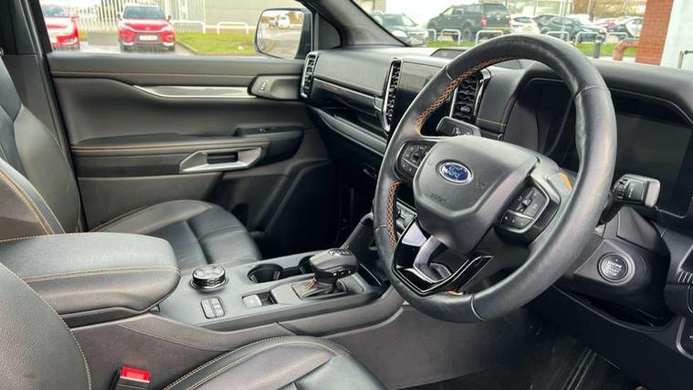 AEB and ISA, Conventional gearshift, Electric power assisted steering, Evasion steer assist, Ford pass connect embedded modem, Ice warning, Partial TFT/LCD instrument cluster, Passenger side roof mounted grab handle, Pre collision assist, Road departure warning, Traffic sign recognition, Trip computer, 360 lighting, Accent colour exterior mirrors, Accent colour front bumper, Accent colour grille, Accent colour rear bumper, Acoustic laminated windscreen, Assisted conventional tailgate, Auto high headlamp, Automatic headlights, Black rear underrun bar, Black wheelip molding, Body coloured door handles, Daytime running lights, Dual power heated fold back door mirror with puddle lamps, E-marked glass, Electric rear window defroster, Electric windshield defroster, Electrochromic interior mirror, Fog lamp bezel, Front fender painted grill, Front headlamp leveling, Front splash guard, Front towing hooks, High mounted stop lamp, Ladder rack, LED Front fog lamp, Level 2 halogen headlamps, Level 2 LED taillamps, Manual liftgate, Narrow bodyside moulding and insert, Non locking capless fuel fill, Outside thermometer, Plastic cab roll over bar, Power front windows with one touch up/down, Privacy glass, Quickclear heated windscreen, Rain sensitive windshield wipers, Rear bumper extension, Rear bumper step, Rear fog lamps, Rear mudflaps, Rear splash guard, Roof rails, Self coloured decklid handles, Side step - Bar only, Side step with bright finish inserts, Silver matte step bar, Standard green glass windscreen, Trailer tow class I, Trailer tow wiring, Under hood engine cover, Cargo light, Console with double lid, Door handles with inside MIC, Driver and passenger sunvisor with mirror, Ebony headliner, Electronic dual zone automatic air conditioning, Fold flat rear seat with durabale surface, Fresh air heater, Glove box lights, Heated steering wheel, LED ambient interior lighting, Less load rest, Less outside tie down hooks, Locking glove box lid, Micro rib embossed leather upholstery, Non woven carpet, Overhead console with dome lamps, Pollen filter, Premium air register, Premium front and rear floor mats, Pull out cup holder, Reach and rake adjustable steering column, Rear floor ducts, Roof storage for driver sunglasses, Steering wheel with multimedia controls, Tie down rails and rope hooks, Washer tank level warn lamp, Body protection pack 2 - Ranger, Front seat pack 7 - Ranger, Functional upgrade pack 3 - Ranger, Heavy duty terrain pack - Ranger, Interior trim pack 13 - Ranger, Rear seat pack 15 - Ranger, Tachograph prep pack - Ranger, Child proof rear door locks, Driver and passenger airbag, Driver knee airbag, Head and thorax airbag in 2nd row, ISOFIX child safety seat attachment, Passenger knee airbag, Tyre pressure sensors, 2 Remote control unit - key fob, Flip key, Immobiliser, Locking wheel lug nut, Passive anti theft system, Passive keyless entry, Power door dead locks, Power tailgate lock, Thatcham alarm system, Thatcham security system, 12V aux rear power point plug, ABS + ESP, Electric parking brake, Emergency brake assist, Engine start/stop system, Front and rear disc brakes, Loadbox power point plug, Open style rear axle, Soft ride suspension, 18" Aluminium spare wheel, Spare tire lock,