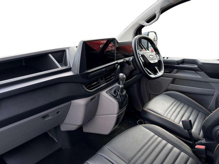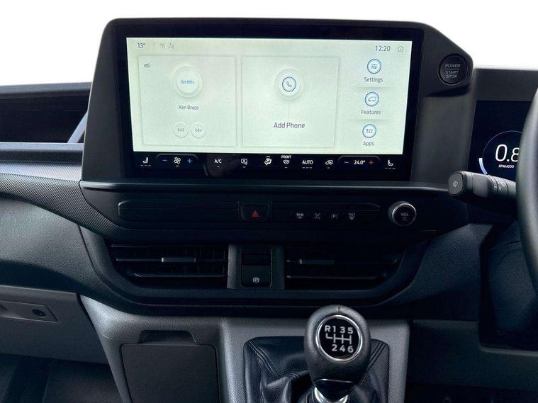 13" Touchscreen, 5G embedded modem, AECS NO SMS/Roll Detect 2G, PAS, Tyre pressure monitor, SYNC 4 - Android Auto/Apple Car Play, advance speech recognition, over the air update capability, Automatic headlights, Automatic windscreen wipers, Daytime running lights, Electric front windows with one touch facility for driver and front passenger, Front mud flaps, Front splash guards, Gloss black door mirrors, Low roof line, Part body colour front bumper, Quickclear front window defroster, Rear cargo hinged door, Rear splash guards, Trailer sway control, 8 Load compartment tie down loops, Courtesy light, Interior grab handle with driver's sunglasses holder, LED lights, Locking glove box lid, Sensico gearshift knob, Passenger airbag, 2 remote keys, Alcohol Interlock wiring preparation pack, Locking wheel lug nut, Thatcham category 1 alarm, 20L AdBlue tank, ABS, Diesel particulate filter, ESP, Hill launch assist, Limited Slip front axle - mLSD, Traction control, 16" Steel spare wheel, Full wheelcovers,