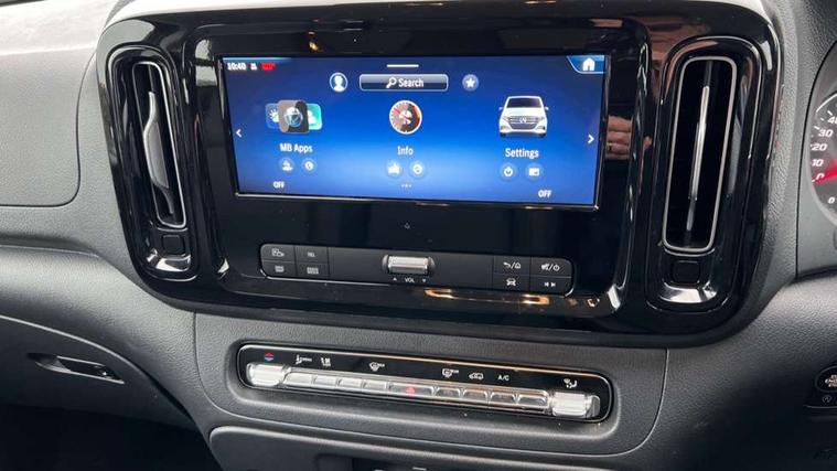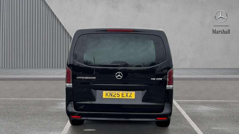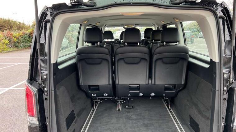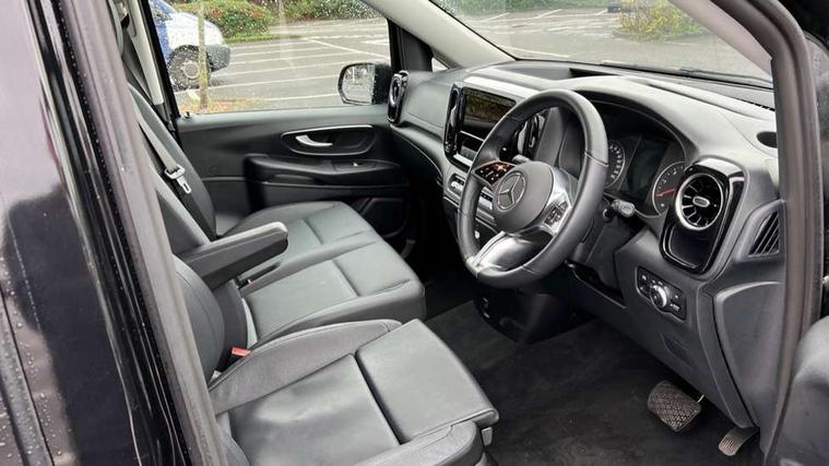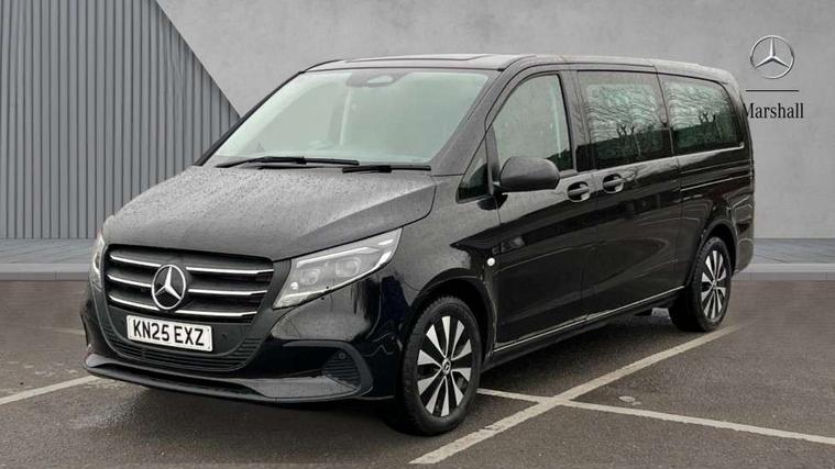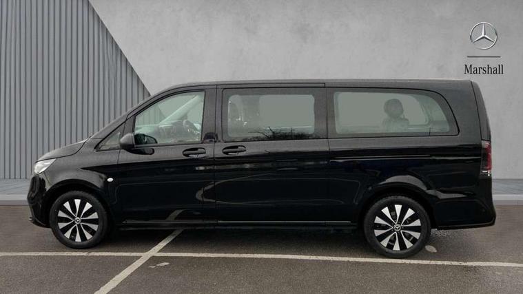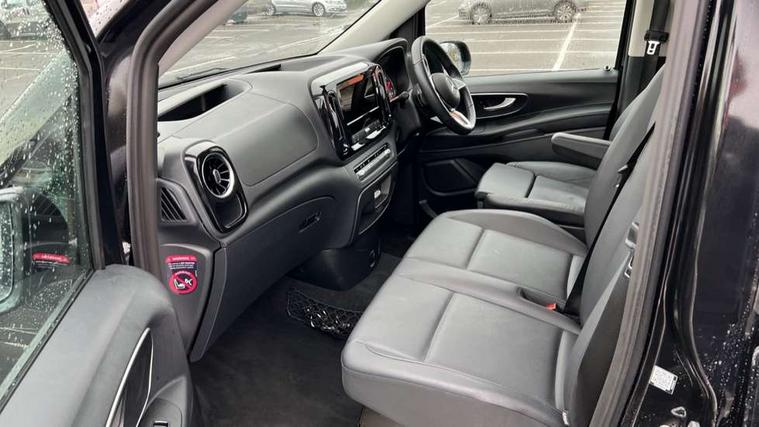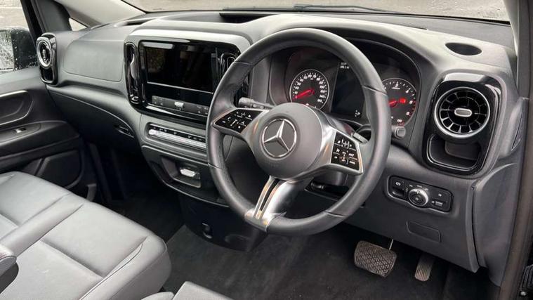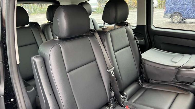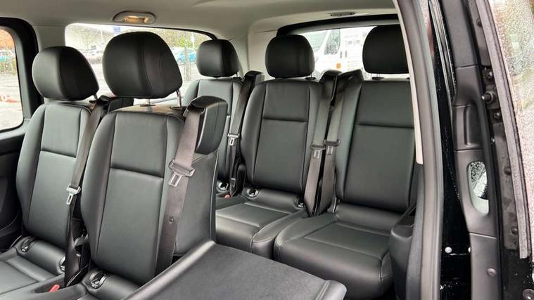 Active lane keeping assist, Blind spot assist, Comfort overhead control panel, Cruise control, Electric power steering, Modern instrument cluster with 5.5" TFT color display, Wireless tyre pressure monitoring, 2 way front and rear loudspeakers, Aux input socket, Digital radio (DAB), MBUX multimedia system with 10.25" touchscreen, Adaptive brake lights, Chrome radiator grille, Colour coded front and rear bumpers, Daytime running lights, Electric front windows, Electrically heated and adjustable door mirrors, Exit lamps, Headlight assistant, Heat insulating glass, LED tail lamps, brake lamps and indicators, Multibeam LED with highbeam assist plus, Side sliding door - left, Side sliding door - right, Tailgate, Third rear brake light, 12V outlets right and left for rear seat row, 3 seater comfort bench in 2nd row with folding outer seat, Armrests for crew/passenger compartment, Comfort driver's seat, Driver's seat lumbar support, Electrical component for trailer socket, Front carpets, Front door storage pockets, Front footwell lights, Grab handles for drivers and co-driver doors, Grab handles in rear, Height adjustable head restraints, Height and rake adjustable steering wheel, Illuminated vanity mirrors with sunvisors, Interior ambient lighting, Interior panelling higher execution, Leather steering wheel, Locking glove compartment, Multifunctional steering wheel, Panelling under roof, Rear carpets, TPO Plastic flooring in passenger compartment, Anti theft protection pack - Vito Tourer, Chrome interior appointments pack - Vito Tourer, Mirror pack - Vito Tourer, Parking pack - Vito Tourer, Smartphone integration package - Vito/Vito Tourer, 3 point seatbelts for all seats, Accident recovery and breakdown management, Attention assist, Co-driver airbag, Co-driver thorax, pelvis and side airbag, Crosswind assist, Driver thorax, pelvis and side airbag, Driver's airbag, Mercedes-Benz emergency call system, Windowbags for driver and co-driver, 12V outlets sockets, 24 litre larger AdBlue tanks, 70 litre fuel tank, 9G tronic automatic gearbox, ABS/ESP/ASR, Active brake assist, Diesel particulate filter, EBV and BAS, Hill start assist, Mechanical parking brake, Speed limiter 210 km/h, Traction control, Uprated heavy duty battery - 95Ah,