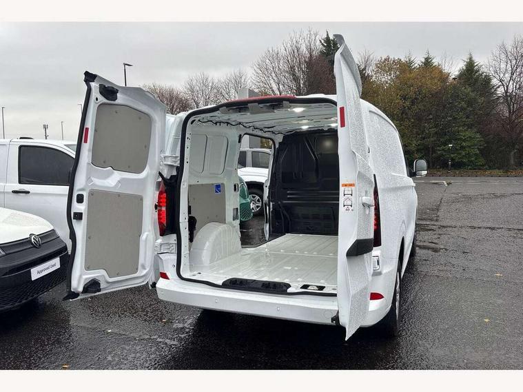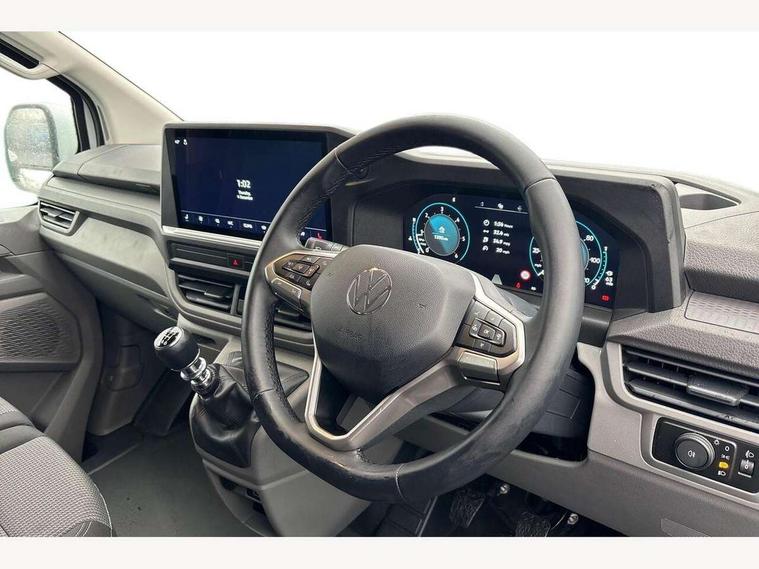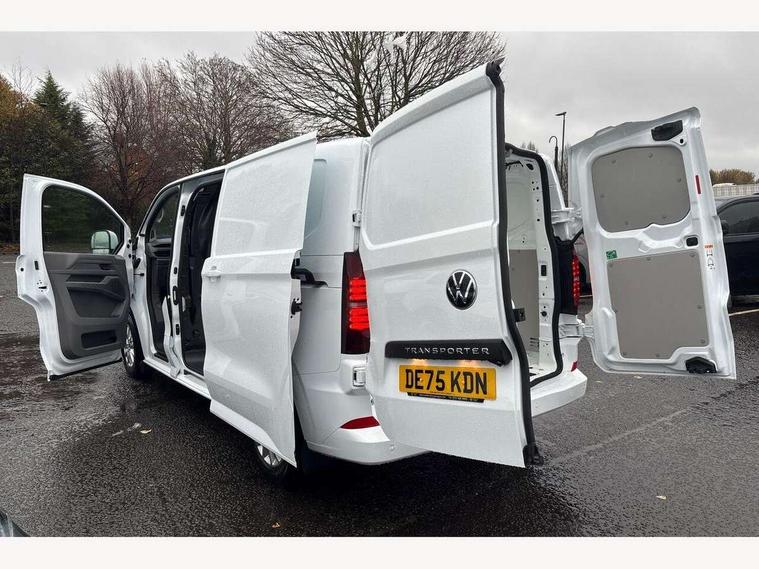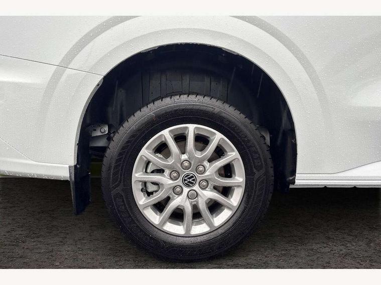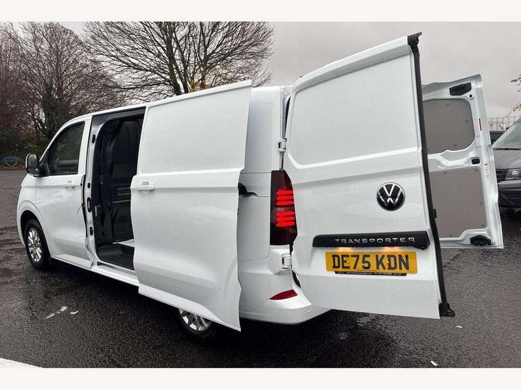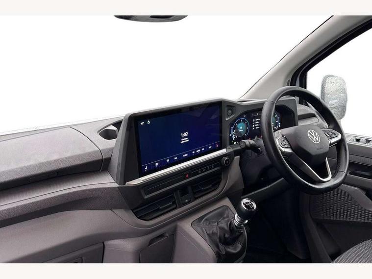 12" digital drivers display, 13" touchscreen infotainment display with wireless app connect and DAB radio, 5G Modem, Adaptive cruise control, Apple CarPlay and Android Auto, Dynamic road sign display, eCall emergency system, Electromechanical speed sensitive power steering, height and longitudinally adjustable steering column, Lane and blind spot assist with exit warning system, Preparation of VW connect and connect plus, Wireless mobile phone charging, Wrong way driver warning, Body colour bumpers, Body coloured door handles, Body coloured door mirrors, Body coloured radiator grille, Electrically heated, adjustable and folding door mirrors, Heat reflecting side window glass, Mud flaps front and rear, Rear Transporter nameplate in black grained decorative trim, Vehicle opening configuration 1x 1st row of seats, 2x all doors, 12V outlet in centre console and 12V outlet on rear right D-pillar, 2x 15-W USB data/charging ports in dashboard and 1x USB-C, 1x USB-A center bottom, 2x LED lights in load compartment, 3x additional super bright LED lights in load compartment, 4 way height and tilt adjustable head restraints, 5 additional USB-C charging ports, Black plastic scuff plate for sliding door in cargo without illumination, Cabin interior lighting, Glasses compartment in driver side roof, Grab handle on A-pillar passenger side, Illuminated lockable glovebox, Lashing rings for reinforced floor covering, Leatherette gear lever, Narrow centre console with cup holder and compartment for mobile phone, Overhead storage compartment, Rubber floor covering in cab, Striped fabric upholstery, Without passenger seats in load compartment, Driver and front passenger airbag with front passenger airbag deactivation, Dual tone horn, Front and curtain airbags for driver and front passenger, Seat belt pretensioner for driver seat, Anti theft alarm system with interior monitoring in cab, backup horn and towing protection, Electronic immobiliser, Lockable wheel bolts, Preparation for alcohol ignition interlock, 5+ Promise, Alternator - 230A, Electromechanical brake booster, Electronic stability control, ABS, ASR with deactivation button, hill start assist and brake assist system,