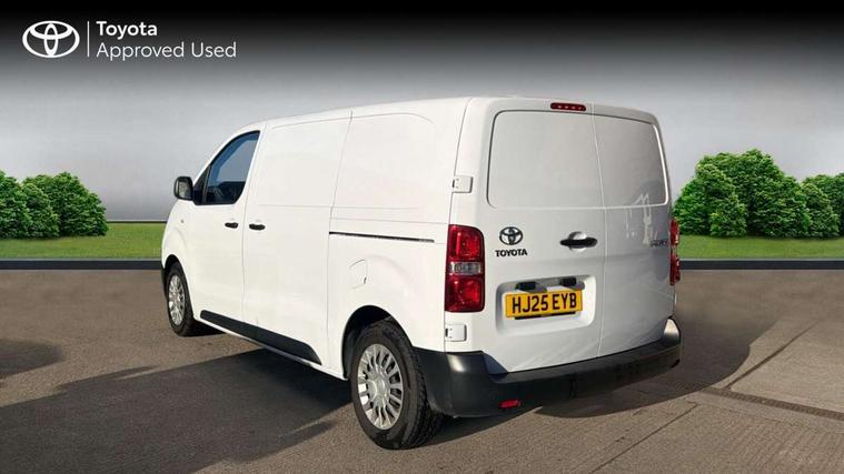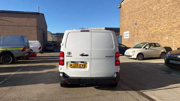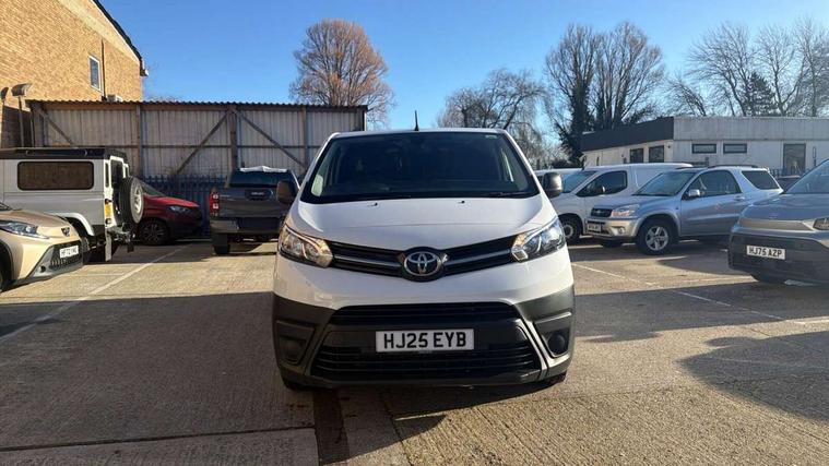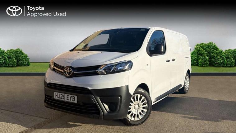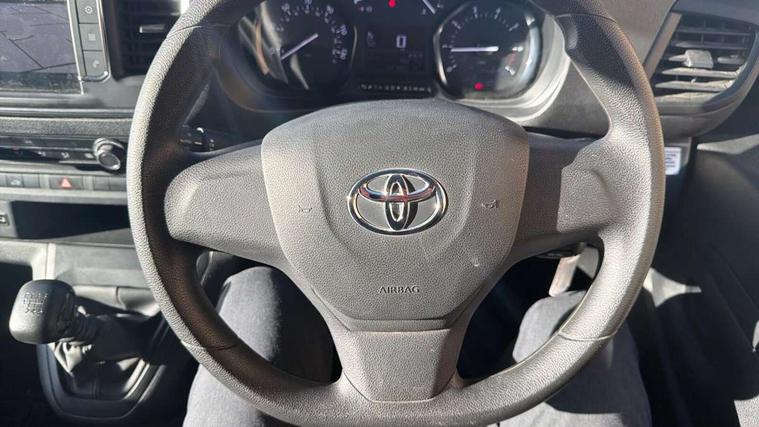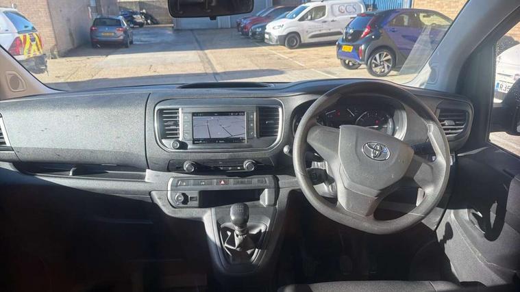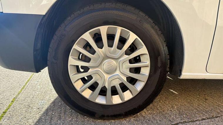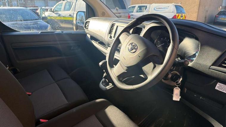 Bluetooth handsfree connectivity, Cruise control, PAS, Tyre pressure warning system (TPWS), 4 speakers, Digital radio (DAB), Radio/CD player, USB connector, 180 degree opening rear doors, Acoustic windscreen, Auto Headlights, Auto wipers, Black bumpers, Black door handles, Black protection moulding on side door, Body Coloured roof, Daytime running lights, Front power windows, Headlight cut-off reminder, Heated door mirrors, LED High mounted stop light, Manually adjustable day/night rear view mirror, Multi reflector halogen headlights, Panel rear wing doors, Power adjustable door mirrors, Rear combination lights, Short Antenna, Smoke tinted (30%) privacy glass on rear passenger window, Two manual sliding side doors, 2 seat front passenger bench, Driver seat armrest, Fabric seats, Front cup holders, Front room lights, Glovebox light, LED Driver and front passenger personal lights, Lighted and chilled upper glove box, Manually reclining and sliding driver and front passenger seats, Open upper dashboard storage compartment, Panel bulkhead with window and protective grille, Storage under passenger bench, Air conditioning and Smart cargo pack - Proace, Parking pack - Proace, Double front passenger airbag, Front passenger airbag on/off switch, Supplement restraint system (SRS) 2 airbags, Alarm, Deadlocks + 2 remote keys, Power door locks, 12V power front outlet, 12v socket in dashboard and rear, Adjustable speed limiter (ASL), Anti lock braking system (ABS), Brake Assist (BA), Stop/start function, Toyota traction select, Vehicle stability control (VSC) and hill start assist control (HAC), Full size spare wheel, Full wheel covers,