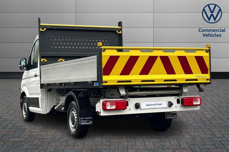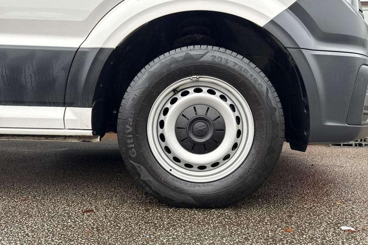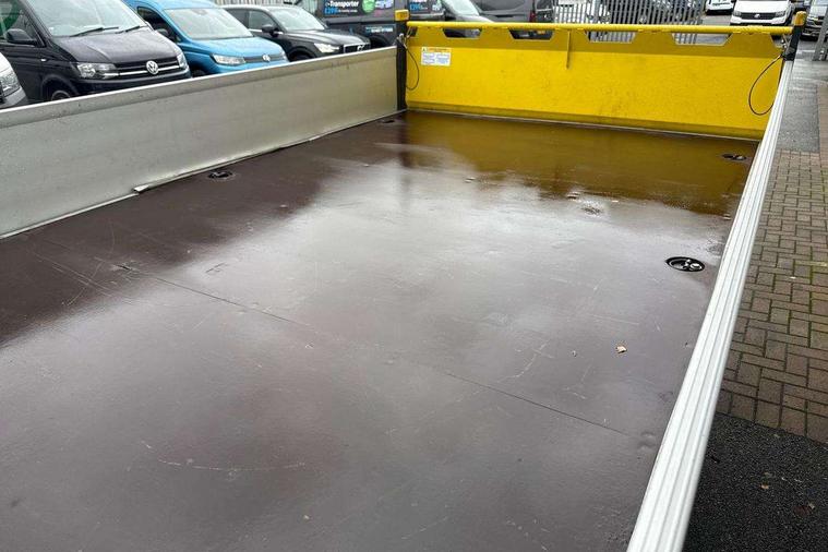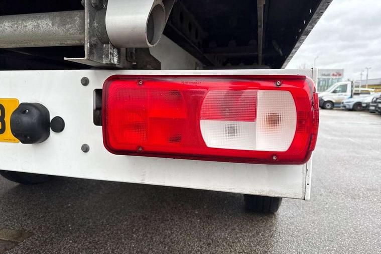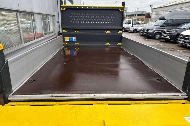 Bluetooth connectivity, Digital clock, Dimmable instrument illumination, Driver alert system, Front assist including city emergency braking, Headlight range control, Instrument cluster, Lights on warning buzzer, Lockable fuel cap, Multi function display/onboard computer medium, Rev counter, Service indicator, Start-stop system with regenerative braking, 2 cab doors, Cab rear panel without lining, Electric windows, Halogen twin headlights, Heat insulating windscreen, High visibility manual tail board, Integral step in front bumper, Low roof, Radiator grille, Retractable high strength steel platform, Right and left convex and wide angle exterior mirror, Roof lights on cab, Tinted laminated windscreen with top shade band, 2 sun visors folding and pivoted, 6 internal load lashing points on deck, Air recirculation system, Centre console storage tray, Dashboard, Document holder on centre console, Drinks holders, Electromechanical Servotronic steering, Electronically controlled heating system, Front bulkhead ladder rack, Full steel bulkhead without window, Fully adjustable suspension type driver seat, Grab handle on B pillar, Grab handles on roof frame, Height adjustable head restraints, Height and reach adjustable steering wheel, Illuminated glove compartment with lockable lid, Interior roof trim, Preparation for interface for external use with terminal block, Rubber floor covering, Storage compartments in doors and in step, right, Storage tray on dashboard, Non smoker pack, 3 point seat belts in front, Automatic hazard light with emergency braking, Central locking with radio remote control, interior controls without SAFELOCK, Height adjustable seatbelts for outer cab seats, Jack, Seat belt reminder with electric contact in buckle, Engine immobiliser, ABS, Automatic post collision braking system, EBA, EBD, EDL, ESP, Front disc brakes, HBA, Heavy duty front axle, Hill start assist, Parking brake - hill hold control, TCS, Hub cap, Low rolling resistance tyres,