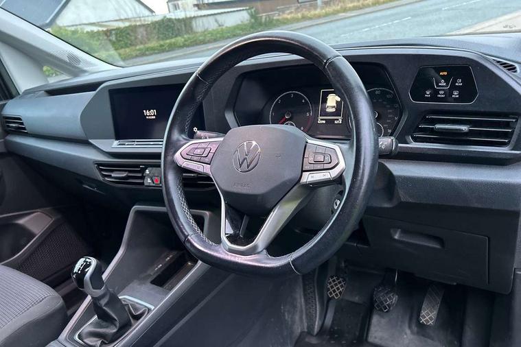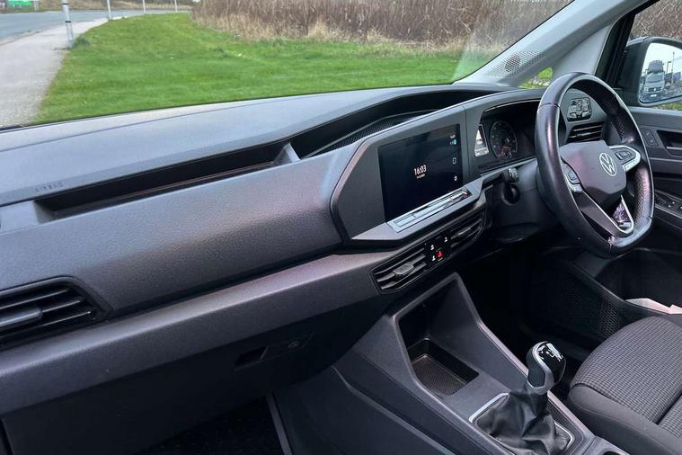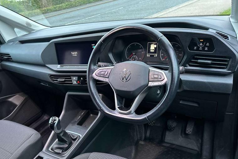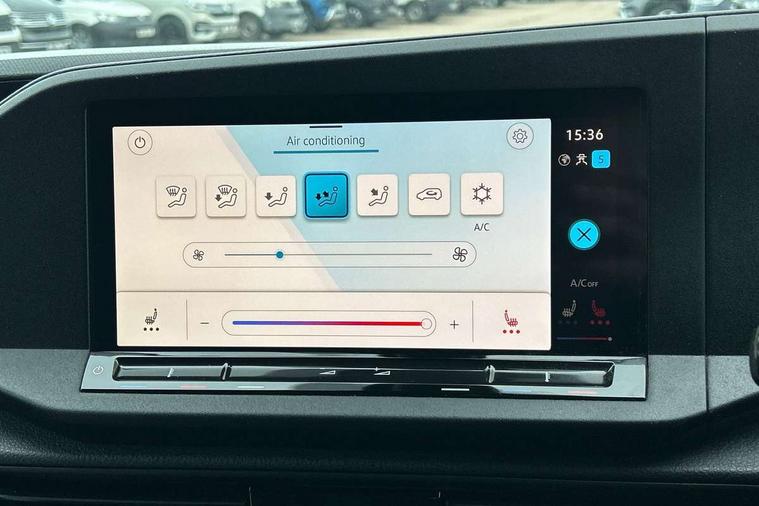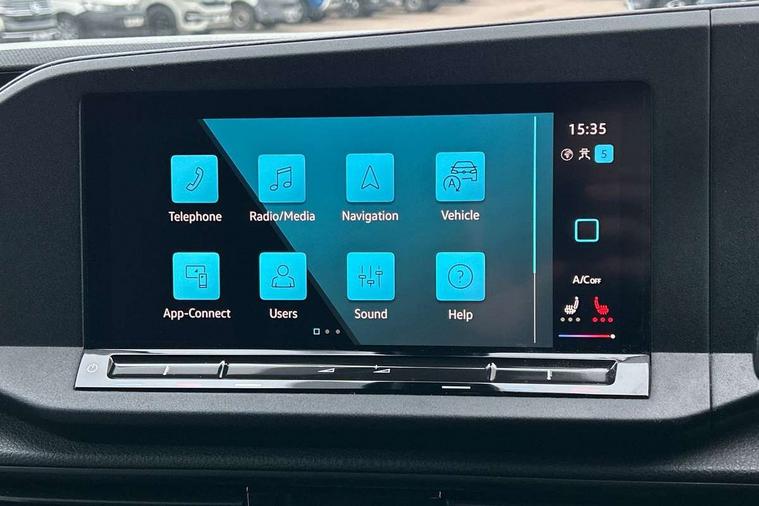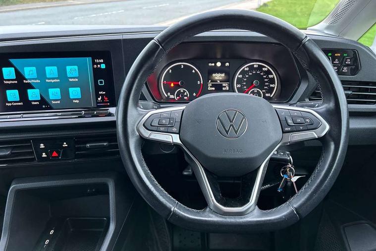 Driver alert system includes drowsiness detection, Emergency call control unit with eCall, Multi-function Display, Seatbelt warning indicator, Service indicator, Start-stop system with regenerative braking, DAB Radio, Navigation system "Discover Media" with 25.4-cm (10-inch) colour touch screen incl. Streaming & Internet, 4 speakers, We Connect Plus Preparation, Automatic hazard light activation under emergency braking, Black painted exterior mirror housings, body-colored door handles and Silver sliding door rail, Body coloured bumpers, Electric front windows, Exterior mirrors, power-folding, power-adjustable, separately heated, Heated windscreen, LED rear combination lights, LED rear tail lights, Roof rail preparation, Windscreen wiper with variable intermittent delay and wash-wipe system, Armrests for both front seats, Dimming breakaway interior rear-view mirror, Electronically controlled heating system, ergoComfort seats for driver, Interior light in headlining, Lockable glove compartment door with light, Manual height adjustment for front seats and seat cushion inclination and depth adjustment on drivers seat, Multi function leather steering wheel, Power-adjustable lumbar support for drivers seat, Reach and rake adjustable steering column, Six lashing points for securing loads, Storage compartments under driver and front passenger seats, Sun visors with mirror, airbag label on front passenger sun visor, 3-point seat belts in front, with pretensioner and height adjustment, Driver and front passenger airbag with front passenger airbag deactivation, Anti-theft alarm system, interior monitoring, backup horn, and towing protection, Electronic engine immobiliser, Remote central locking with deadlocks, interior locking, Anti locking braking system (ABS), Automatic post collision braking system, Autonomous Emergency Braking Front Assist with Pedestrian Monitoring, Electric parking brake with auto hold function, Electronic brake force distribution (EBD), Electronic differential lock (EDL), Electronic stabilisation programme (ESP), Emergency brake assist, Engine drag torque control (MSR), Hill hold assist, Traction control system (TCS), Decorative beige birch vein inserts, Wheel bolts with anti-theft protection (unlockable),