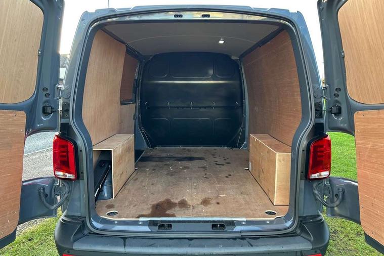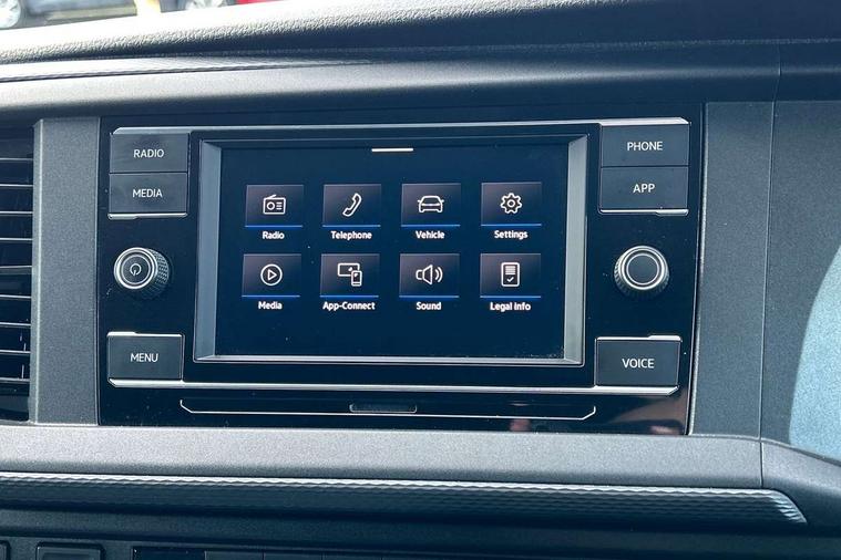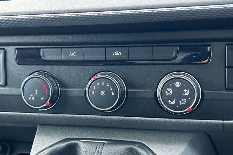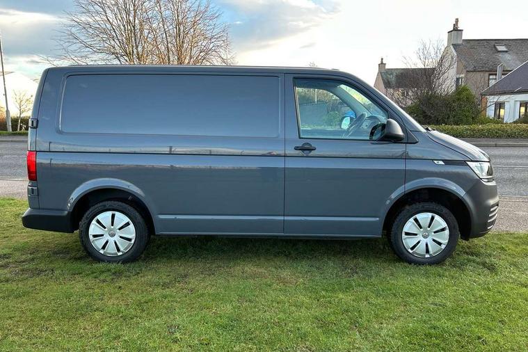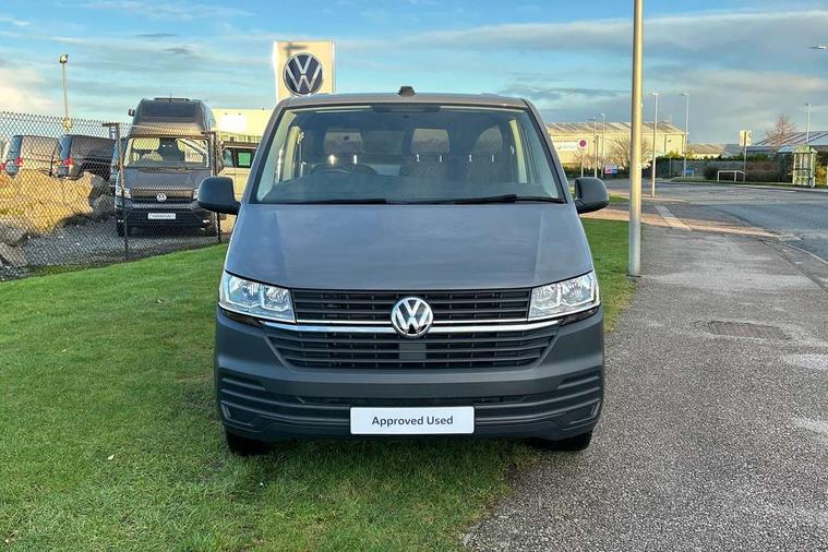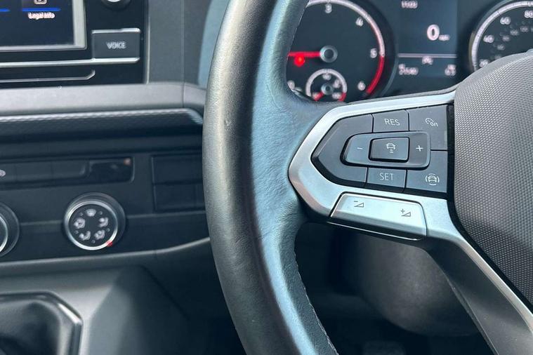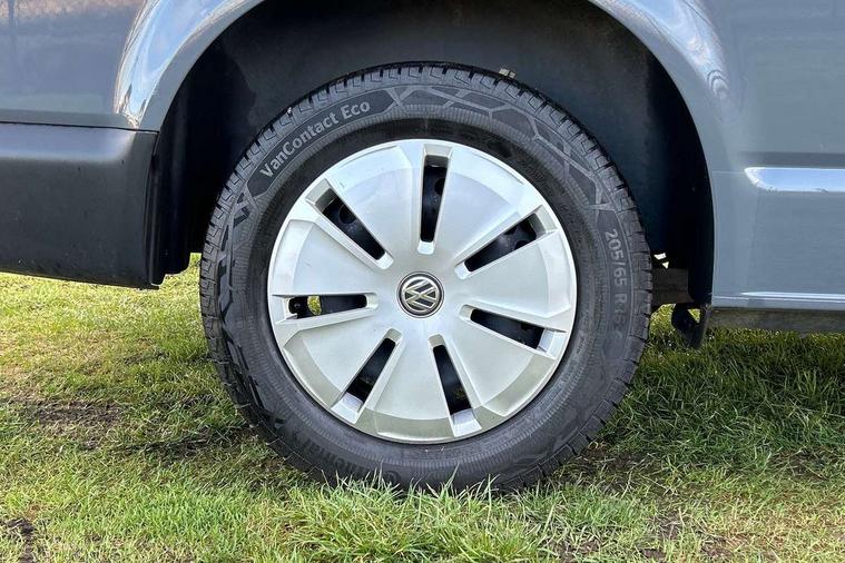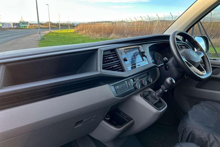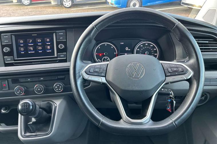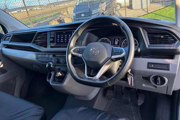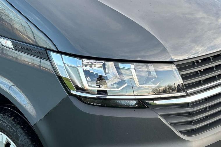 Cross wind assist, Dimmable illuminated instruments, Driver alert with Multi-function display plus, eCall emergency system, Forward collision warning front assist with autonomous emergency braking, Mobile phone interface, Multi function display plus with black and white display, 2 USB interfaces type C in dashboard, 4 speakers with 2 tweeters and 2 woofers, Composition colour radio with 6.5" touchscreen, Digital radio reception (DAB+), Volkswagen app connect, Closing rear wing door with unlatching from the inside, H7 twin halogen headlamps, Heat insulating glass (green) in cab and passenger/load compartment, Heat insulating windshield made of laminated glass, Left convex exterior mirror, Rear wing doors without window apertures, Right convex exterior mirror, Separate Daytime running lights, Transporter nameplate on the rear fender, Unpainted radiator grille with 2 chrome trims, 3 spoke leather wrapped multi function steering wheel, Comfort headliner in cab, hardboard roof trim in passenger and load compartment, Dust/pollen filter, Folding grab handles on roof frame, Front and rear left without window closed side panel in load compartment, Front seats on the right in 1st row of seat, Heavy duty tool kit and jack, High partition, Interior plastic loading edge protection, LED Interior lighting in load and passenger compartment, Standard lower part dashboard in palladium, Without refrigerant, Without right side window apertures in passenger and load compartment, Non smoker pack - Transporter, 3 point height adjustable seat belts on outer seats cab with electric pretensioners, Driver and front passenger airbag with front passenger airbag deactivation, Warning buzzer and light for driver and front passenger seat belt not fastened, Without child safety lock in passenger compartment, Electronic immobiliser, Wheel bolts without wheel locks, 16" chassis with 16" brake system, Diesel particulate filter, Electronic stability control, ABS, ASR with deactivation button, hill start assist and brake assist system, Standard anti drum measures, Start/stop system with regenerative breaking,