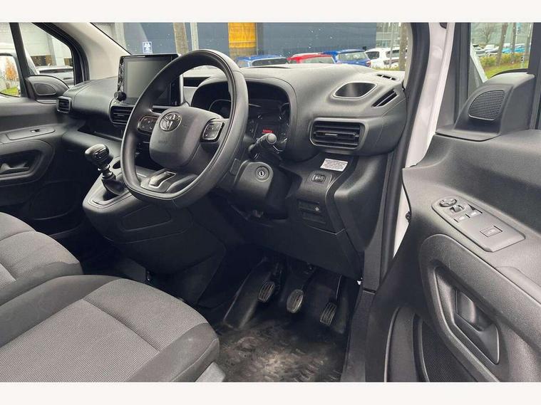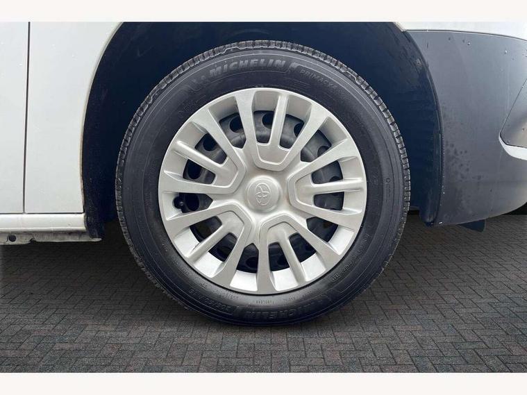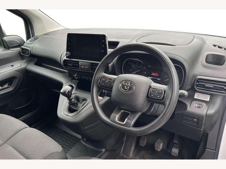 8" touchscreen multimedia display, Analogue speedometer, Analogue tachometer, Audio switch on steering and and steering wheel mounted controls, Bluetooth handsfree connectivity, Cruise control, Cruise control switch behind steering wheel, Display audio with apple carplay/android auto, Dynamic guide lines on reversing camera, eCall emergency system, LCD screen and pictogram, Monochrome multi information display, MyT connected services, PAS, Reversing camera with front and rear parking sensor, Satin chrome surround on multimedia display, Smart phone integration with Android auto & Apple CarPlay, Tyre pressure warning system (TPWS), USB connector X 2, 2 speakers, Aux-in connector, Digital radio (DAB), 180 degree opening rear doors, Anti jam protection on windows, Auto Headlights, Auto wipers, Black door handles, Black front and rear bumpers, Black protection moulding on side door, Black upper front grille, Day-and-night rear view mirror, Daytime running lights, Electric front windows with one touch up/down facility, Electronically foldable wing mirrors, Front fog lights, Gloss black door mirrors, Headlights with cornering function, Heated and power adjustable door mirrors, Panel rear wing doors, Power retractable door mirrors, Privacy glass 30% smoke tint, Roof antenna, Roof rails, Roof rails predisposition, Tinted windows, Two manual sliding side doors, 2 seat front passenger bench, 3 spoke urethane steering wheel, Additional tray on passenger dashboard, Black interior door handles, Bottle holders (0.5L), Cargo area lighting and 3 bulbs, Cargo deck load hook x6, Chrome insert on gear shift, Closed upper driver dashboard storage compartment, Closed upper passenger dashboard storage compartment, Cooler in glovebox, Driver seat armrest, Fabric seats, Foldable backrest for passenger seats, Front bottle holders, Front room lights, Full metal bulkhead, Gear shift indicator, Glovebox with lid driver side, Height adjustable front headrests, In-floor storage box, LED Driver and front passenger personal lights, Manual air conditioning, Manual height adjustable drivers seat with lumbar support, Manually reclining and sliding front passenger seats, Mirror on driver sun visor, Open glovebox passenger side, Open tray on passenger dashboard, Overhead driver and front passenger storage, Panel bulkhead, Plastic floor trim in cargo area, Plastic load floor protection, Pollen filters, Row 1 carpet floor, Row 3 panel on both sides (in place of window), Rubber cargo liner, Rubber floor mats in load area, Satin chrome insert on steering wheel, Smart cargo, Urethane gear shift, Passenger airbag, Supplement restraint system (SRS) 2 airbags, 2 remote keys, Central locking, Key starting system, Adjustable speed limiter (ASL), Anti lock braking system (ABS), Brake assist, Downhill Assist Control (DAC), Electronic brake force distribution (EBD), Electronic parking brake, Electronic Stability Control (ESC), Hill start assist, Stop/start function, Vehicle stability control, 16" 5 triple spoke steel wheels with wheel caps, Full size spare wheel,