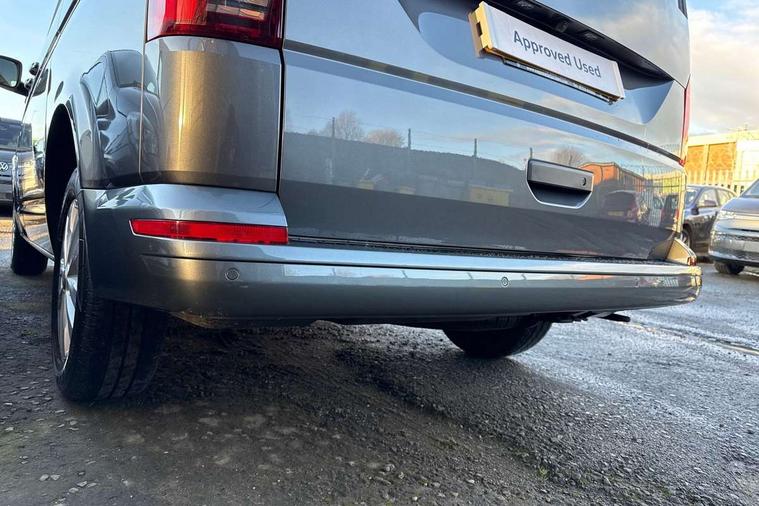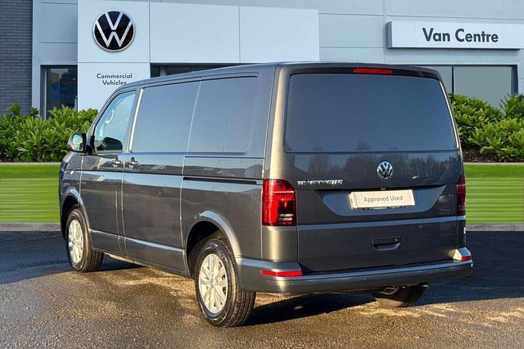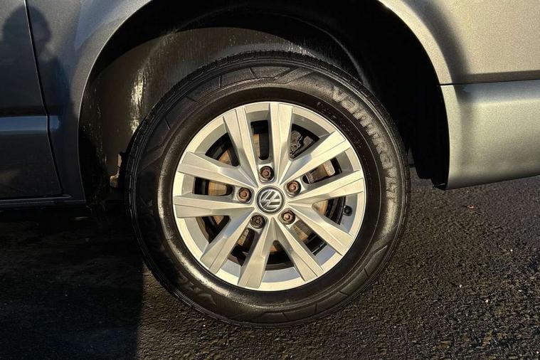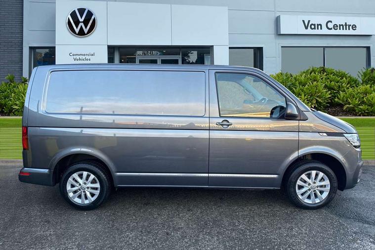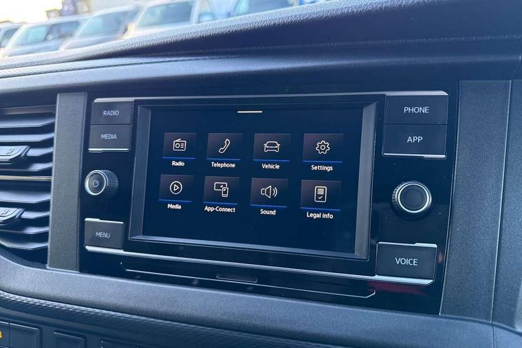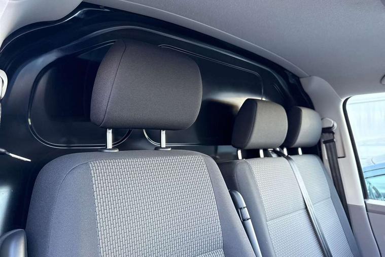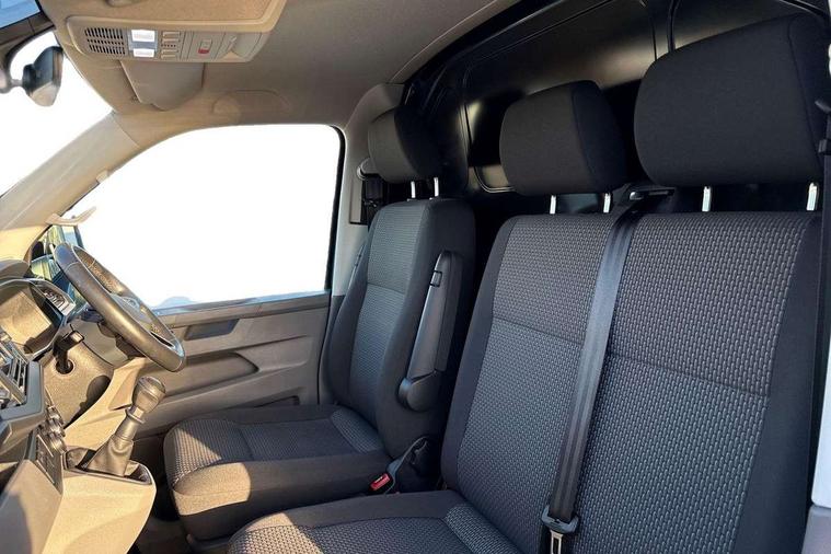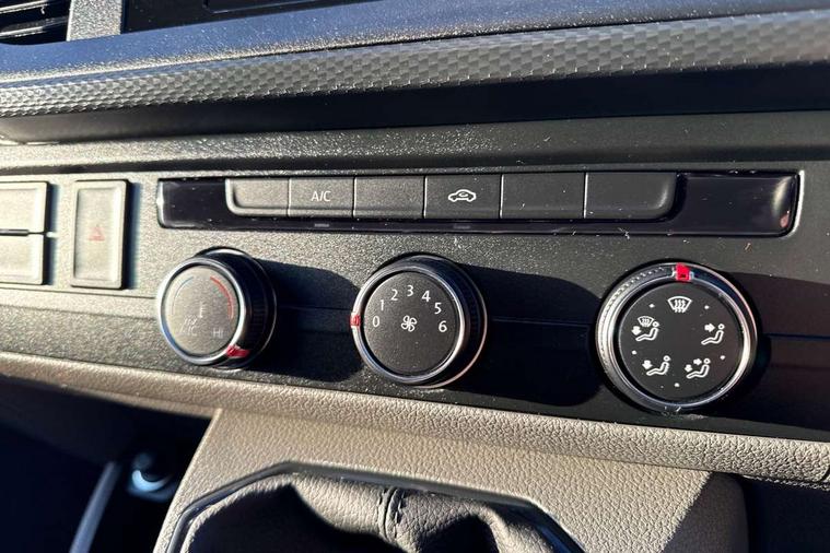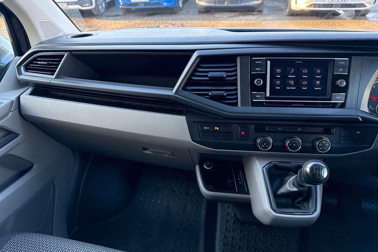 Adaptive cruise control, Cross wind assist, Dimmable illuminated instruments, Driver alert with Multi-function display plus, eCall emergency system, Forward collision warning front assist with autonomous emergency braking, Mobile phone interface, Multi function display plus with black and white display, 2 USB interfaces type C in dashboard, 4 speakers with 2 tweeters and 2 woofers, Composition colour radio with 6.5" touchscreen, Digital radio reception (DAB+), Volkswagen app connect, Automatic headlight control, leaving home and manual coming home feature, Closing rear wing door with unlatching from the inside, Front fog lamps with cornering light, Heat insulating glass (green) in cab and passenger/load compartment, Heated front windscreen, Left convex exterior mirror, Power folding adjustable door mirrors with separately heated, Radiator grille with 2 chrome trims, Rear wing doors without window apertures, Right convex exterior mirror, Transporter nameplate on the rear fender, Windshield wiper intermittent control with rain sensor for windshield wipers, 3 spoke leather wrapped multi function steering wheel, Auto dimming breakaway interior rear view mirror, Comfort headliner in cab, hardboard roof trim in passenger and load compartment, Dust/pollen filter, Front and rear left without window closed side panel in load compartment, Front seats on the right in 1st row of seat, Glove compartment with illumination, Heavy duty tool kit and jack, High partition, Interior plastic loading edge protection, LED Interior lighting in load and passenger compartment, Manual adjustable lumbar support for right single seat in 1st row seats, Refrigerant R134a, Standard lower part dashboard in palladium, Storage compartments on cab seats and reading light, Without right side window apertures in passenger and load compartment, Comfort pack - Transporter, Exterior pack without fog light- Transporter, Non smoker pack - Transporter, 3 point height adjustable seat belts on outer seats cab with electric pretensioners, Driver and front passenger airbag with front passenger airbag deactivation, Warning buzzer and light for driver and front passenger seat belt not fastened, Without child safety lock in passenger compartment, Anti theft alarm system with interior monitoring in cab, backup horn and towing protection, Lockable wheel bolts, 16" chassis with 16" brake system, Diesel particulate filter, Electronic stability control, ABS, ASR with deactivation button, hill start assist and brake assist system, Start/stop system with regenerative breaking, 16" Clayton alloy wheels,