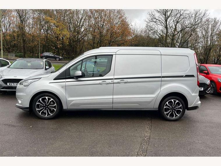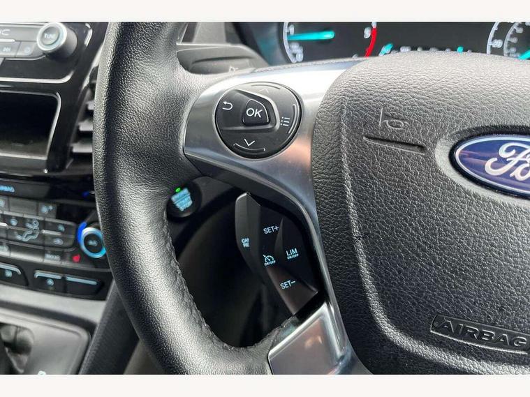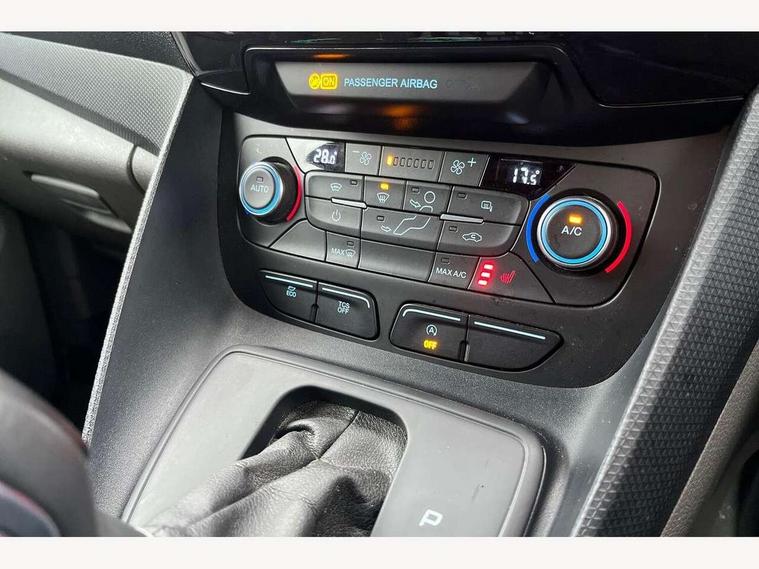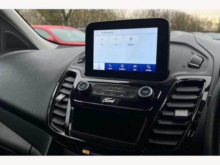 Easy fuel capless refuelling system, Eco coach, Embedded modem, Mid series analog cluster, PAS, Trip computer, Steering wheel mounted audio controls, 180 degree rear cargo doors, Active grille shutter, Automatic headlamps with follow me home with automatic windshield wiper, Body colour side protection mouldings, Body coloured door handles, Body coloured door mirrors, Body coloured lift/decklid exterior handles, Body coloured plastic front bumper, Body coloured rear bumper end caps, Daytime running lights, Driver one touch up/down power windows, Dual power heated fold back mirrors, Electric windshield defroster, Emergency brake light flashing, Front fog lights with adaptive cornering, Front lip spoiler, High mounted stop lamp, Hinged rear cargo door, Instrument panel stowage box, Moulded colour 3 bar radiator grille, Non infra red reflection windscreen, Rear fog lights, Rear tinted glass, Self coloured rear bumper, 12V socket, 2 front cupholders, 2 way front headrestraints, 4 way manually adjustable driver seat with lumbar support, Bright interior door handles, Centre console, Complete rear trim board, Configurable interior light, Door trim panel level 2, Driver seat rotary recliner, Driver sunvisor with mirror and ticket pocket, Dual zone electronic automatic temperature control, Dynamo partial leather upholstry, Front grab handles, Glove box lights, Glovebox with lid, Header courtesy lights with 2 map lights, High series fabric soft door armrest, Leather steering wheel, LED load compartment light, Overhead storage compartment, Passenger seat rotary recliner, Passenger sunvisor, Pollen filter without carbon filter, Reach and rake adjustable steering column, Refrigerant R134a, Rubber partial floor covering, Sensico gear shift knob, Key combination pack 2 - Transit Connect, Black seat belt, Child proof rear door locks, Driver airbag restraint, Enabled door auto relocking, Front active seat belts, Front seat belt adjuster, Configurable Unlocking, Immobiliser, Keyless start, Locking wheel nuts, Power door dead locks, Remote central double locking, Thatcham category 1 alarm with 2nd remote key, ABS, Auto start/stop system, Emergency brake assist, Heavy duty battery, Hill start assist, Non limited slip differential front axle, Power 4-wheel disc, Standard duty alternator, Traction control, 17" 6.5 alloy wheels, Less wheel cover, Standard tire tread,