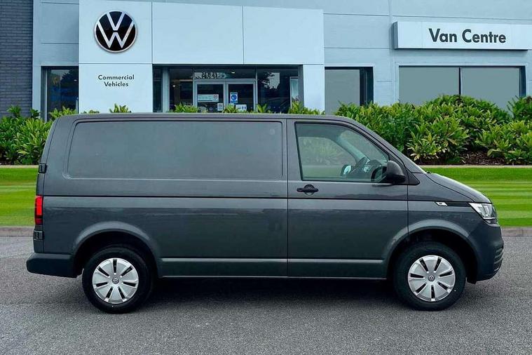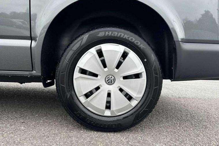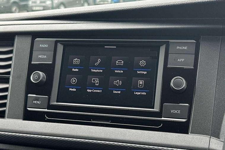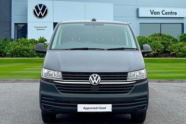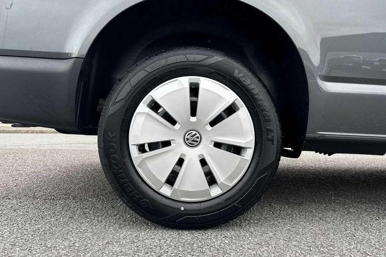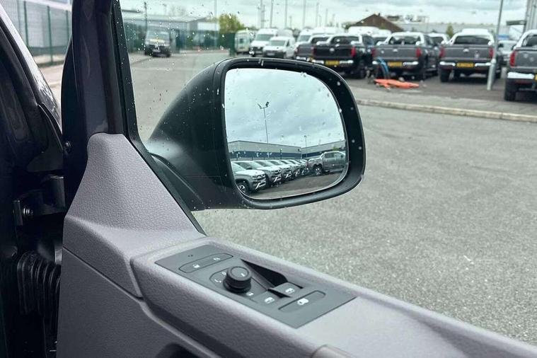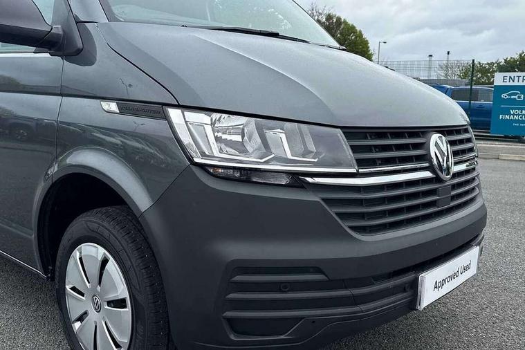 Cross wind assist, Dimmable illuminated instruments, Driver alert with Multi-function display plus, eCall emergency system, Forward collision warning front assist with autonomous emergency braking, Mobile phone interface, Multi function display plus with black and white display, 2 USB interfaces type C in dashboard, 4 speakers with 2 tweeters and 2 woofers, Composition colour radio with 6.5" touchscreen, Digital radio reception (DAB+), Volkswagen app connect, Closing rear wing door with unlatching from the inside, H7 twin halogen headlamps, Heat insulating glass (green) in cab and passenger/load compartment, Heat insulating windshield made of laminated glass, Left convex exterior mirror, Rear wing doors without window apertures, Right convex exterior mirror, Separate Daytime running lights, Transporter nameplate on the rear fender, Unpainted radiator grille with 2 chrome trims, 3 spoke leather wrapped multi function steering wheel, Comfort headliner in cab, hardboard roof trim in passenger and load compartment, Dust/pollen filter, Folding grab handles on roof frame, Front and rear left without window closed side panel in load compartment, Front seats on the right in 1st row of seat, Heavy duty tool kit and jack, High partition, Interior plastic loading edge protection, LED Interior lighting in load and passenger compartment, Standard lower part dashboard in palladium, Without refrigerant, Without right side window apertures in passenger and load compartment, Non smoker pack - Transporter, 3 point height adjustable seat belts on outer seats cab with electric pretensioners, Driver and front passenger airbag with front passenger airbag deactivation, Warning buzzer and light for driver and front passenger seat belt not fastened, Without child safety lock in passenger compartment, Electronic immobiliser, Wheel bolts without wheel locks, 16" chassis with 16" brake system, Diesel particulate filter, Electronic stability control, ABS, ASR with deactivation button, hill start assist and brake assist system, Standard anti drum measures, Start/stop system with regenerative breaking,