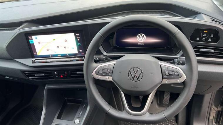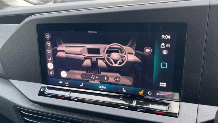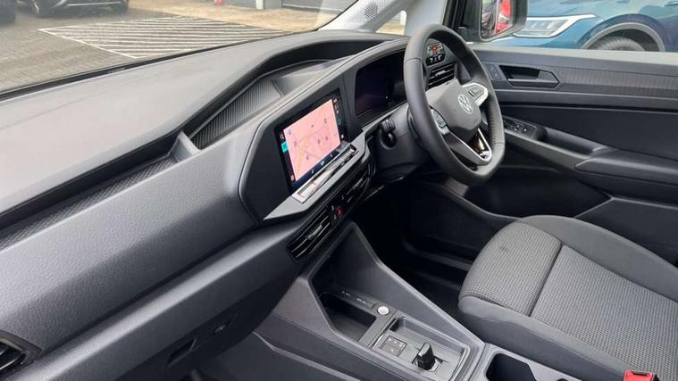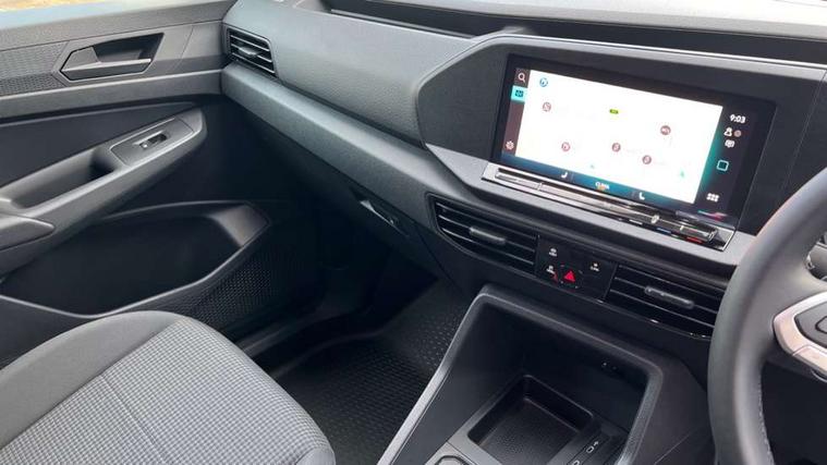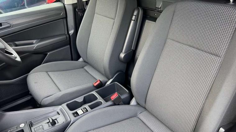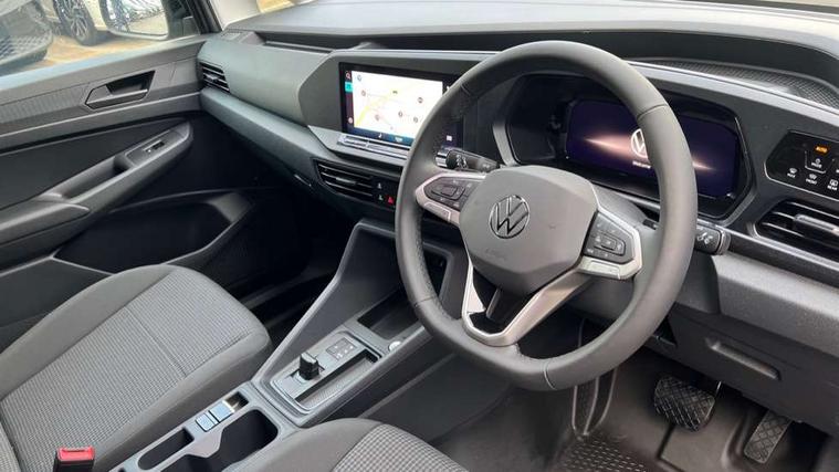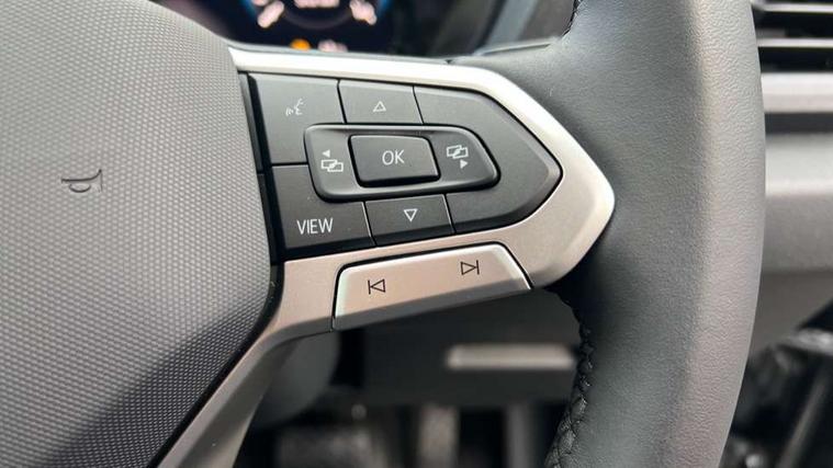 Driver alert system includes drowsiness detection, Emergency call control unit with eCall, Multi-function Display, Seatbelt warning indicator, Service indicator, Start-stop system with regenerative braking, DAB Radio, We Connect Plus Preparation, Automatic hazard light activation under emergency braking, Black painted exterior mirror housings, body-colored door handles and Silver sliding door rail, Body coloured bumpers, Electric front windows, Heated windscreen, LED rear combination lights, LED rear tail lights, Roof rail preparation, Windscreen wiper with variable intermittent delay and wash-wipe system, Electronically controlled heating system, ergoComfort seats for driver, Interior light in headlining, Lockable glove compartment door with light, Manual height adjustment for front seats and seat cushion inclination and depth adjustment on drivers seat, Multi function leather steering wheel, Power-adjustable lumbar support for drivers seat, Reach and rake adjustable steering column, Six lashing points for securing loads, Steering wheel paddle shift, Storage compartments under driver and front passenger seats, Sun visors with mirror, airbag label on front passenger sun visor, 3-point seat belts in front, with pretensioner and height adjustment, Driver and front passenger airbag with front passenger airbag deactivation, Anti-theft alarm system, interior monitoring, backup horn, and towing protection, Electronic engine immobiliser, Remote central locking with deadlocks, interior locking, Anti locking braking system (ABS), Automatic post collision braking system, Electric parking brake with auto hold function, Electronic brake force distribution (EBD), Electronic differential lock (EDL), Electronic stabilisation programme (ESP), Emergency brake assist, Engine drag torque control (MSR), Hill hold assist, Traction control system (TCS), Decorative beige birch vein inserts, Wheel bolts with anti-theft protection (unlockable),
