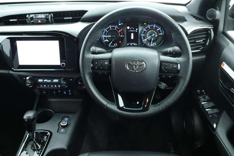 (ACC) Adaptive cruise control switch on steering wheel, 4.2" Multi information display, 8" multimedia system, Black extended surrounds on front fog lamps, Bluetooth connectivity, Colour multi information display, Dynamic guide lines on reversing camera, E-Call emergency call system, Eco driving indicator, Embedded navigation system with cloud connectivity, Front and rear parking sensors, Fuel heater, Intelligent adaptive cruise control, Lane departure alert with brake induced steering, Lane departure warning system, Lane trace assist, Lights on warning buzzer, Multi info, multimedia, telephone, voice recognition switches on steering wheel, MyT connected services, Panoramic view monitor, Power steering, Pre-collision system with pedestrian detection, Reversing camera, Road sign assist, Smart phone integration with Android auto & Apple CarPlay, Tachometer, Tyre pressure warning system (TPWS), Variable flow control (VFC) power steering, Washer fluid level warning, 6 speakers, Digital radio (DAB), MP3 compatibility, Steering wheel mounted audio controls, USB connector, Anti jam protection on front power windows, Auto dimming rear view mirror, Auto Headlights, Automatic headlamp levelling, Automatic high beam, Bi-tone dark grey and grey wheel arch moulding, Black door moulding, Black front spoiler, Black side bar with steps, Body coloured front bumper, Bumper under run protector, C - pillar in black, chrome insert on upper front grille, Dark grey door handles, Dark grey door mirrors, Dark grey front under run, Dark grey insert in headlamps, Dark grey painted lower front grille, Dark grey rear bumper, Dark grey upper front grille surround, Door mirror indicators, Electric front windows with one touch auto up & down function, Electric heated door mirrors, Electronic platform, Emergency brake light assist (EBS), Fixed rear window, Follow me home headlights, Front and rear mudguards, Front and rear power windows, Front spoiler, Front wiper De-icer, Green tinted glass, Headlight cut-off reminder, Heated rear window, Honeycomb black painted front grille, Honeycomb dark grey front grille, Invincible X wide front bumper, LED Daytime running lights, LED dual beam projector headlights, LED front fog lights, LED High mounted stop light, LED Indicators, LED rear brake lights, LED rear combination lights, LED rear lights, Microphone on front personal light, Mud flaps front and rear, Power adjustable door mirrors, Power rear side window, Power retractable door mirrors, Rear doors, Rear fog lights, Rear tailgate, Rear window defogger system, Rear window privacy glass, Shark fin antenna, Silver insert on side doors, Silver surround on multimedia display screen, smoke tinted headlights, Tailgate damper, Trailer sway control, Underbody protection cover, Variable front wipers, Variable intermittent windscreen wipers, Windscreen shadeband, 2 rear coat hooks, 220V power socket, 4 spoke leather steering wheel, 60/40 split tip-up rear bench seat, Adjustable driver seat belt extender, Adjustable rear headrests, Ambient door lighting, Ambient lighting on rear doors, Assist grips in centre pillar, Front pillar and overhead, Auto up and down function on 2nd row, Black centre console, Black front door assist grips, Black insert on centre console, Black upper dashboard, Carpet covered floor, Centre and front room light, Centre console coolbox, Centre console with lid, storage and armrest, Chrome interior door handle, Chrome surround on air conditioning buttons, Clean air filter, Closed upper passenger dashboard storage compartment, Cooler in upper glove box, Driver and passenger seatback pockets, Dual zone automatic air conditioning, Front bottle holders, Front console box, Front cup holders, Front door pockets, Heated driver and front passenger seats, Heated front and rear seats, Illuminated entry system, Inner load hooks on cargo deck, Key reminder warning, Leather gearshift, Leather upholstery, LED Driver and front passenger personal lights, Light blue ambient lighting on front doors, Locking glovebox, Manual telescopic steering wheel, Manual tilt steering wheel, Mirror on passenger sun visor, Multifunction steering wheel, Open tray on passenger dashboard, Pollen filter, Power adjustable drivers seat, Power reclining and sliding driver seat, PTC and viscous heating system, Rear armrest, Rear assist grips, Rear bottle holders, Rear cup holders, Rear door armrest, Rear door pockets, Rear headrests 3, Rear passenger footwell heating, Rear passenger room light, Seatback pockets - shopping bag hooks, silver gear shift surround on centre console, Silver insert on gear shift, Single compartment glove box, Slow opening on lower glovebox, Sunglasses holder, Synthetic leather armrest, Ticket holder on driver sun visor, Under rear passenger bench storage, Child proof rear door locks, Child safety door lock, Front and rear seatbelts reminder, Front passenger airbag detector, Isofix child seat preparation, Passenger airbag on/off switch, Pre tensioners and force limiters, Rear middle 3 point seat belt, Supplement restraint system (SRS) 7 airbags - driver and passenger, knee, side and curtain, Immobiliser, Lockable tailgate, Power door locks, Power passenger window lock, Remote central locking, Smart entry and start system button, Smartphone remote door lock, Smartphone remote hazard lights system, 2 12v sockets, 4x4 rear differential lock, 4x4 steering angle display, Anti lock braking system (ABS), Auto limited slip differntial, Brake assist, Diesel particulate filter, Double wishbone front suspension, Downhill Assist Control (DAC), Hill start assist, Leaf spring rear suspension, Load sensing proportioning system, Pitch and bounce control, Stop/start function, Traction control, Upgraded front and rear differentials, for enhanced torque and drivability, Vehicle stability control, Black chrome deco line on upper dashboard, Black chrome insert on centre air vents, Black chrome side air vent surrounds, Black side air vents, Matt grey 