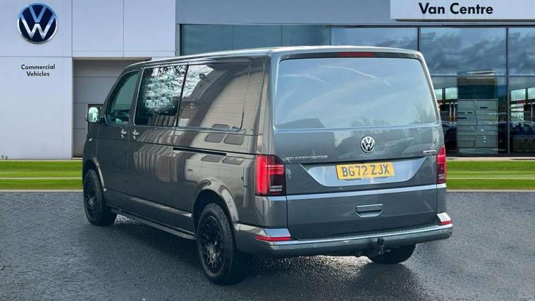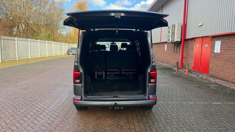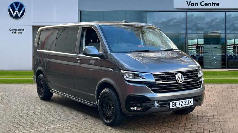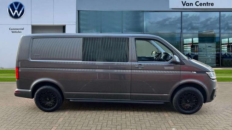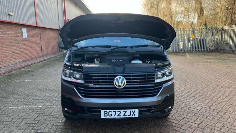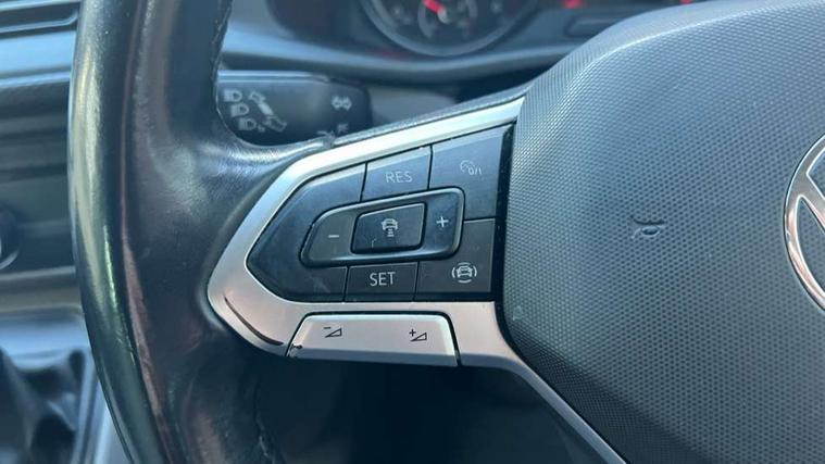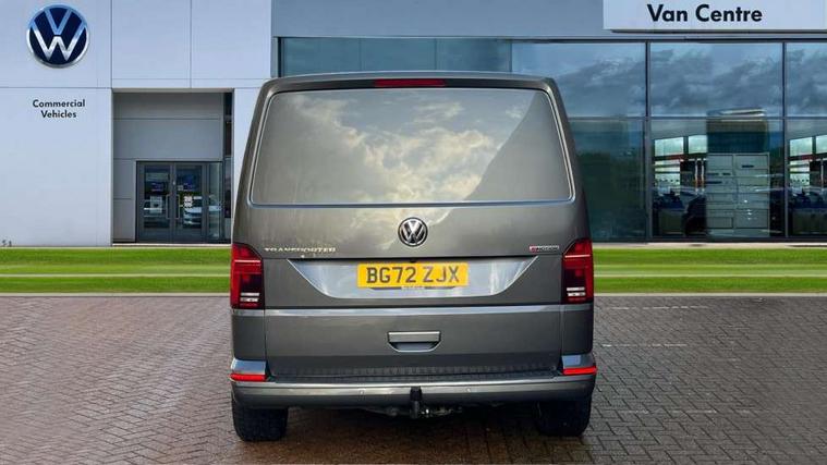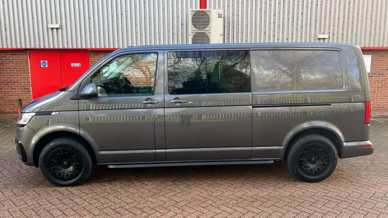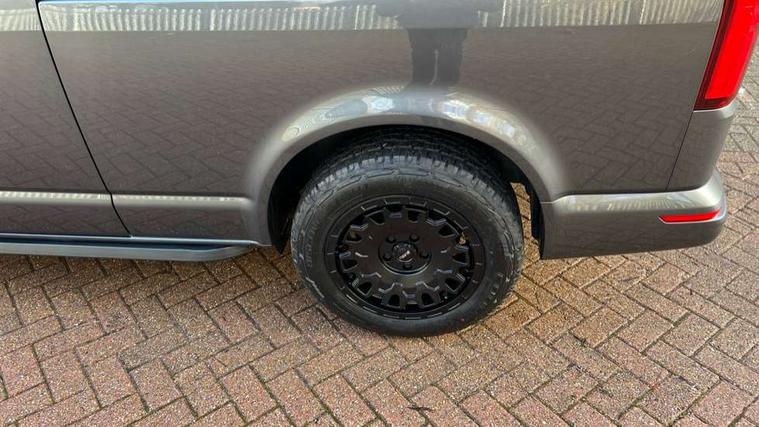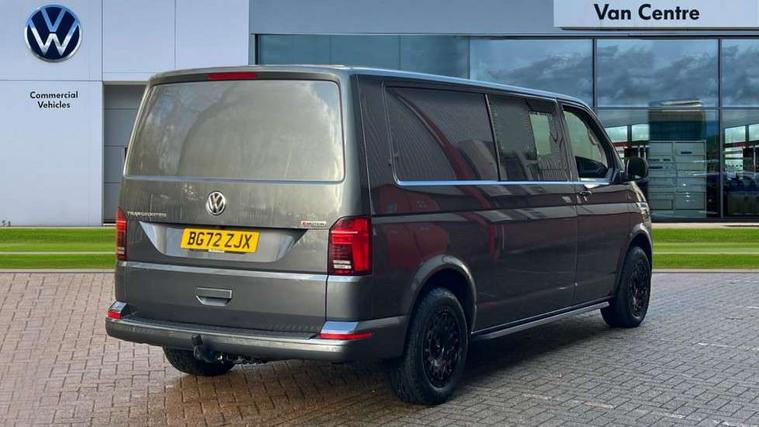 Adaptive cruise control, Child seat anchors ISOFIX and top tether in 2nd row of seats, Cross wind assist, Dimmable illuminated instruments, Driver alert with black and white multi function display plus, eCall emergency system, Forward collision warning front assist with autonomous emergency braking, Headlight range control, Mobile phone interface, Without voice control, 2 USB interfaces type C in dashboard, 4 speakers with 2 tweeters and 2 woofers, Composition colour radio with 6.5" touchscreen, Digital radio reception (DAB+), Volkswagen app connect, Automatic headlight control, leaving home and manual coming home feature, Front fog lamps with cornering light, Green heat insulating glass, Heated front windscreen, Illuminated steps in passenger/load compartment, Left convex exterior mirror, Power folding adjustable door mirrors with separately heated, Privacy glass from the B-pillar and heat-insulating glass in front, Radiator grille with 2 chrome trims, Rear window with heated insulating glass, heated rear window wiper and washer system, Right convex exterior mirror, Tailgate closing with unlatching from the inside, Transporter nameplate on the rear fender, Windshield wiper intermittent control with rain sensor for windshield wipers, Without adhesive film, 3 spoke leather wrapped multi function steering wheel, Additional sound deadening measures in cab and passenger compartment, Auto dimming breakaway interior rear view mirror, Comfort headliner in cab, hardboard roof trim in passenger and load compartment, Dust/pollen filter, Folding grab handles and storage compartments on cab seats, reading light, Front seats on the right in 1st row of seat, Glove compartment with illumination, Heavy duty tool kit and jack, Interior plastic loading edge protection, Lashing rings for load restraint system, LED Interior lighting in load and passenger compartment, Medium height for vehicles with window aperture hardboard side trim panels in passenger/load compartment, Refrigerant R134a, Standard lower part dashboard in palladium, Without partition, Without seats in 3rd row of seats, Comfort pack - Transporter, Exterior pack without fog light- Transporter, Light and vision pack - Transporter, Non smoker pack - Transporter, 3 point height adjustable seat belts on outer seats cab with electric pretensioners, Driver and front passenger airbag with front passenger airbag deactivation, Power operated child safety lock, Warning buzzer and light for driver seat belt not fastened, Anti theft alarm system with interior monitoring in cab, backup horn and towing protection, Lockable wheel bolts, 16" chassis with 16" brake system, Diesel particulate filter, Electronic stability control, ABS, ASR with deactivation button, hill start assist and brake assist system, Speed limiter, Start/stop system with regenerative breaking, 17" Devonport silver alloy wheels, Wheel trims,
