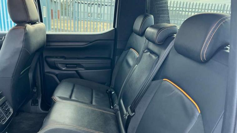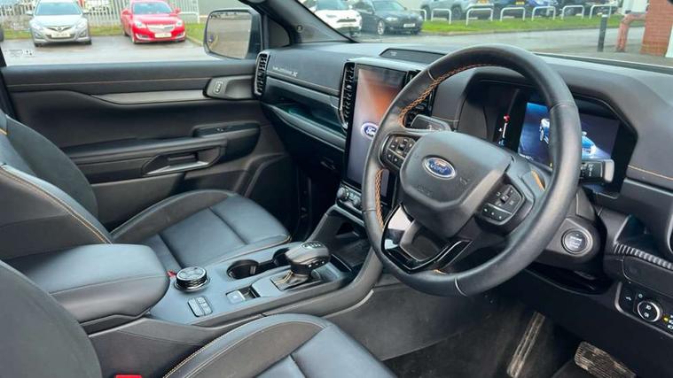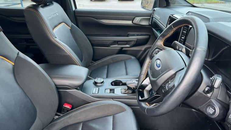 AEB and ISA, Conventional gearshift, Electric power assisted steering, Evasion steer assist, Ford pass connect embedded modem, Ice warning, Partial TFT/LCD instrument cluster, Passenger side roof mounted grab handle, Pre collision assist, Road departure warning, Traffic sign recognition, Trip computer, 360 lighting, Accent colour door handles, Accent colour exterior mirrors, Accent colour front bumper, Accent colour rear bumper, Acoustic laminated windscreen, Assisted conventional tailgate, Auto high headlamp, Automatic headlights, Black rear underrun bar, Cast aluminium side step, Cyber orange lower grille accent strip, Daytime running lights, Dual power heated fold back door mirror with puddle lamps, E-marked glass, Electric rear window defroster, Electric windshield defroster, Electrochromic interior mirror, Fog lamp bezel, Front fender painted grill, Front headlamp leveling, Front splash guard, Front towing hooks, Heavy duty side steps, High mounted stop lamp, Honeycomb radiator grille, Hood applique, Ladder rack, Large wheelarch flares, LED Front fog lamp, Level 2 halogen headlamps, Level 2 LED taillamps, Manual liftgate, Metal underbody protection, Narrow bodyside moulding and insert, Non locking capless fuel fill, Outside thermometer, Plastic cab roll over bar, Power front windows with one touch up/down, Privacy glass, Quickclear heated windscreen, Rain sensitive windshield wipers, Rear bumper extension, Rear bumper step, Rear fog lamps, Rear mudflaps, Rear splash guard, Roof rails, Self coloured decklid handles, Side step - Bar only, Standard green glass windscreen, SVO underbody wax protection, Trailer tow class I, Trailer tow wiring, Under hood engine cover, Wildtrak X front door scuff plates, Wildtrak X tailgate and door badge, Cargo light, Cargo management system, Console with double lid, Door handles with inside MIC, Driver and passenger sunvisor with mirror, Ebony headliner, Electronic dual zone automatic air conditioning, Fold flat rear seat with durabale surface, Fresh air heater, Glove box lights, Heated steering wheel, LED ambient interior lighting, Less load rest, Less outside tie down hooks, Locking glove box lid, Micro rib embossed leather upholstery, Overhead console with dome lamps, Pollen filter, Premium air register, Premium front and rear floor mats, Pull out cup holder, Reach and rake adjustable steering column, Rear floor ducts, Roof storage for driver sunglasses, Steering wheel with multimedia controls, Tie down rails and rope hooks, Washer tank level warn lamp, Front seat pack 7 - Ranger, Functional upgrade pack 3 - Ranger, Heavy duty terrain pack - Ranger, Interior trim pack 13 - Ranger, Rear seat pack 15 - Ranger, Tachograph prep pack - Ranger, Child proof rear door locks, Driver and passenger airbag, Driver knee airbag, Head and thorax airbag in 2nd row, ISOFIX child safety seat attachment, Passenger knee airbag, Tyre pressure sensors, 2 Remote control unit - key fob, Flip key, Immobiliser, Locking wheel lug nut, Passive anti theft system, Passive keyless entry, Power door dead locks, Power tailgate lock, Thatcham alarm system, Thatcham security system, 12V aux rear power point plug, ABS/ESP brakes with electronic brake boost, Electric parking brake, Emergency brake assist, Engine start/stop system, Front and rear disc brakes, Off road suspension, 17" Aluminium spare wheel, 17" asphalt black matte alloy wheels and all terrain tyres with low gloss black centre cap - J4YAX, Spare tire lock,