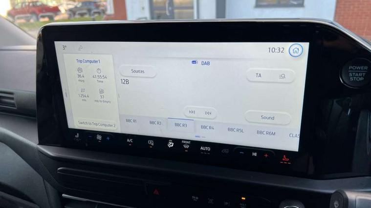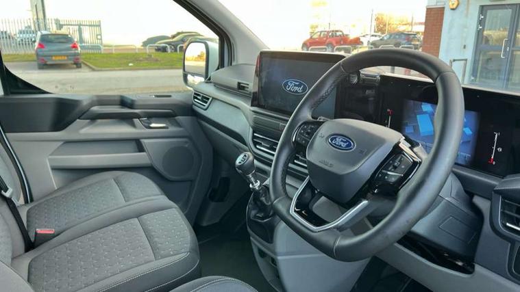 13" Touchscreen, 5G embedded modem, AECS NO SMS/Roll Detect 2G, PAS, Tyre pressure monitor, SYNC 4 - Android Auto/Apple Car Play, advance speech recognition, over the air update capability, Body coloured door mirrors, Body coloured front bumper, Body coloured rear bumpers, Daytime running lights, Electric front windows with one touch facility for driver and front passenger, Front splash guards, Low roof line, Quickclear front window defroster, Rear cargo hinged door, Rear splash guards, Tinted glass, Trailer sway control, 6 Load compartment tie down loops, Courtesy light, Interior grab handle with driver's sunglasses holder, LED lights, Locking glove box lid, Sensico gearshift knob, Super bright load compartment lights, Passenger airbag, 2 remote keys, Alcohol Interlock wiring preparation pack, Configurable locking 1, Keyless entry and start, Locking wheel lug nut, Power door dead locks, Speed dependant locking, Thatcham category 1 alarm, 20L AdBlue tank, ABS, Diesel particulate filter, ESP, Hill launch assist, Traction control, 16" Steel spare wheel, Full wheelcovers,