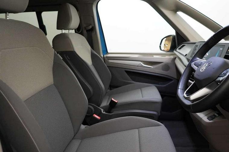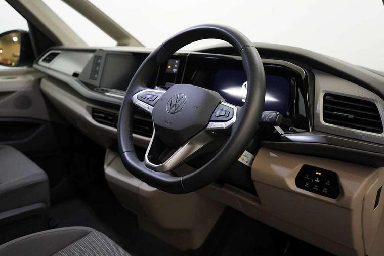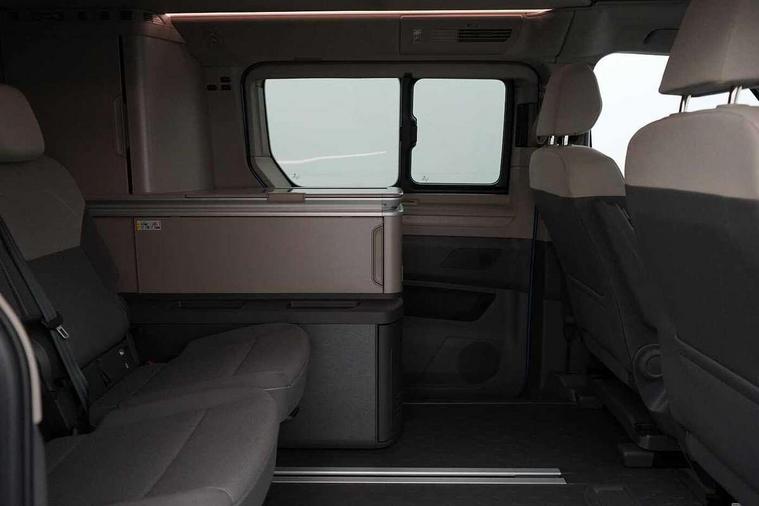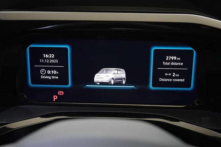 Advanced driver attention and drowsiness monitor, California on tour app, Digital cockpit pro, eCall emergency system, Function control unit, IDA voice assistant and voice enhancer, Lane keeping system Lane Assist, Mobile phone interface, Multifunction camera, PAS, Preparation for online services, Traffic sign recognition, Turn assist with evasive assistance, Volkswagen wired and wireless app connect, Additional batteries 2nd and 3rd with voltage transformer NV, Battery without capacity specification, Standard battery/generator, 2 USB-C ports at the front, 4 USB-C charging sockets in the passenger compartment, 8 Speakers, Digital radio reception (DAB), 3rd brake light, 65% light absorbing privacy glass, Electro hydraulic elevating roof, with three windows including one front passengers panorama opening, canvas in Basalt Grey, Four speed control for windscreen wipers, Heat and sound insulating laminated safety glass windshield, Heated windscreen, High gloss black door mirrors, LED Headlights, Molding between headlamps painted to glossy black, Nameplate set California, Poor weather light including cornering light, Rear boot, Red LED tail lights, Sliding window in front and fixed window in rear in load/passenger compartment on driver side, Windscreen wiper intermittent control, 2 single seats with integrated seatbelt and sleeping mat, 230V external inlet with charging feature for vehicle batteries, 230V inverter with socket on driver seat, 3 Zone climatronic air conditioning system, Additional interior noise attenuation, Armrest on front swivel seats in both sides with electric lumbar support, Darkening roller blinds and thermo mats, Drawers under the outer seats in the cab and passenger compartment & 2 waste bins, Front and rear headrests, Kitchen with outdoor folding table for cooking in décor 1, Lockable glove compartment without lighting, Multifunction leather steering wheel with paddle shifters, Plastic floor covering in passenger/load compartment, Single front passenger seat, Sun visors with mirror, illuminated, ticket holder on the driver side, with airbag label on sun visor and B-pillar, Surround lighting in door area, Swivel seat on left with height adjustable including drawer, Swivel seat on right with height adjustable including drawer, Lighting package - California, 2x3 point automatic seatbelts at the rear outside with ECE label, with/without belt tensioner, Autonomous emergency braking front assist with pedestrian and cyclist monitoring, Child locks, Driver and front passenger airbags with front passenger airbag deactivation button, First aid kit with warning triangle and safety vest, Front Assist with pedestrian and cyclist detection, Front disc brakes, Height adjustable three point automatic seatbelts at front with belt and end fitting tensioners, Side and curtain airbags for driver and front passenger, curtain airbags for outer seats in rear, centre airbag in front, Swerve support and oncoming vehicle braking when turning, Tyre pressure loss indicator, Anti theft alarm system with interior monitoring in cab, backup horn and towing protection, Central locking + keyless locking and starting system Keyless Advanced with safe lock, Lockable wheel bolts, Preparation for alcohol interlock, 5+ Promise service plan, Scale light grey decorative inlays, Tool kit, Trims for alloy wheels, Tyre mobility kit,
