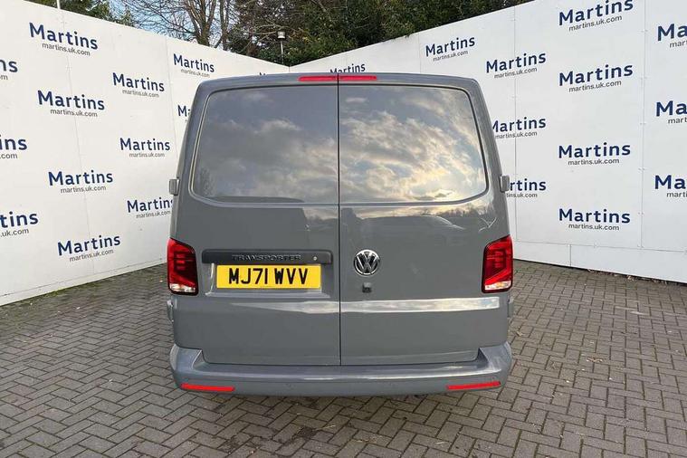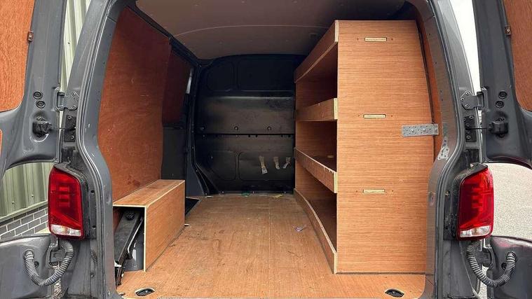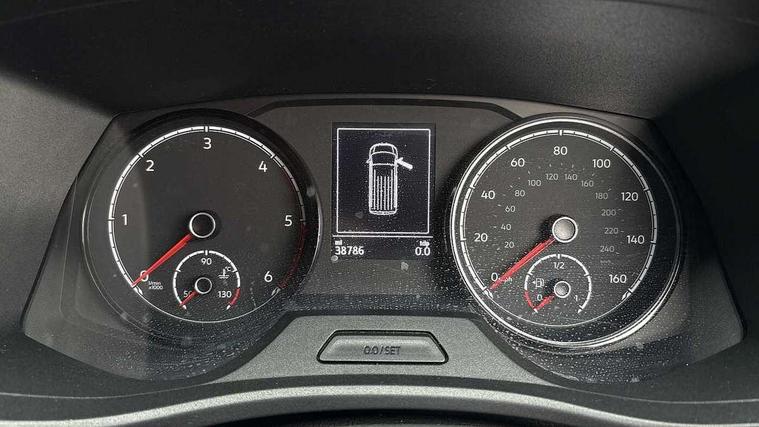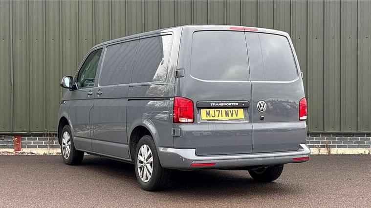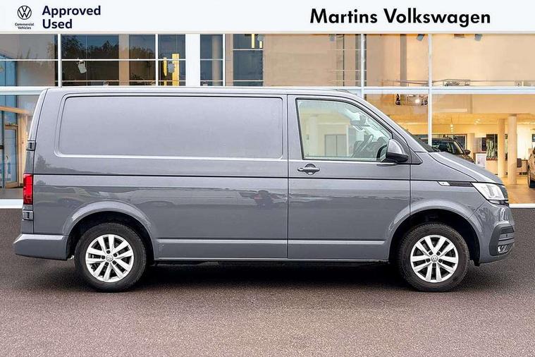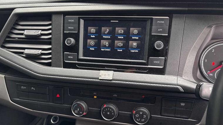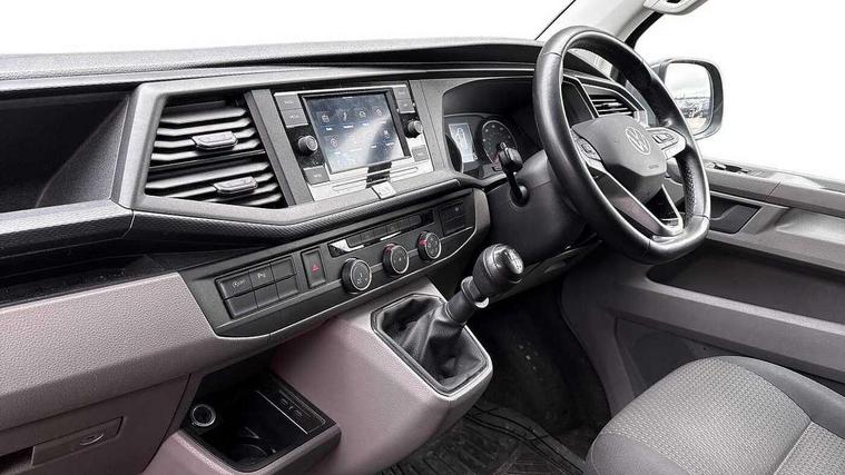 Adaptive cruise control, Cross wind assist, Dimmable illuminated instruments, Driver alert with Multi-function display plus, eCall emergency system, Electromechanical speed sensitive power steering, height and longitudinally adjustable steering column, Forward collision warning front assist with autonomous emergency braking, Mobile phone interface, Multi function display plus with black and white display, 2 USB interfaces type C in dashboard, 4 speakers with 2 tweeters and 2 woofers, Composition colour radio with 6.5" touchscreen, Digital radio reception (DAB+), Volkswagen app connect, Automatic headlight control, leaving home and manual coming home feature, Closing rear wing door with unlatching from the inside, Front fog lamps with cornering light, Green tinted heat insulating glass in cab and passenger compartment, Heated front windscreen, Left convex exterior mirror, Power adjustable and heated exterior mirrors, Power folding adjustable door mirrors with separately heated, Radiator grille with 2 chrome trims, Rear wing doors without window apertures, Right convex exterior mirror, Transporter nameplate on the rear fender, Windshield wiper intermittent control with rain sensor for windshield wipers, 3 spoke leather wrapped multi function steering wheel, Auto dimming breakaway interior rear view mirror, Comfort headliner in cab, hardboard roof trim in passenger and load compartment, Dust/pollen filter, Front and rear left without window closed side panel in load compartment, Front seats on the right in 1st row of seat, Glove compartment with illumination, High partition, Interior plastic loading edge protection, LED Interior lighting in load and passenger compartment, Manual adjustable lumbar support for right single seat in 1st row seats, Refrigerant R134a, Rubber floor covering in cab, Standard lower part dashboard in palladium, Storage compartments on cab seats and reading light, Without right side window apertures in passenger and load compartment, Comfort pack - Transporter, Exterior pack without fog light- Transporter, Non smoker pack - Transporter, 3 point height adjustable seat belts on outer seats cab with electric pretensioners, Driver and front passenger airbag with front passenger airbag deactivation, Single tone horn, Warning buzzer and light for driver and front passenger seat belt not fastened, Without child safety lock in passenger compartment, Anti theft alarm system with interior monitoring in cab, backup horn and towing protection, Lockable wheel bolts, 16" chassis with 16" brake system, Diesel particulate filter, Electronic stability control, ABS, ASR with deactivation button, hill start assist and brake assist system, Start/stop system with regenerative breaking, 16" Clayton alloy wheels,