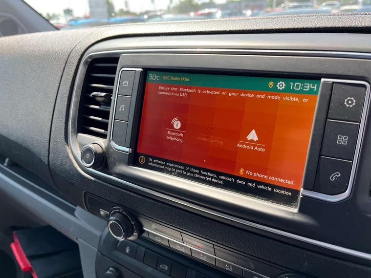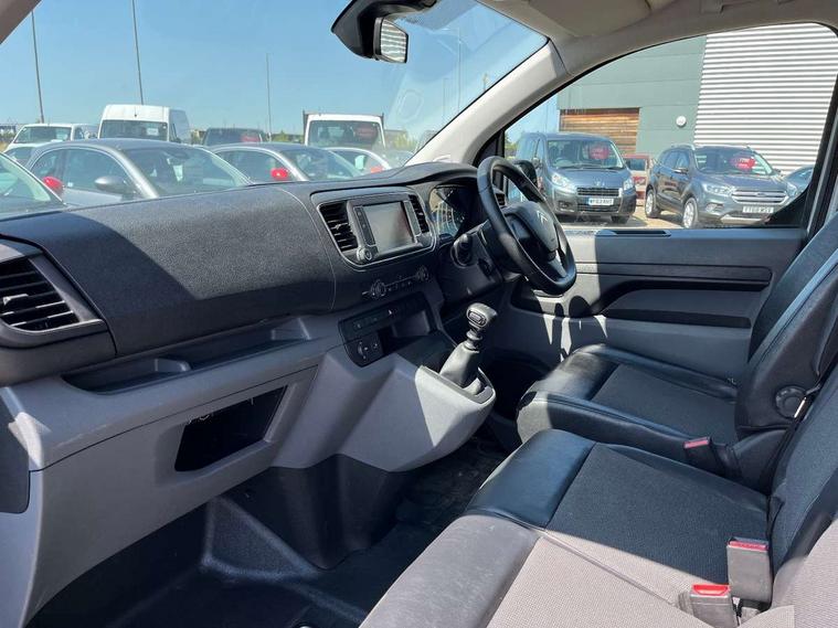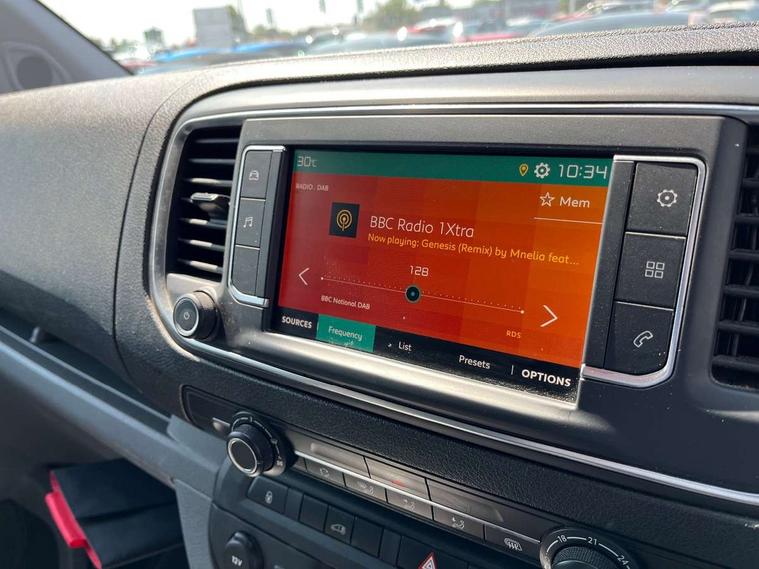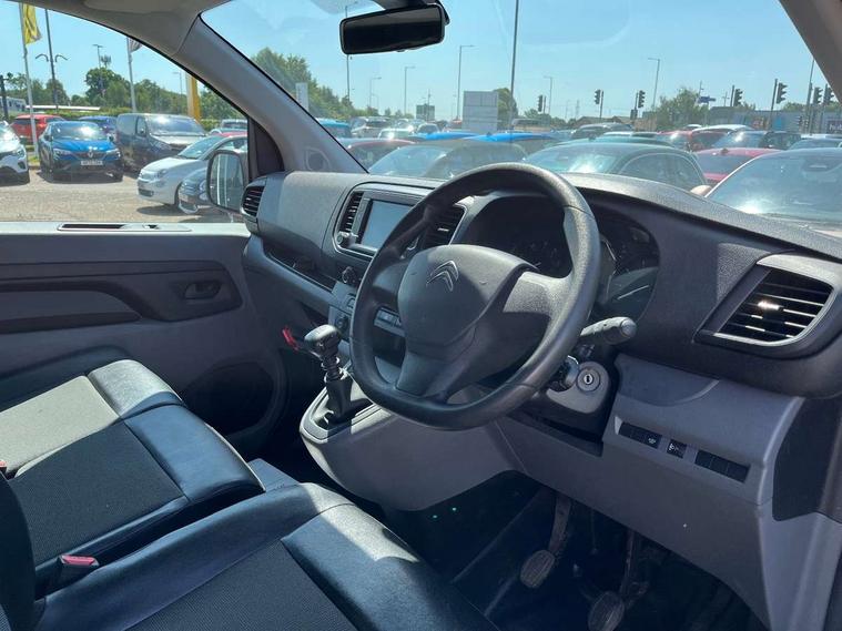 Battery charge warning, Citroen connect box with emergency and assistance system, Clock, Cruise control with speed limiter, Door open warning light, Headlamp and side indicator warning, Lights on warning buzzer, Multi-function on-board trip computer, Oil level warning light, Outside temperature gauge, PAS, Rev counter, Service indicator, Speedometer with digital odometer and digital trip recorder, Audio controls mounted on steering wheel, 2 speed intermittent front wipers, Electric front windows with one touch & anti pinch function, Front windows tinted to 30 percentage opacity, High level third brake light, Laminated acoustic windscreen, Rear fog lights, Reversing lights, Towbar preparation, Twin sliding unglazed side doors, Visible VIN at windscreen base, Closed upper and open lower gloveboxes, Cup holders for driver and passenger, Dashboard storage areas, Driver and passenger sun visors, Front door pockets with 1.5L bottle holder, Hard plastic floor protection in cabin, Heater with 4 dashboard air vents, Height adjustable driver seat with lumbar support and armrest, Height adjustable head restraints for driver and front passengers seats, Height and reach adjustable steering wheel, Large courtesy lights, Load compartment interior light, Mica cloth/Vinyl upholstery, Moduwork dual passenger bench seat with fold-up outer seat, folding down writing table in central seat back and storage under central seat, Rubber floor in load compartment, Under dash storage areas, Visibility Pack with automatic lights - Dispatch, Automatic fuel cut off & door unlocking, Driver and front passenger airbag with deactivation, Height-adjustable 3-point pre-tensioner seat belts with force limiter, Unfastened seat belt warning for driver and passengers, Dashboard mounted central locking push button and auto locking above 7mph, Perimeter and volumetric thatcham category 1 approved alarm, Remote central locking with deadlocking, selective cab and load area locking via 3 button plip remote control key, Rolling code transponder immobiliser, 12V socket in cabin, 12V socket in cargo area, Electronic Stability Control and ABS with hill start assist, EBA and EBFD, Full size spare wheel,