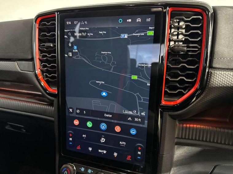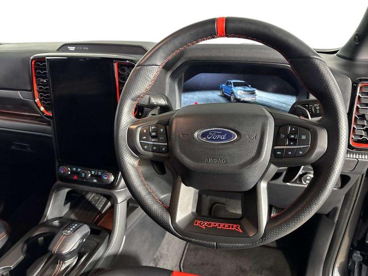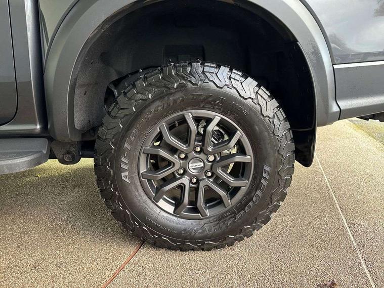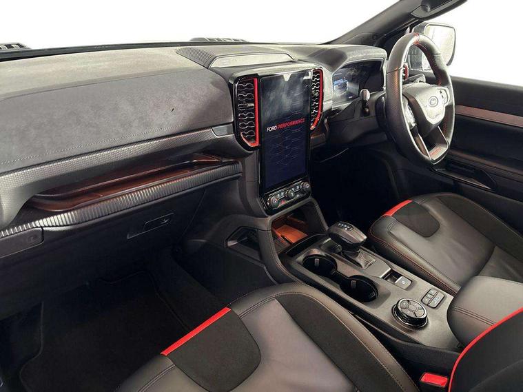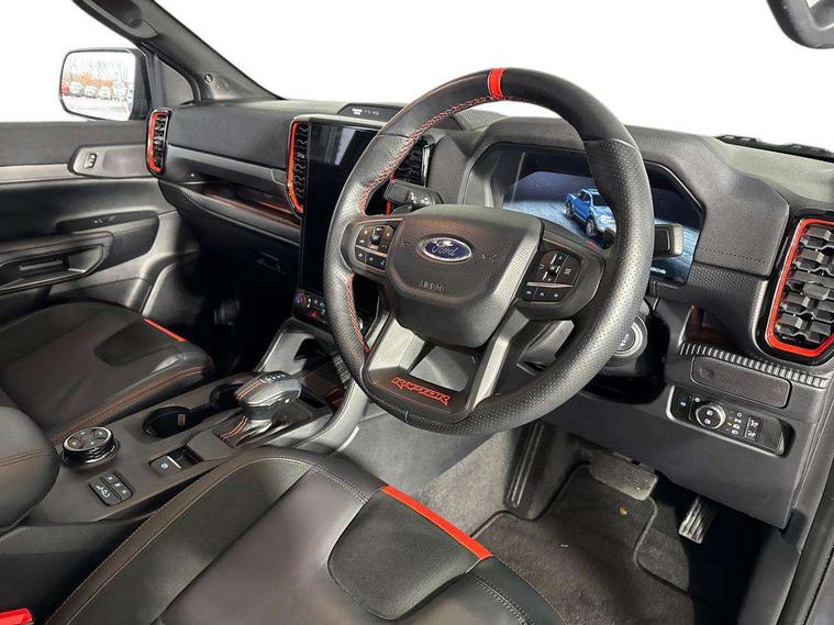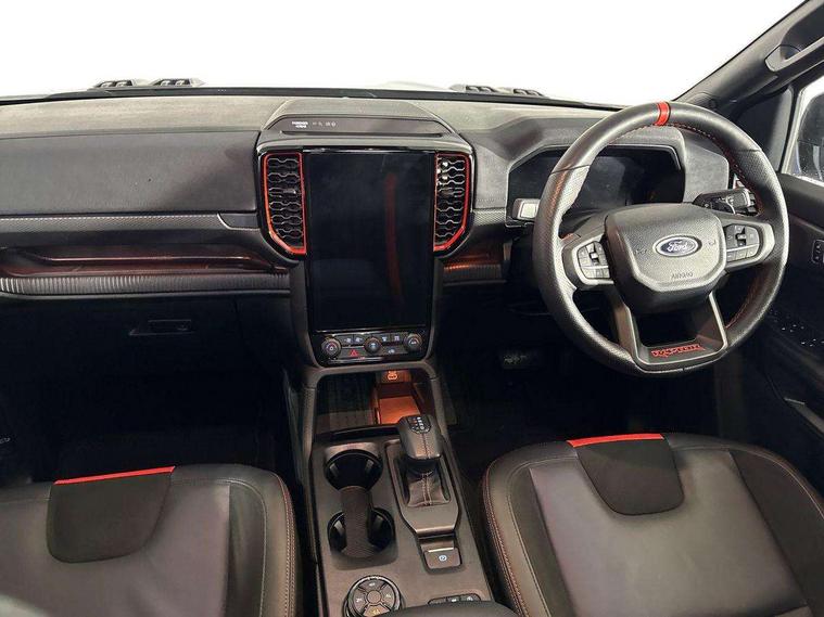 A-pillar assist handle, Electric power assisted steering, Electronic automatic gearshift, Full TFT/LCD instrument cluster, Passenger side roof mounted grab handle, Wireless charging pad, 360 lighting, Accent colour HD front bumper, Acoustic laminated windscreen, Assisted conventional tailgate, Automatic headlamp levelling, Automatic headlights, Black front fender grille, Black grille, Body colour exterior mirrors, Body coloured door handles, Cast alloy side step, Daytime running lights, Dual power heated fold back door mirror with puddle lamps, E-marked glass, Electric rear window defroster, Electric windshield defroster, Electrochromic interior mirror, Extra large wheelarch flares, Fog lamp bezel, Front splash guard, Front towing hooks, Fuel tank guard, High mounted stop lamp, LED Front fog lamp, Level 3 Taillamps, Manual liftgate, Metal underbody protection, Non locking capless fuel fill, Power front windows with one touch up/down, Power rear windows, Privacy glass, Rain sensitive windshield wipers, Rear bumper step accent color, Rear fog lamps, Rear splash guard, Rear towing hooks, Self coloured decklid handles, Tempered glass front window, Under hood engine cover, 12v socket in bedliner, Cargo light, Console with double lid, Driver and passenger sunvisor with mirror, Electronic dual zone automatic air conditioning, Fresh air heater, Front premium floor mats, Heated steering wheel, High series air register, LED ambient interior lighting, Load box bedliner, Load box edge protectors, Locking glove box lid, Non woven carpet, Overhead console with dome lamps, Pollen filter, Pull out cup holder, Radio noise supression, Rear floor ducts, Roof storage for driver sunglasses, Steering wheel with multimedia controls, Super matte leather upholstery, Tie down hooks, Washer tank level warn lamp, Front seat pack 9 - Ranger, Functional upgrade pack 3 - Ranger, Heavy duty terrain pack - Ranger, ICE feature pack 106 - Ranger, Interior trim pack 15 - Ranger, Rear seat pack 15 - Ranger, Wheel pack 19 - Ranger, Breakdown warning triangle, Child proof rear door locks, Driver and passenger airbag, Dual note electric horn, 2 Remote control unit - key fob, Non locking lug nuts, Passive keyless entry and start system, Power door dead locks, Stolen vehicle recovery system, Tailgate lock, Thatcham alarm system, Thatcham security system, 400W Power inverter, ABS/ESP brakes with electronic brake boost, Battery management system, Cabin socket and loadbox socket, Electric parking brake, Electrical outlet 3, Engine start/stop system, Front and rear disc brakes, Locking front axle, Locking rear axle, Performance suspension, Rear power point plug, 17" alloy wheels painted in precision grey and all terrain tyres with Ford carbon black centre cap, 17" Aluminium spare wheel, Spare tire lock,