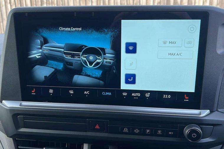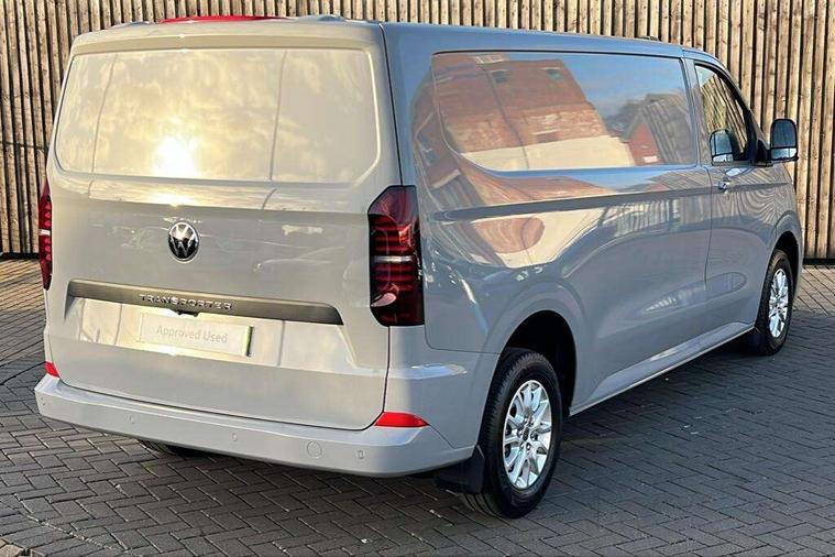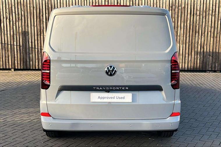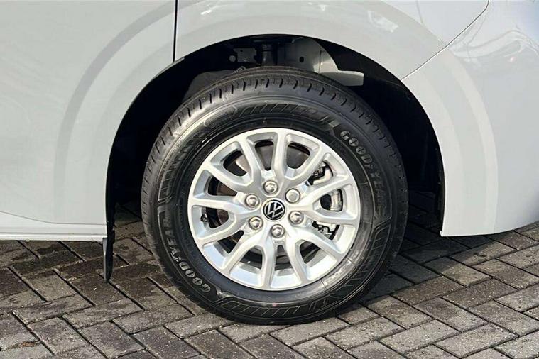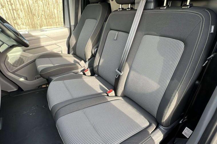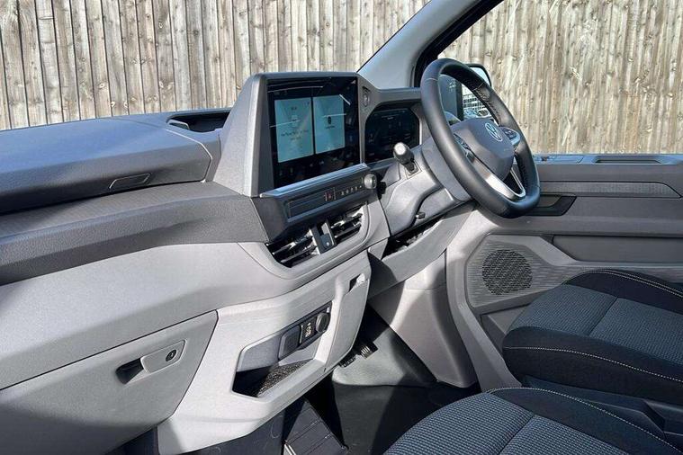 12" digital drivers display, 13" touchscreen infotainment display with wireless app connect and DAB radio, 5G Modem, Adaptive cruise control, Apple CarPlay and Android Auto, Dynamic road sign display, eCall emergency system, Electromechanical speed sensitive power steering, height and longitudinally adjustable steering column, Lane and blind spot assist with exit warning system, Preparation of VW connect and connect plus, Traffic jam assist, Wireless mobile phone charging, Wrong way driver warning, Body colour bumpers, Body coloured door handles, Body coloured door mirrors, Body coloured radiator grille, Electrically heated, adjustable and folding door mirrors, Heat reflecting side window glass, Mud flaps front and rear, Rear Transporter nameplate in black grained decorative trim, Vehicle opening configuration 1x 1st row of seats, 2x all doors, 12V outlet in centre console and 12V outlet on rear right D-pillar, 2x 15-W USB data/charging ports in dashboard and 1x USB-C, 1x USB-A center bottom, 2x LED lights in load compartment, 3x additional super bright LED lights in load compartment, 4 way height and tilt adjustable head restraints, 5 additional USB-C charging ports, Black plastic scuff plate for sliding door in cargo without illumination, Cabin interior lighting, Gear selector lever on steering wheel, Glasses compartment in driver side roof, Grab handle on A-pillar passenger side, Illuminated lockable glovebox, Lashing rings for reinforced floor covering, Narrow centre console with cup holder and compartment for mobile phone, Overhead storage compartment, Rubber floor covering in cab, Striped fabric upholstery, Without passenger seats in load compartment, Driver and front passenger airbag with front passenger airbag deactivation, Dual tone horn, Front and curtain airbags for driver and front passenger, Seat belt pretensioner for driver seat, Anti theft alarm system with interior monitoring in cab, backup horn and towing protection, Electronic immobiliser, Lockable wheel bolts, Preparation for alcohol ignition interlock, 5+ Promise, Alternator - 230A, Electromechanical brake booster, Electronic stability control, ABS, ASR with deactivation button, hill start assist and brake assist system,