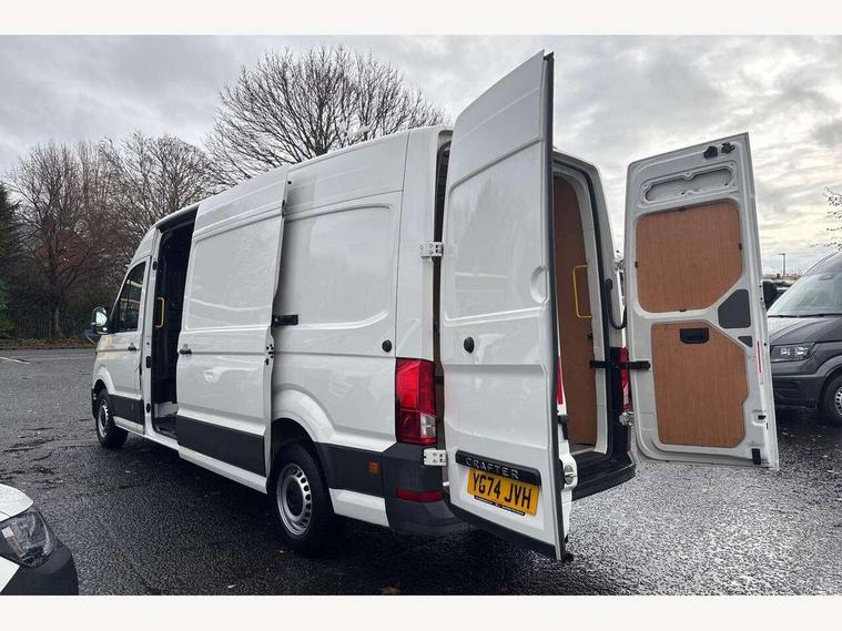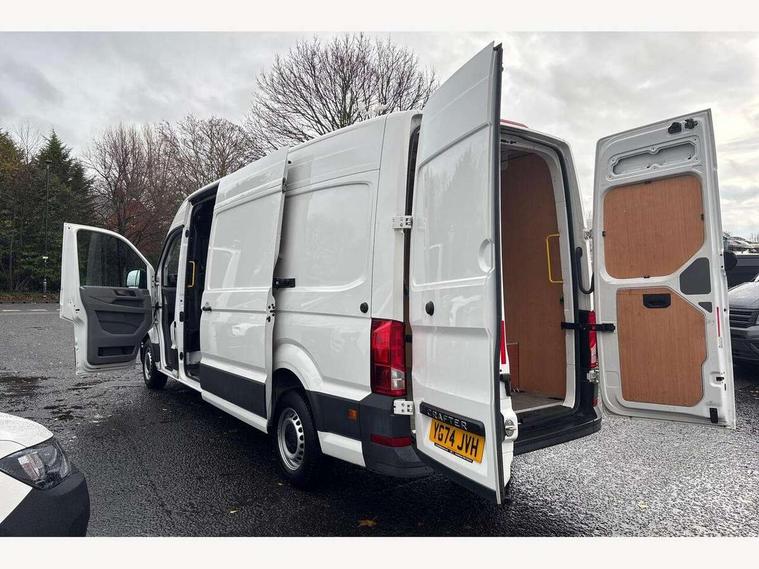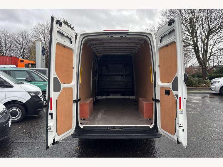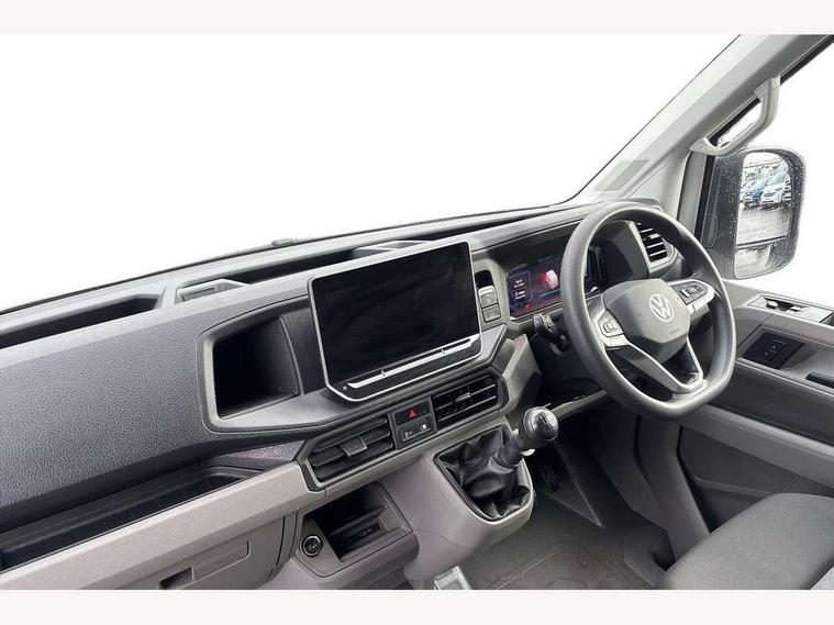 Bluetooth, Digital clock, Driver alert system, E-call + We connect basic preparation, Instrument cluster, Lights on warning buzzer, Locking fuel cap, Multi-function Display Plus, Rev counter, Service indicator, Speedometer, Voice control system, Composition media with 6.5" with we connect plus prep, 4 speaker, multifun display plus, USB, mob interface, app con, "We connect function", DAB Radio, Auto low beam mode, Leaving home function and manual coming home function, Cab doors, Convex and wide angle mirror, Driver seatbelt warning light, Electric windows, Electrically heated and adjustable door mirrors, Half painted front bumper, Heat insulating glass, Indicators in front door mirrors, One towing eye in front, Rear wing doors with 270 degree hinges, Special identification plate, Unpainted radiator grille, Air recirculation system, Ashtray, Centre console storage tray, CFCU preparation, Charcoal filter, Climatic air conditioning, Document holder on centre console, Drinks holders, Electromechanical Servotronic steering, Electronically controlled heating system, Fully adjustable suspension type driver seat, Grab handles on rear entry pillars, Height adjustable head restraints, Height and reach adjustable steering wheel, Illuminated glove compartment with lockable lid, Interior light, including 2 reading lights, Interior light, switchable by door, Jack and tool kit, Preparation for interface for external use with terminal block, Storage compartments in doors and in step, right, Storage tray on dashboard, Two 12V outlets in the cab (in the dashboard), Without rear side trim panel passenger load compartment, Non-smokers pack - Crafter, 3 point inertia reel belt on all seats, Automatic hazard light with emergency braking, Crosswind assist, Driver and front passenger airbag with front passenger airbag deactivation, Height adjustable seatbelts for outer cab seats, 1 rigid key, Anti-theft alarm with interior monitor, back up horn and tow away protect, overhead storage with two 1-DIN, reading light, SAFELOCK with 2 remote keys, Engine immobiliser, ABS, Automatic post collision braking system, EBA, EBD, EDL, ESP, Front disc brakes, HBA, Hill start assist, Parking brake - hill hold control, Start and stop system with regenerative braking, TCS, Hub cap covers,