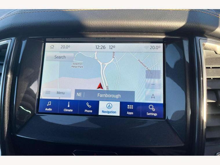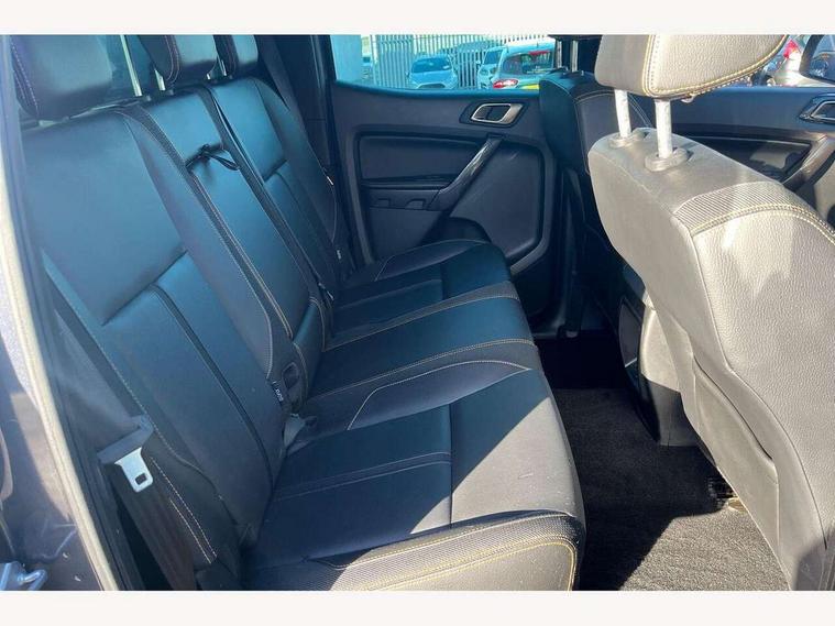 2 key fob, Collision mitigation braking system, Electric power assisted steering, Fixed rear view camera, Intelligent speed assistant, Lane keeping aid, Traffic sign recognition, Trip computer, Automatic headlights, Body coloured plastic front bumper, Boulder grey exterior door handle, Boulder grey exterior door mirror, Boulder grey radiator grille, Daytime running lights, Dual power heated fold back door mirror with puddle lamp and signal, Electrically operated windows with one shot driver's window, Electrochromic interior mirror, Front splash guard and mud flaps, Heated windshield and rear window, High mounted stop lamp with cargo area light, LED Front fog lamp, LED projector headlamps, Moulded in colour tailgate handle, Painted front fender grille, Privacy glass, Rain sensitive windshield wipers, Rear bumper chrome under-bar, Rear bumper step in boulder grey, Rear mudflaps, Roof rails, Side step with brushed inserts, Sports bar, Tailgate - Easy-lift/lower mechanism, Under hood engine cover, Underbody protection, Centre console coolbox, Chrome interior door handle, Driver seat back mounted map pocket, Dual control system - Electronic air temperature control (EATC), Ebony headliner, Heated front seat, Journey grain partial leather upholstery with Wildtrak logo, Leather gearknob, LED ambient interior lighting, Power adjustable 8 way driver seat, Premium front and rear floor mats with Wildtrak logo, Reach and rake adjustable steering column, Roof storage for driver sunglasses, Sport leather stitched steering wheel, Tie down rails and rope hooks, Wildtrak door trim panel insert, ICE feature pack 129 - Ranger, 3 point inertia rear seatbelts, Driver and front passenger airbag, side airbag, curtain airbag and driver knee airbag, ISOFIX child safety seat attachment, Seatbelt reminders for driver and front passenger, Tyre pressure sensors, Double locking power door lock with flip key, Immobiliser, Locking wheel nuts, Passive anti theft system, Passive keyless entry and start system, Power tailgate lock, Spare wheel lock, Thatcham category 1 alarm security system, ABS, ESP and roll over mitigation, Emergency brake assist, Engine start/stop system, Locking rear axle, Power converter,