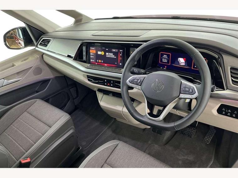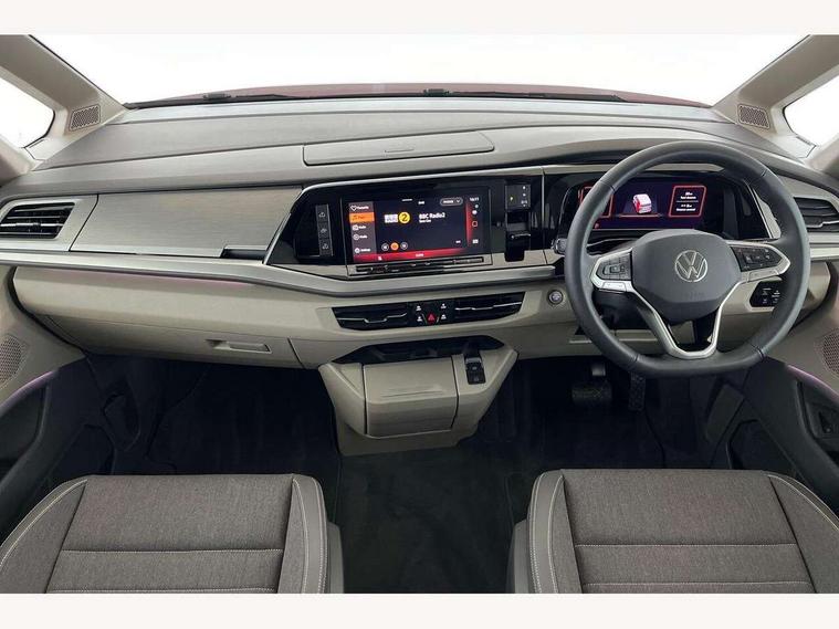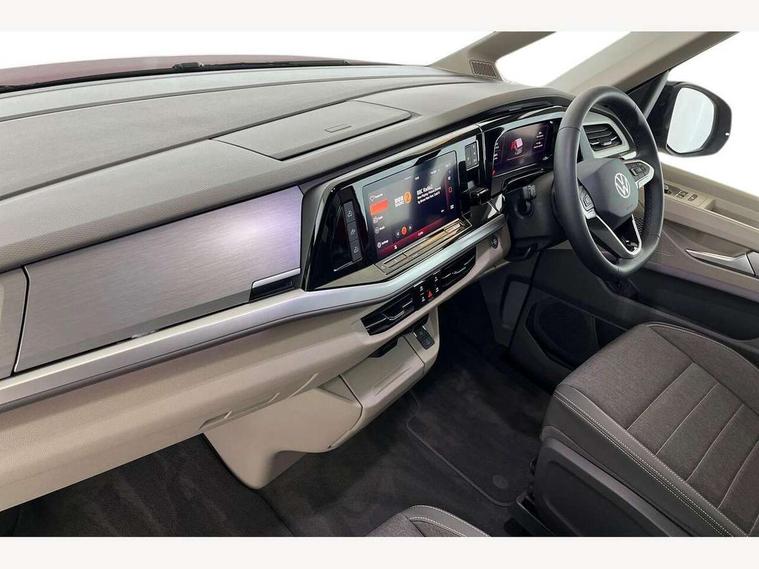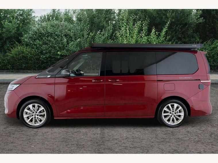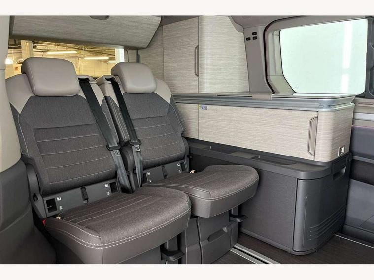 Advanced driver attention and drowsiness monitor, California on tour app, Digital cockpit pro, Discover Pro Navigation system, Driving profile selection, Dynamic road sign display, eCall emergency system, Emergency assist, Front cross traffic assist, Function control unit, IDA voice assistant and voice enhancer, Lane keeping system Lane Assist, Mobile phone interface, Motorhome Registration, Multifunction camera, PAS, Preparation for online services, Preparation for We connect and We connect plus, Servotronic speed sensitive power steering, Speed limiter and predicative speed limiter, Tailgate with window aperture and with power latching, Travel assist, Turn assist with evasive assistance, Volkswagen wired and wireless app connect, Alternator 60A, 2nd and 3rd auxiliary batteries with low -voltage converter, Battery 380 A (68 Ah), Battery without capacity specification, Charging cable mode 3, type 2/3, 16 A, Standard battery/generator, Standard suspension and shock absorption, 10.4 inch infotainment system with scalable module options, 2 USB-C ports at the front, 4 USB-C charging sockets in the passenger compartment, 8 Speakers, Digital radio reception (DAB), 3rd brake light, Dynamic headlight range control, Electro hydraulic elevating roof, with three windows including one front passengers panorama opening, canvas in Basalt Grey, Four speed control for windscreen wipers, Gloss black grille with 2 illuminated chrome trim, Heat and sound insulating laminated safety glass windshield, Heated windscreen, High gloss black door mirrors, Illuminated molding between headlamps, Nameplate set California, Poor weather light including cornering light, Rear boot, Red LED tail lights, Sliding window in front with fly screen in passenger compartment left/right & including privacy glass in rear, Windscreen wiper intermittent control, 2 single seats with integrated seatbelt and sleeping mat, 230V external inlet with charging feature for vehicle batteries, 230V inverter with socket on driver seat, Additional interior noise attenuation, Ambient interior lighting, Armrest on front swivel seats in both sides with electric lumbar support, Camper parking heater for continuous operation, Darkening roller blinds and thermo mats, Drawers under the outer seats in the cab and passenger compartment & 2 waste bins, Front and rear headrests, Heated front seats, Heated steering wheel, Kitchen with outdoor folding table for cooking and roof storage box in décor 2, Lockable glove compartment with lighting, Luggage compartmen with power latching, Multifunction leather steering wheel with paddle shifters, Reinforced plastic floor covering in wood look, Single front passenger seat, Storage compartment left and right 1st row of seats, Summer kitchen with outside folding table and 230-V outlet for cooking and roof storage box, Surround lighting in door area, Swivel seat on left with height adjustable including drawer, Swivel seat on right with height adjustable including drawer, Tailgate latching without unlatching function from inside, Velour floor mats in cab, Without loading edge protection, Without luggage compartment cover, Advanced assistance pack - California, Top package - California, 2x3 point automatic seatbelts at the rear outside with ECE label, with/without belt tensioner, Autonomous emergency braking, Child locks, Driver and front passenger airbags with front passenger airbag deactivation button, First aid kit with warning triangle and safety vest, Front Assist with pedestrian and cyclist detection, Front disc brakes, Height adjustable three point automatic seatbelts at front with belt and end fitting tensioners, Occupants detection only display, Side and curtain airbags for driver and front passenger, curtain airbags for outer seats in rear, centre airbag in front, Swerve support and oncoming vehicle braking when turning, Tyre pressure loss indicator, Warning signal and warning lamp for front and rear seat belts not fastened, Anti theft alarm system with interior monitoring in cab, backup horn and towing protection, Central locking + keyless locking and starting system Keyless Advanced with safe lock, Lockable wheel bolts, Preparation for alcohol interlock, 5+ Promise service plan, Dark silver brushed decorative inlays, 235/50 R18 tyres with low rolling resistance, Tool kit, Trims for alloy wheels, Tyre mobility kit, Without spare wheel,