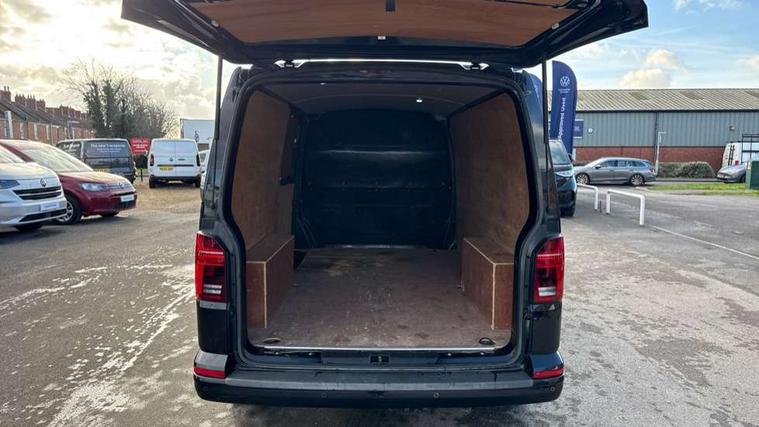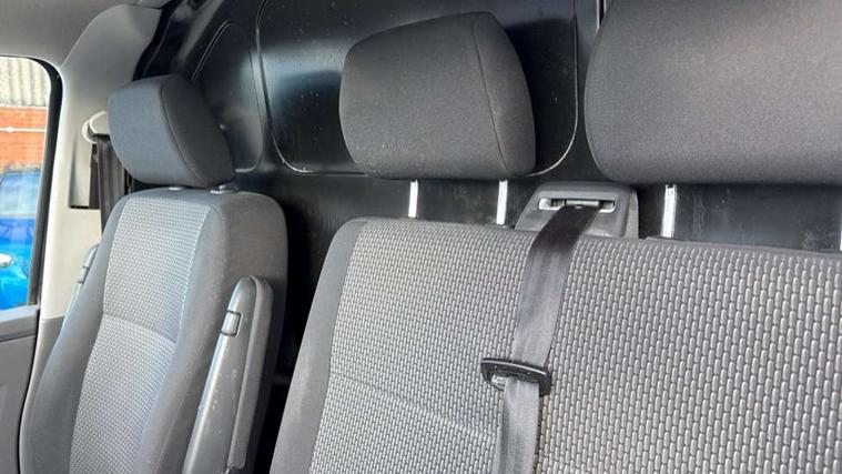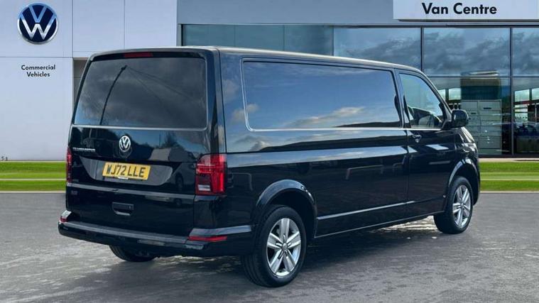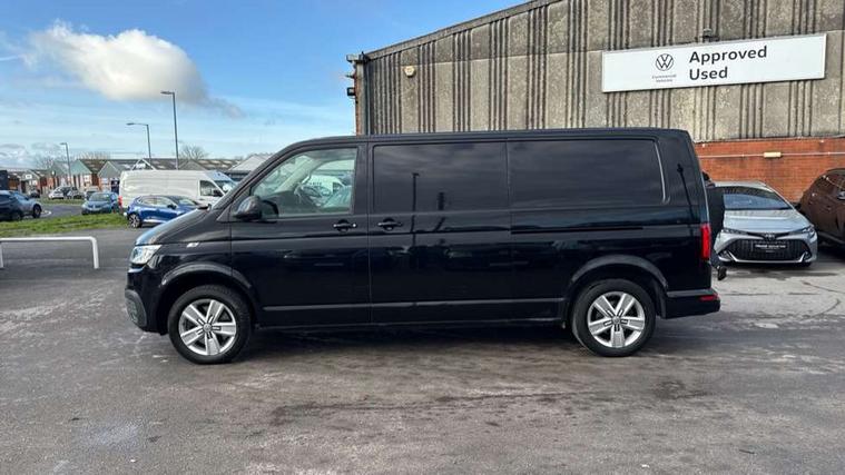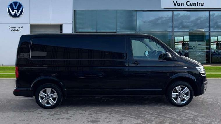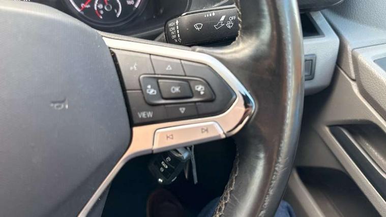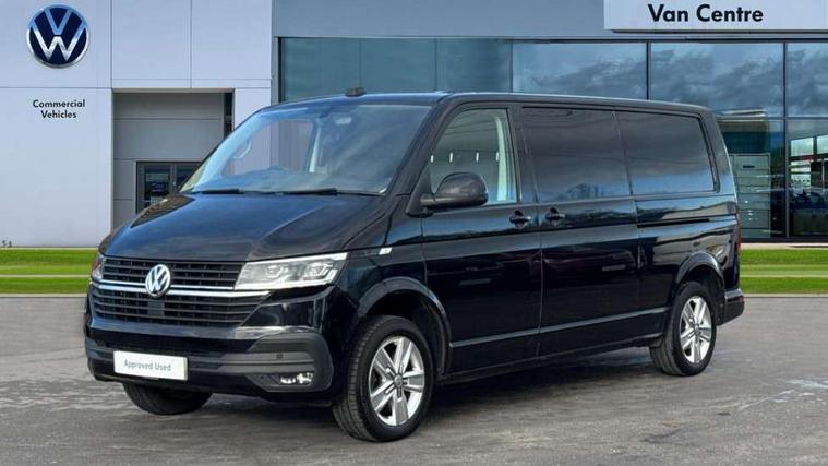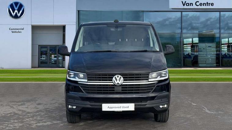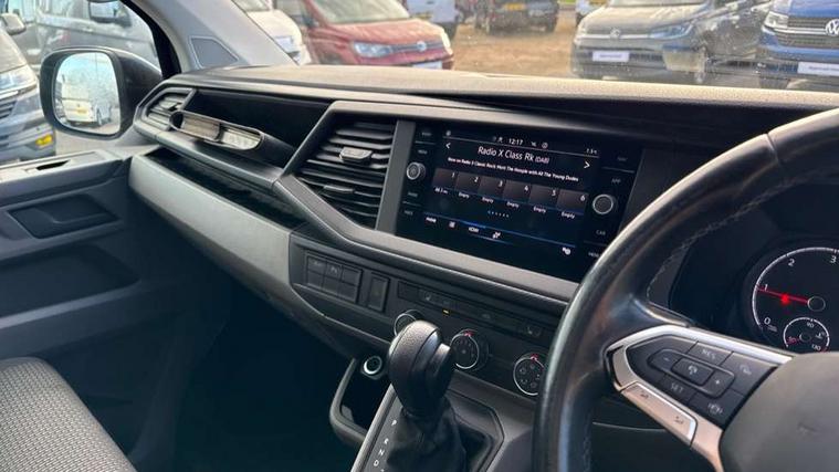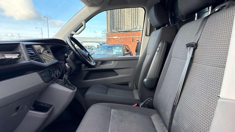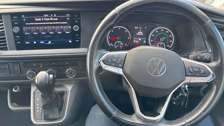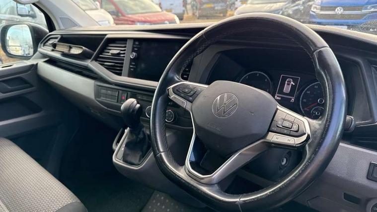 Adaptive cruise control, Cross wind assist, Dimmable illuminated instruments, Driver alert with Multi-function display plus, eCall emergency system, Electromechanical speed sensitive power steering, height and longitudinally adjustable steering column, Forward collision warning front assist with autonomous emergency braking, Mobile phone interface, Multi function display plus with black and white display, 2 USB interfaces type C in dashboard, 4 speakers with 2 tweeters and 2 woofers, Composition colour radio with 6.5" touchscreen, Digital radio reception (DAB+), Volkswagen app connect, Automatic headlight control, leaving home and manual coming home feature, Closing rear wing door with unlatching from the inside, Front fog lamps with cornering light, Heat insulating glass (green) in cab and passenger/load compartment, Heated front windscreen, Left convex exterior mirror, Power folding adjustable door mirrors with separately heated, Radiator grille with 2 chrome trims, Rear wing doors without window apertures, Right convex exterior mirror, Transporter nameplate on the rear fender, Windshield wiper intermittent control with rain sensor for windshield wipers, 3 spoke leather wrapped multi function steering wheel, Auto dimming breakaway interior rear view mirror, Comfort headliner in cab, hardboard roof trim in passenger and load compartment, Dust/pollen filter, Front and rear left without window closed side panel in load compartment, Front seats on the right in 1st row of seat, Glove compartment with illumination, Heavy duty tool kit and jack, High partition, Interior plastic loading edge protection, LED Interior lighting in load and passenger compartment, Manual adjustable lumbar support for right single seat in 1st row seats, Refrigerant R134a, Standard lower part dashboard in palladium, Storage compartments on cab seats and reading light, Without right side window apertures in passenger and load compartment, Comfort pack - Transporter, Exterior pack without fog light- Transporter, Light and vision pack - Transporter, Non smoker pack - Transporter, 3 point height adjustable seat belts on outer seats cab with electric pretensioners, Driver and front passenger airbag with front passenger airbag deactivation, Warning buzzer and light for driver and front passenger seat belt not fastened, Without child safety lock in passenger compartment, Anti theft alarm system with interior monitoring in cab, backup horn and towing protection, Lockable wheel bolts, 16" chassis with 16" brake system, Additional 12V socket, Diesel particulate filter, Electronic stability control, ABS, ASR with deactivation button, hill start assist and brake assist system, Start/stop system with regenerative breaking, 17" Devonport alloy wheels,