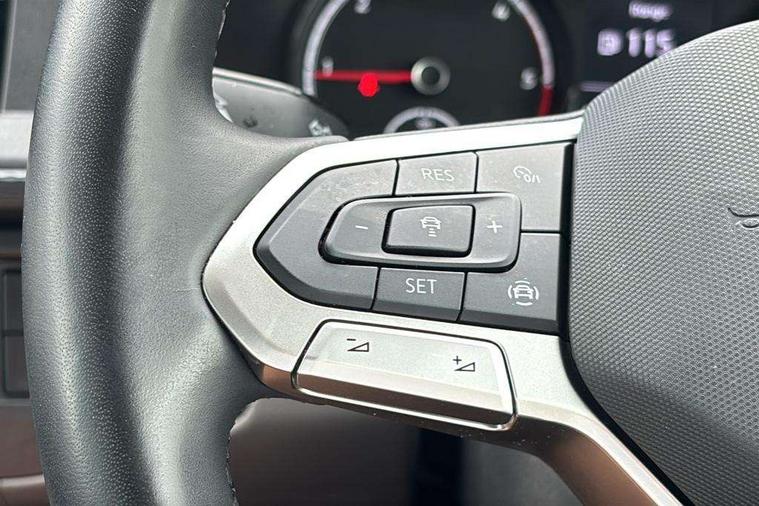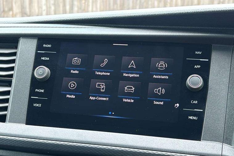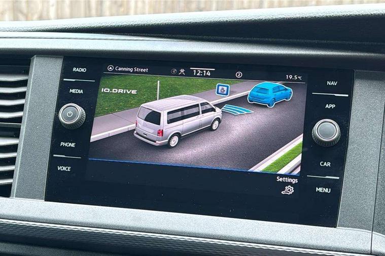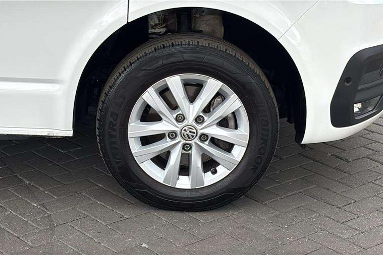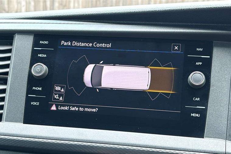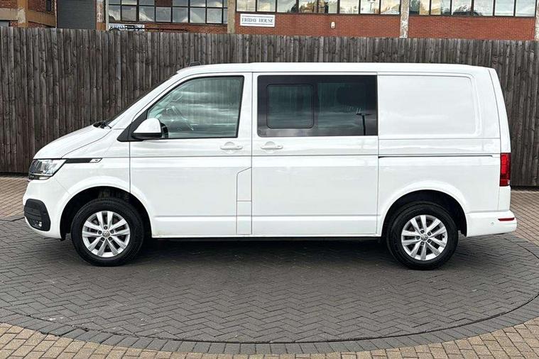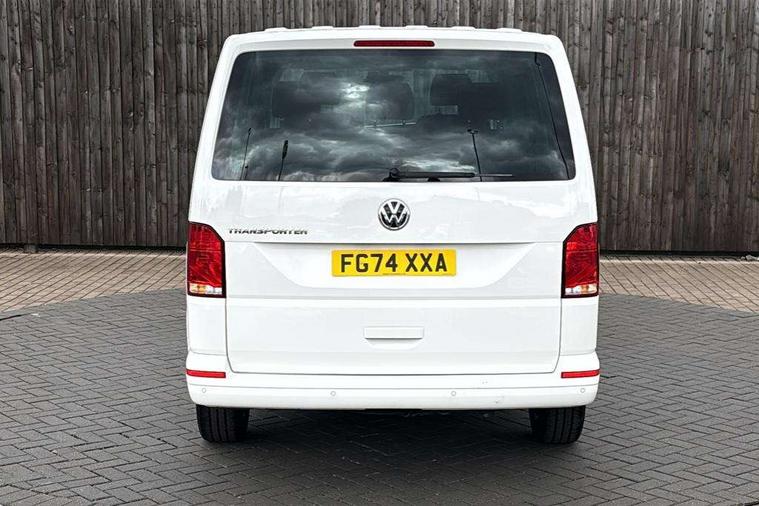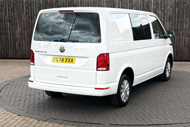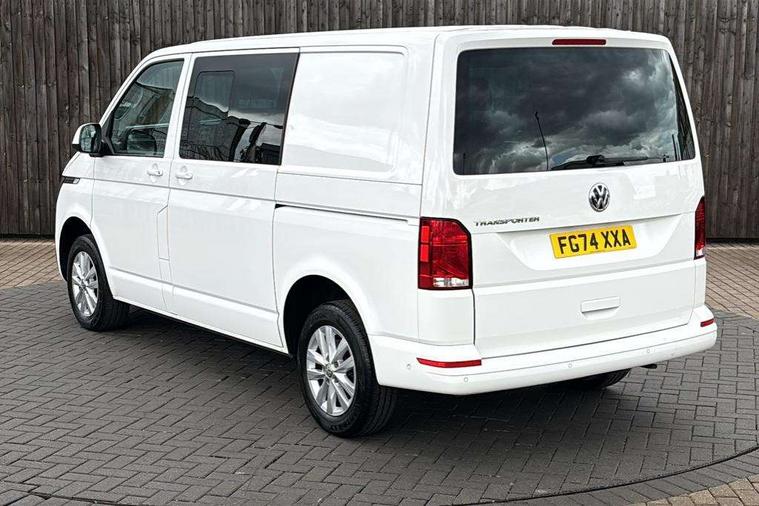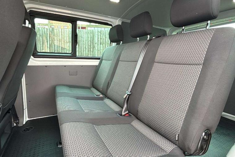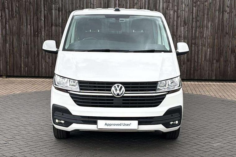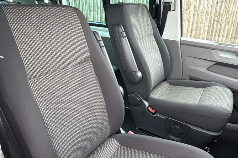 Adaptive cruise control, Child seat anchors ISOFIX and top tether in 2nd row of seats, Cross wind assist, Dimmable illuminated instruments, Driver alert with black and white multi function display plus, eCall emergency system, Forward collision warning front assist with autonomous emergency braking, Headlight range control, Mobile phone interface, Without voice control, 2 USB interfaces type C in dashboard, 4 speakers with 2 tweeters and 2 woofers, Composition colour radio with 6.5" touchscreen, Digital radio reception (DAB+), Volkswagen app connect, Automatic headlight control, leaving home and manual coming home feature, Front fog lamps with cornering light, Green heat insulating glass, Heated front windscreen, Illuminated steps in passenger/load compartment, Left convex exterior mirror, Power folding adjustable door mirrors with separately heated, Privacy glass from the B-pillar and heat-insulating glass in front, Radiator grille with 2 chrome trims, Rear window with heated insulating glass, heated rear window wiper and washer system, Right convex exterior mirror, Tailgate closing with unlatching from the inside, Transporter nameplate on the rear fender, Windshield wiper intermittent control with rain sensor for windshield wipers, Without adhesive film, 3 spoke leather wrapped multi function steering wheel, Additional sound deadening measures in cab and passenger compartment, Auto dimming breakaway interior rear view mirror, Comfort headliner in cab, hardboard roof trim in passenger and load compartment, Dust/pollen filter, Folding grab handles and storage compartments on cab seats, reading light, Front seats on the right in 1st row of seat, Glove compartment with illumination, Heavy duty tool kit and jack, Interior plastic loading edge protection, Lashing rings for load restraint system, LED Interior lighting in load and passenger compartment, Manual height adjustable and lumbar support for driver and single passenger seats, Medium height for vehicles with window aperture hardboard side trim panels in passenger/load compartment, Refrigerant R134a, Standard lower part dashboard in palladium, Without partition, Without seats in 3rd row of seats, Comfort pack - Transporter, Exterior pack without fog light- Transporter, Light and vision pack - Transporter, Non smoker pack - Transporter, 3 point height adjustable seat belts on outer seats cab with electric pretensioners, Driver and front passenger airbag with front passenger airbag deactivation, Power operated child safety lock, Warning buzzer and light for driver seat belt not fastened, Anti theft alarm system with interior monitoring in cab, backup horn and towing protection, Lockable wheel bolts, 16" chassis with 16" brake system, Additional 12V socket, Diesel particulate filter, Electronic stability control, ABS, ASR with deactivation button, hill start assist and brake assist system, Speed limiter, Start/stop system with regenerative breaking, 16" Clayton alloy wheels, Wheel trims,