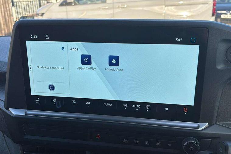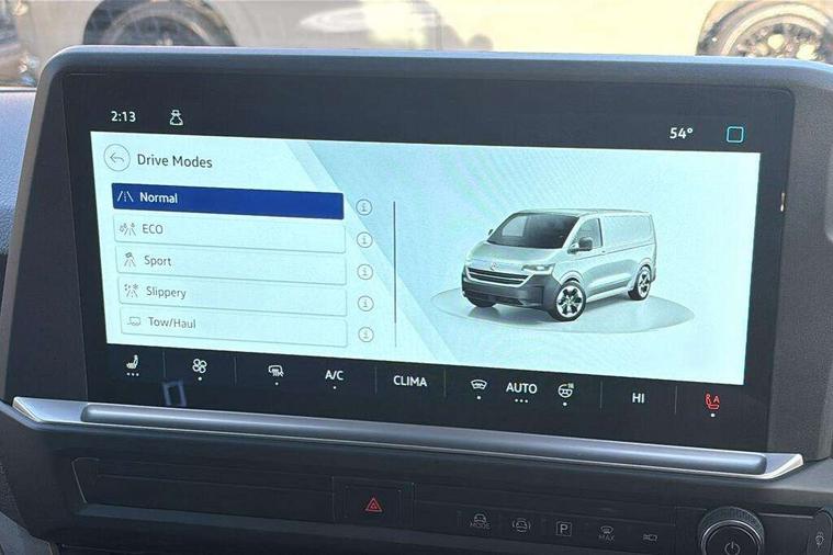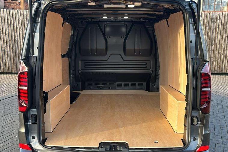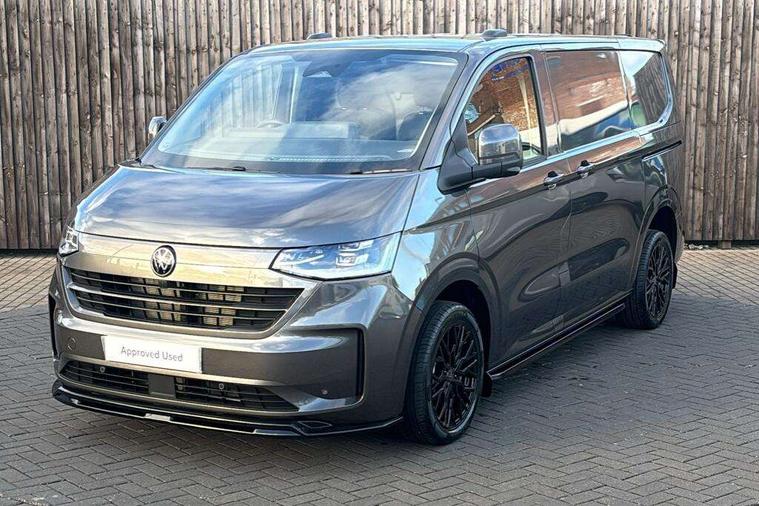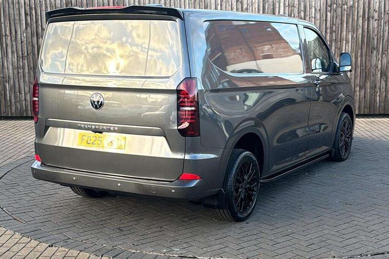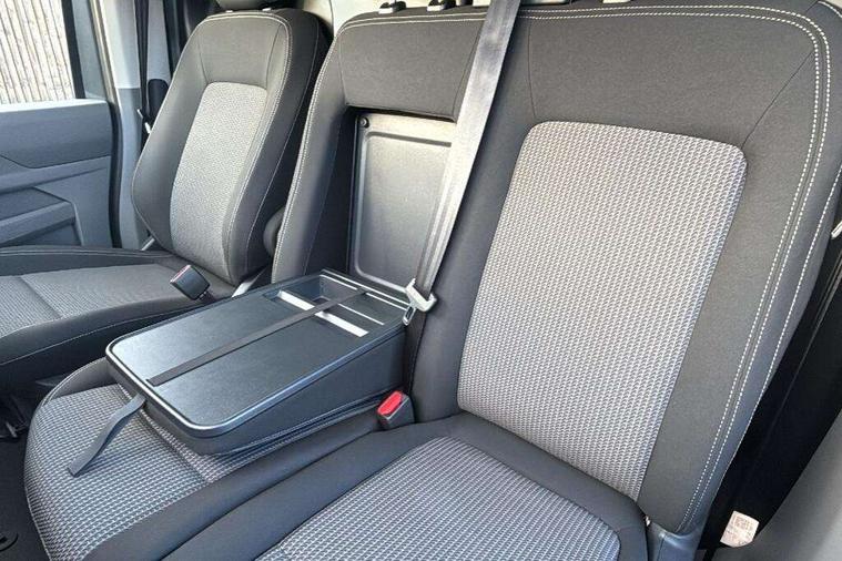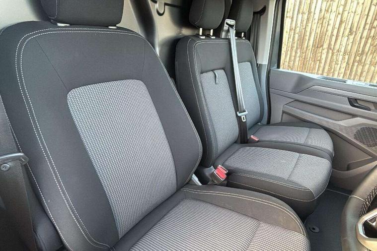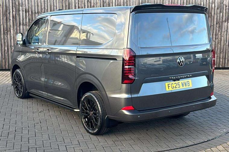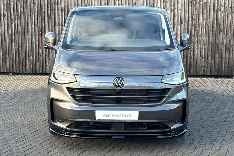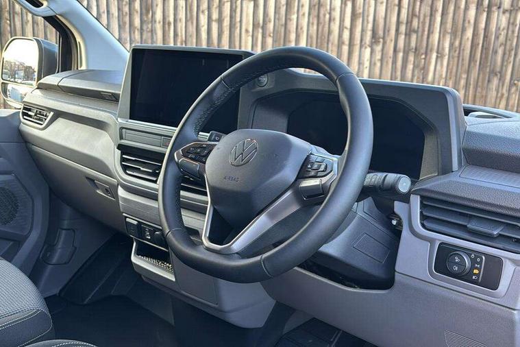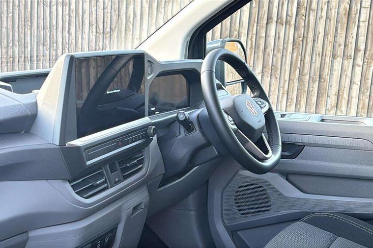 12" digital drivers display, 13" touchscreen infotainment display with wireless app connect and DAB radio, 5G Modem, Adaptive cruise control, Apple CarPlay and Android Auto, Dynamic road sign display, eCall emergency system, Electromechanical speed sensitive power steering, height and longitudinally adjustable steering column, Lane and blind spot assist with exit warning system, Preparation of VW connect and connect plus, Traffic jam assist, Wireless mobile phone charging, Wrong way driver warning, Body colour bumpers, Body coloured door handles, Body coloured door mirrors, Body coloured radiator grille, Electrically heated, adjustable and folding door mirrors, Heat reflecting side window glass, Mud flaps front and rear, Rear Transporter nameplate in black grained decorative trim, Vehicle opening configuration 1x 1st row of seats, 2x all doors, 12V outlet in centre console and 12V outlet on rear right D-pillar, 2x 15-W USB data/charging ports in dashboard and 1x USB-C, 1x USB-A center bottom, 2x LED lights in load compartment, 3x additional super bright LED lights in load compartment, 4 way height and tilt adjustable head restraints, 5 additional USB-C charging ports, Black plastic scuff plate for sliding door in cargo without illumination, Cabin interior lighting, Gear selector lever on steering wheel, Glasses compartment in driver side roof, Grab handle on A-pillar passenger side, Illuminated lockable glovebox, Lashing rings for reinforced floor covering, Narrow centre console with cup holder and compartment for mobile phone, Overhead storage compartment, Rubber floor covering in cab, Striped fabric upholstery, Without passenger seats in load compartment, Driver and front passenger airbag with front passenger airbag deactivation, Dual tone horn, Front and curtain airbags for driver and front passenger, Seat belt pretensioner for driver seat, Anti theft alarm system with interior monitoring in cab, backup horn and towing protection, Electronic immobiliser, Lockable wheel bolts, Preparation for alcohol ignition interlock, 5+ Promise, Alternator - 230A, Electromechanical brake booster, Electronic stability control, ABS, ASR with deactivation button, hill start assist and brake assist system,