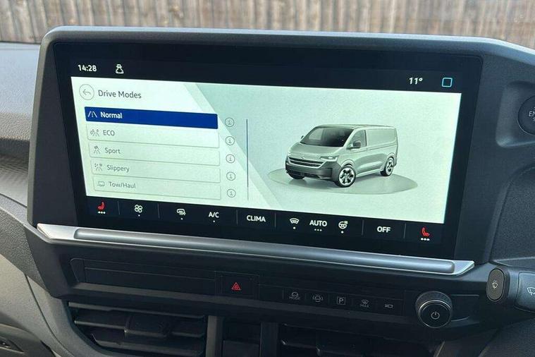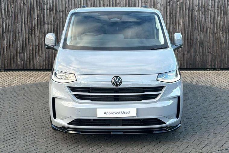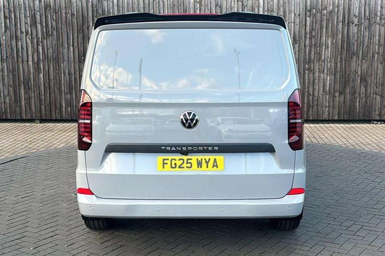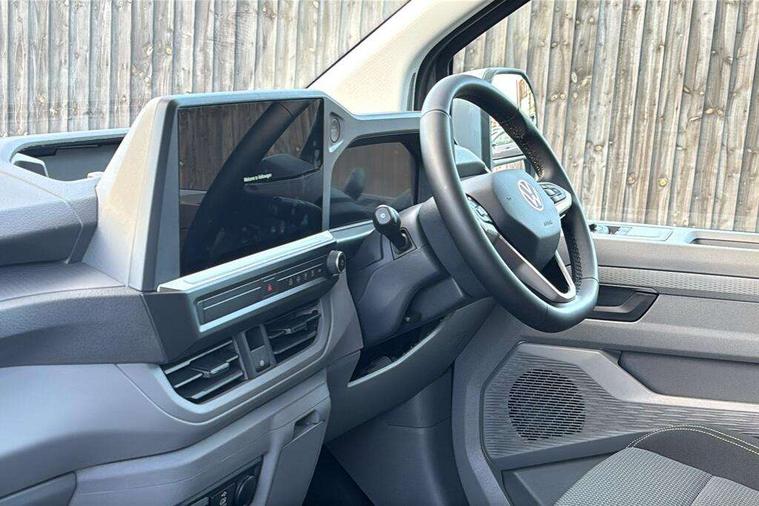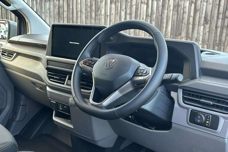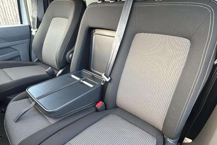 12" digital drivers display, 13" touchscreen infotainment display with wireless app connect and DAB radio, 5G Modem, Adaptive cruise control, Apple CarPlay and Android Auto, Dynamic road sign display, eCall emergency system, Electromechanical speed sensitive power steering, height and longitudinally adjustable steering column, Lane and blind spot assist with exit warning system, Preparation of VW connect and connect plus, Traffic jam assist, Wireless mobile phone charging, Wrong way driver warning, Body colour bumpers, Body coloured door handles, Body coloured door mirrors, Body coloured radiator grille, Electrically heated, adjustable and folding door mirrors, Heat reflecting side window glass, Mud flaps front and rear, Rear Transporter nameplate in black grained decorative trim, Vehicle opening configuration 1x 1st row of seats, 2x all doors, 12V outlet in centre console and 12V outlet on rear right D-pillar, 2x 15-W USB data/charging ports in dashboard and 1x USB-C, 1x USB-A center bottom, 2x LED lights in load compartment, 3x additional super bright LED lights in load compartment, 4 way height and tilt adjustable head restraints, 5 additional USB-C charging ports, Black plastic scuff plate for sliding door in cargo without illumination, Cabin interior lighting, Gear selector lever on steering wheel, Glasses compartment in driver side roof, Grab handle on A-pillar passenger side, Illuminated lockable glovebox, Lashing rings for reinforced floor covering, Narrow centre console with cup holder and compartment for mobile phone, Overhead storage compartment, Rubber floor covering in cab, Striped fabric upholstery, Without passenger seats in load compartment, Driver and front passenger airbag with front passenger airbag deactivation, Dual tone horn, Front and curtain airbags for driver and front passenger, Seat belt pretensioner for driver seat, Anti theft alarm system with interior monitoring in cab, backup horn and towing protection, Electronic immobiliser, Lockable wheel bolts, Preparation for alcohol ignition interlock, 5+ Promise, Alternator - 230A, Electromechanical brake booster, Electronic stability control, ABS, ASR with deactivation button, hill start assist and brake assist system,