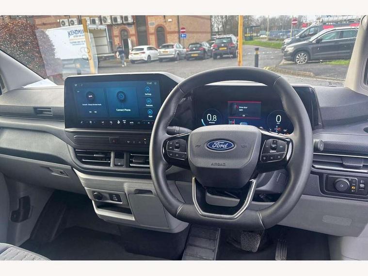 13" Touchscreen, 5G embedded modem, AECS NO SMS/Roll Detect 2G, PAS, Tyre pressure monitor, SYNC 4 - Android Auto/Apple Car Play, advance speech recognition, over the air update capability, Automatic headlights, Automatic windscreen wipers, Body coloured door mirrors, Body coloured front bumper, Body coloured rear bumpers, Daytime running lights, Electric front windows with one touch facility for driver and front passenger, Front mud flaps, Front splash guards, Low roof line, Quickclear front window defroster, Rear cargo hinged door, Rear splash guards, Trailer sway control, 8 Load compartment tie down loops, Courtesy light, Interior grab handle with driver's sunglasses holder, LED lights, Locking glove box lid, Sensico gearshift knob, 2 remote keys, Alcohol Interlock wiring preparation pack, Keyless entry and start, Locking wheel lug nut, Thatcham category 1 alarm, 20L AdBlue tank, ABS, Diesel particulate filter, ESP, Hill launch assist, Traction control, Full wheelcovers,