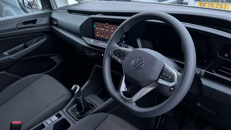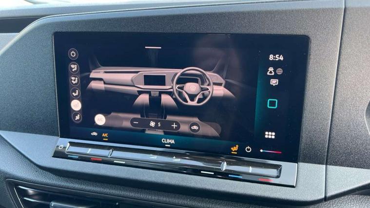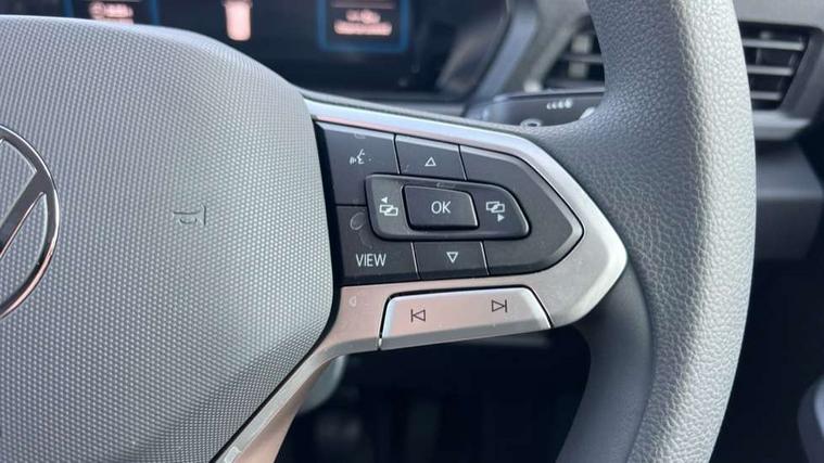Bluetooth - Mobile phone interface, Car2X technology, Driver alert system, eCall emergency system, Intelligent Speed Assist, Lane assist, Seatbelt warning indicator, Service indicator, Start-stop system with regenerative braking, 2 USB interfaces type C in dashboard, DAB Radio, We Connect Basic Preparation, Automatic hazard light activation under emergency braking, Black front and rear bumpers, Electric front windows, Heat insulating windscreen, Roof rail preparation, Windscreen wiper with variable intermittent delay and wash-wipe system, Dimming breakaway interior rear view mirror, Electronically controlled heating system, Interior light in headliner incorporting LED technology, Lockable glove compartment door with light, Manual heating and ventilation system, Manual height adjustment for front seats, Reach and rake adjustable steering column, Six lashing points for securing loads, 3-point seat belts in front, with pretensioner and height adjustment, Driver and front passenger airbag with front passenger airbag deactivation, Tyre pressure monitoring system, Anti-theft alarm system, interior monitoring, backup horn, and towing protection, Electronic engine immobiliser, Remote central locking with deadlocks, interior locking, Anti locking braking system (ABS), Automatic post collision braking system, Autonomous Emergency Braking Front Assist with Pedestrian Monitoring, Brake assist, Diesel particulate filter, Electric parking brake with auto hold function, Electronic brake force distribution (EBD), Electronic differential lock (EDL), Electronic stabilisation programme (ESP), Engine drag torque control (MSR), Hill hold assist, Traction control system (TCS), Decorative beige birch vein inserts, Full size wheel trims,