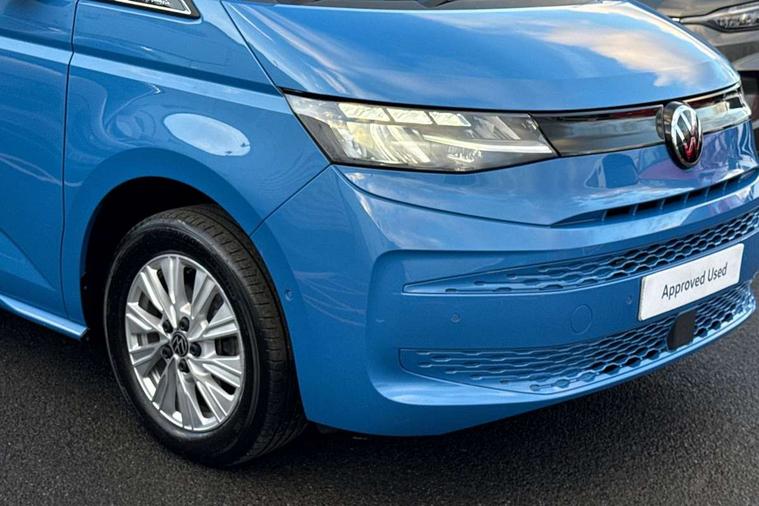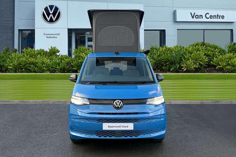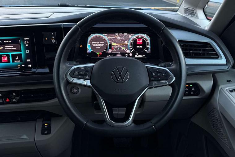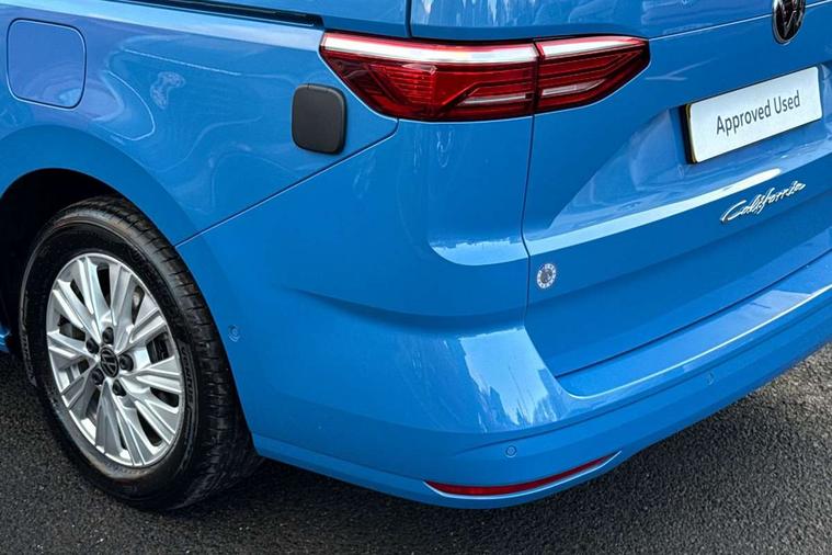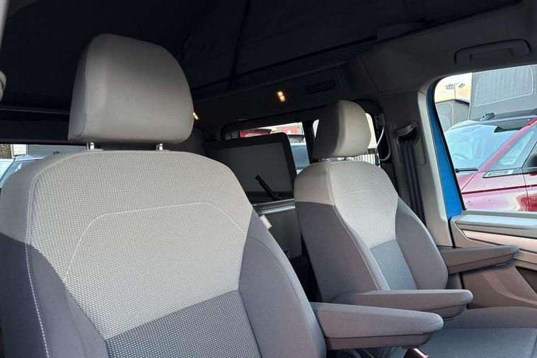 AppConnect including wireless Apple CarPlay, California on tour app, Digital cockpit pro, eCall emergency system, Function control unit, IDA voice assistant and voice enhancer, Lane keeping system Lane Assist, Mobile phone interface, Multifunction camera, Online service, with OCU, with head unit coding, without WFS federation, PAS, Preparation for online services, Tailgate with window aperture, Traffic sign recognition, Turn assist with evasive assistance, 2 USB-C ports at the front, 4 USB-C charging sockets in the passenger compartment, 8 passive speakers, Digital radio reception (DAB+), 65% light absorbing privacy glass, A-pillar, D pillar and tailgate, All weather light, Ambient lighting in door area, Electro hydraulic elevating roof, with three windows including one front passengers panorama opening, canvas in Basalt Grey, Four speed control for windscreen wipers, Front window in laminated safety glass with heat and noise-insulating, Heated windscreen, High gloss black door mirrors, Molding between headlamps painted to glossy black, Nameplate set California, Rear boot, Sliding door on the left passenger compartment, Sliding door on the right passenger compartment, Sliding window in front and fixed window in rear in rear passenger compartment at right, Tailgate closure without unlocking function from the inside, Windscreen wiper intermittent control, 2 single seats with integrated seatbelt and sleeping mat, 230V interver with socket on driver seat, Additional interior noise attenuation, Alcohol interlock, Armrest on front swivel seats in both sides with electric lumbar support, Darkening roller blinds and thermo mats, Drawers under the seats in the driver and passenger compartment + 2 waste bins, Front and rear headrests, Kitchen with outdoor folding table for cooking in décor 1, Lockable glove compartment without lighting, Multifunction leather steering wheel with paddle shifters, Plastic floor covering in passenger/load compartment, Single front passenger seat, Sleeper seats, Surround lighting in door area, Swivel seat on left with height adjustable including drawer, Swivel seat on right with height adjustable including drawer, 3x3 point automatic seatbelts at the rear outside with ECE label, with/without belt tensioner, Advanced driver attention, Autonomous emergency braking front assist with pedestrian and cyclist monitoring, Driver and front passenger airbags with front passenger airbag deactivation button, Drowsiness detection, First aid kit with warning triangle and safety vest, Front disc brakes, Height adjustable three point automatic seatbelts at front with belt and end fitting tensioners, Side and curtain airbags for driver and front passenger, curtain airbags for outer seats in rear, centre airbag in front, Swerve support and oncoming vehicle braking when turning, Tyre pressure loss indicator, Anti theft alarm system with interior monitoring in cab, backup horn and towing protection, Central locking system with keyless locking and starting system keyless advanced with safelock, Lockable wheel bolts, Scale light grey decorative inlays, Full wheel covers, Tool kit, Trims for alloy wheels, Tyre mobility kit,
