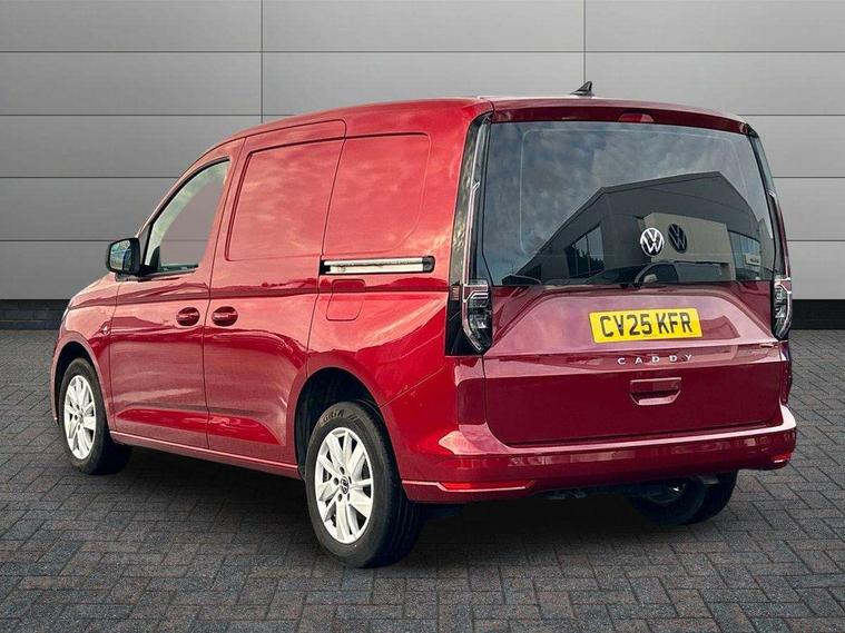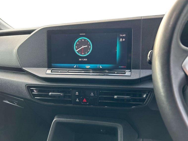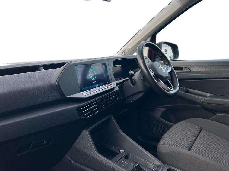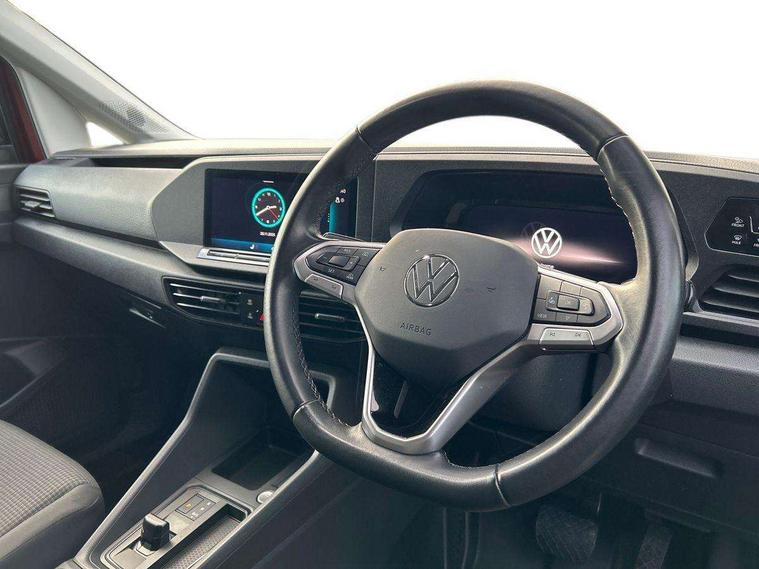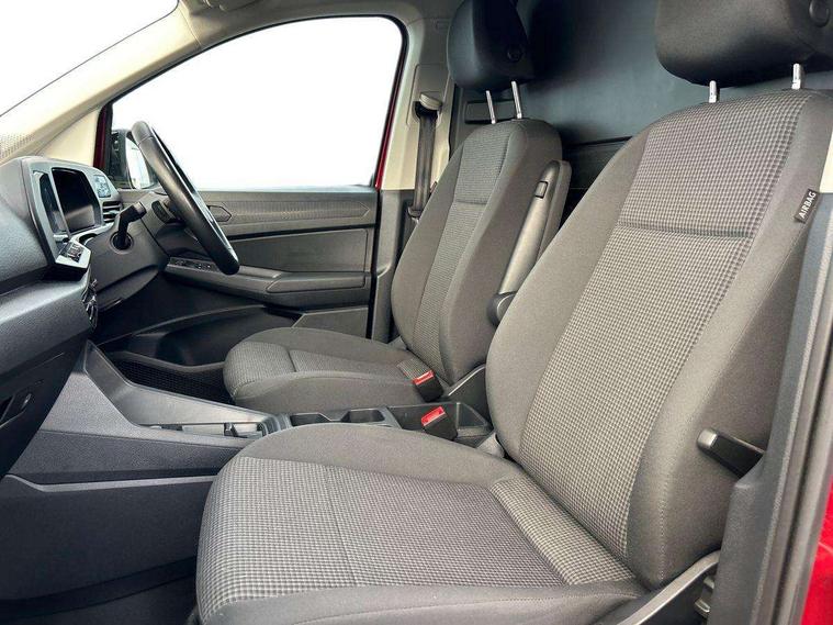 Bluetooth - Mobile phone interface, Digital cockpit, Digital multi-function cockpit display, Driver alert system, eCall emergency system, Front and rear parking sensors, Lane assist, Rear view camera, Seatbelt warning indicator, Service indicator, Start-stop system with regenerative braking, 2 USB interfaces type C in dashboard, App-Connect - Wireless for Apple CarPlay, DAB Radio, We Connect Plus Preparation, Automatic hazard light activation under emergency braking, Body coloured bumpers, Electric front windows, Gloss black painted exterior mirror housings, body-colored door handles and Silver sliding door rail, LED rear combination lights, LED rear tail lights, Rear view mirror with anti dazzle function, Roof rail preparation, Windscreen wiper with variable intermittent delay and wash-wipe system, Electronically controlled heating system, ergoComfort seats for driver, Interior light in headliner incorporting LED technology, Lockable glove compartment door with light, Manual heating and ventilation system, Manual height adjustment for front seats and seat cushion inclination and depth adjustment on drivers seat, Multi function leather steering wheel, Power-adjustable lumbar support for drivers seat, Reach and rake adjustable steering column, Six lashing points for securing loads, Steering wheel paddle shift, Storage compartments under driver and front passenger seats, Sun visors with mirror, airbag label on front passenger sun visor, Winter pack plus - Caddy, 3-point seat belts in front, with pretensioner and height adjustment, Driver and front passenger airbag with front passenger airbag deactivation, Keyless-Go without SAFELOCK, Tyre pressure monitoring system, Anti-theft alarm system, interior monitoring, backup horn, and towing protection, Electronic engine immobiliser, Remote central locking with deadlocks, interior locking, Anti locking braking system (ABS), Automatic post collision braking system, Diesel particulate filter, Electric parking brake with auto hold function, Electronic brake force distribution (EBD), Electronic differential lock (EDL), Electronic stabilisation programme (ESP), Engine drag torque control (MSR), Hill hold assist, Traction control system (TCS), Decorative beige birch vein inserts, Wheel bolts with anti-theft protection (unlockable),