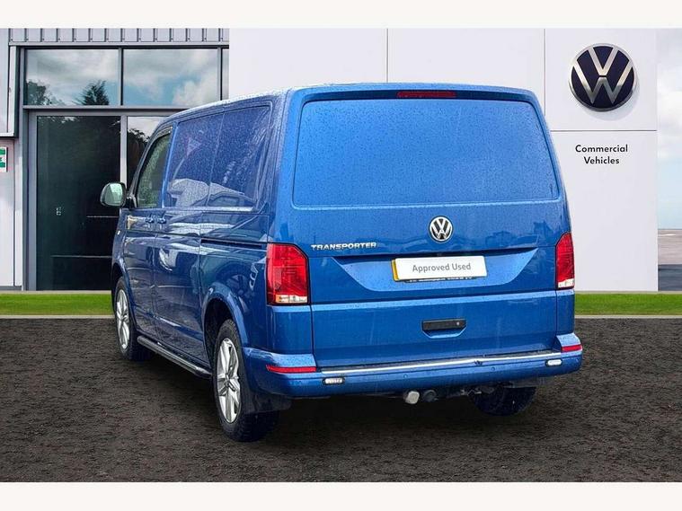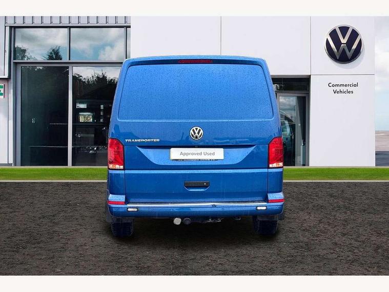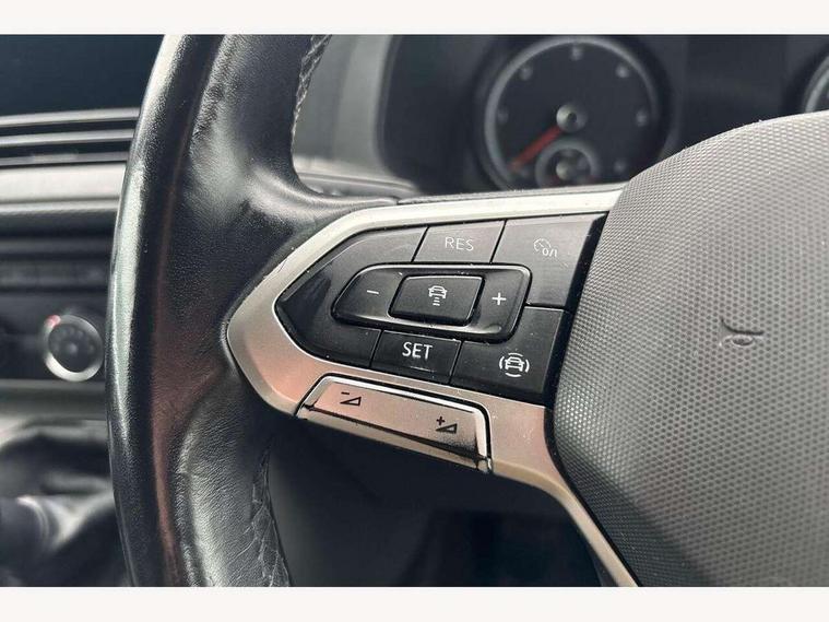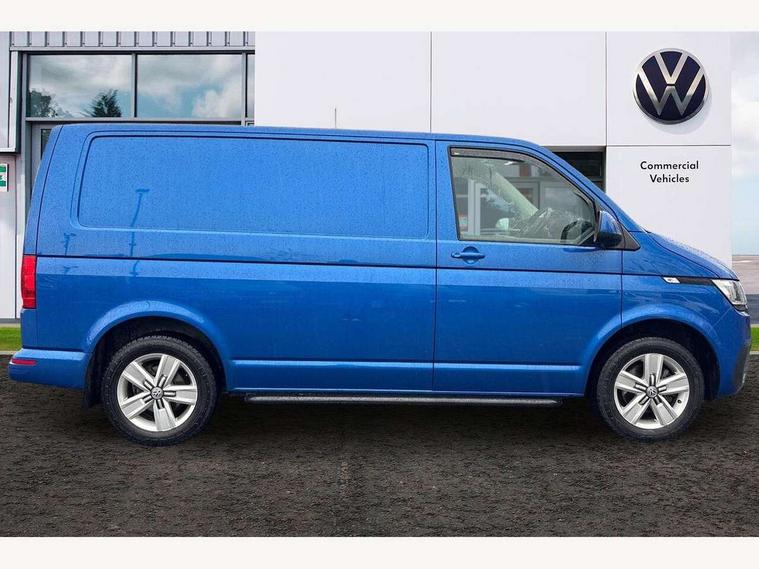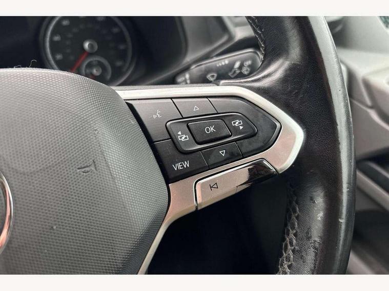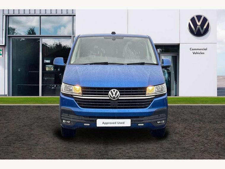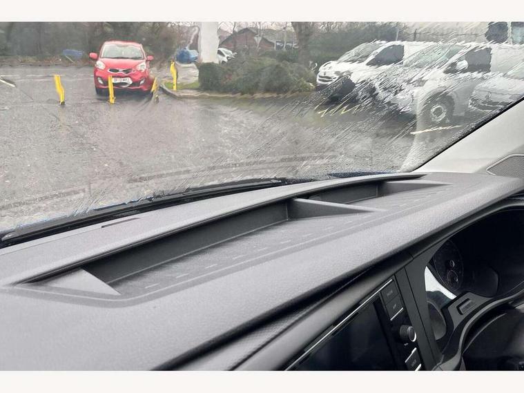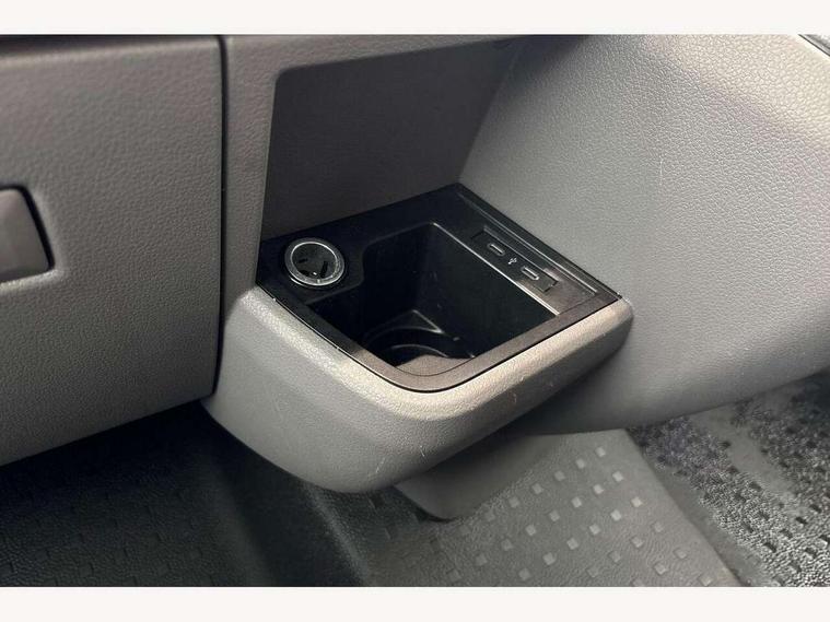Adaptive cruise control, Cross wind assist, Dimmable illuminated instruments, Driver alert with Multi-function display plus, eCall emergency system, Forward collision warning front assist with autonomous emergency braking, Mobile phone interface, Multi function display plus with black and white display, 2 USB interfaces type C in dashboard, 4 speakers with 2 tweeters and 2 woofers, Composition colour radio with 6.5" touchscreen, Digital radio reception (DAB+), Volkswagen app connect, Automatic headlight control, leaving home and manual coming home feature, Closing rear wing door with unlatching from the inside, Front fog lamps with cornering light, Heat insulating glass (green) in cab and passenger/load compartment, Heated front windscreen, Left convex exterior mirror, Power folding adjustable door mirrors with separately heated, Radiator grille with 2 chrome trims, Rear wing doors without window apertures, Right convex exterior mirror, Transporter nameplate on the rear fender, Windshield wiper intermittent control with rain sensor for windshield wipers, 3 spoke leather wrapped multi function steering wheel, Auto dimming breakaway interior rear view mirror, Comfort headliner in cab, hardboard roof trim in passenger and load compartment, Dust/pollen filter, Front and rear left without window closed side panel in load compartment, Front seats on the right in 1st row of seat, Glove compartment with illumination, Heavy duty tool kit and jack, High partition, Interior plastic loading edge protection, LED Interior lighting in load and passenger compartment, Manual adjustable lumbar support for right single seat in 1st row seats, Refrigerant R134a, Standard lower part dashboard in palladium, Storage compartments on cab seats and reading light, Without right side window apertures in passenger and load compartment, Comfort pack - Transporter, Exterior pack without fog light- Transporter, Non smoker pack - Transporter, 3 point height adjustable seat belts on outer seats cab with electric pretensioners, Driver and front passenger airbag with front passenger airbag deactivation, Warning buzzer and light for driver and front passenger seat belt not fastened, Without child safety lock in passenger compartment, Anti theft alarm system with interior monitoring in cab, backup horn and towing protection, Lockable wheel bolts, 16" chassis with 16" brake system, Diesel particulate filter, Electronic stability control, ABS, ASR with deactivation button, hill start assist and brake assist system, Start/stop system with regenerative breaking, 17" Devonport alloy wheels,