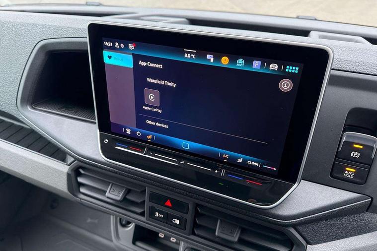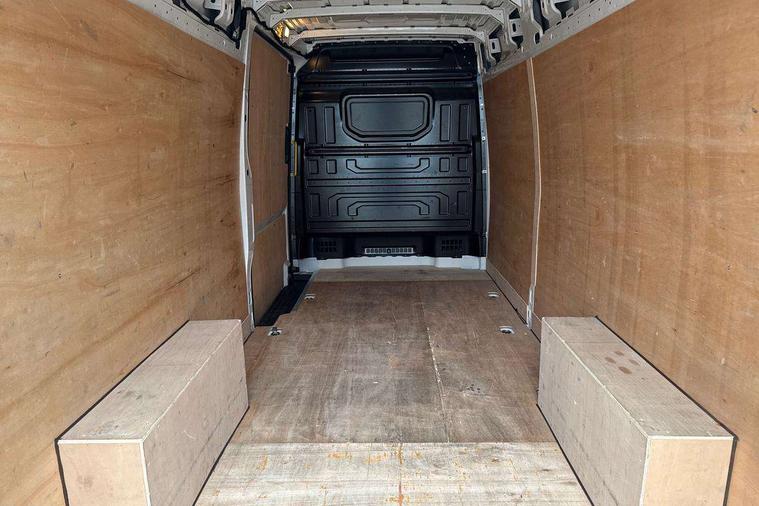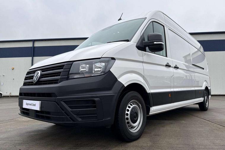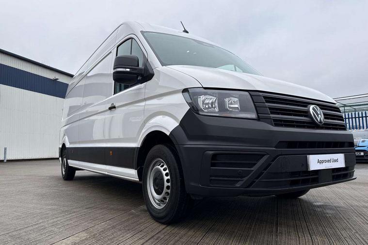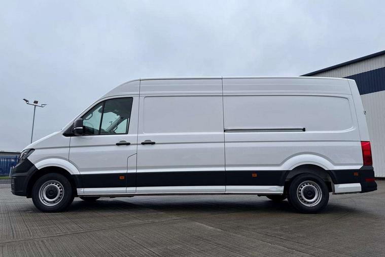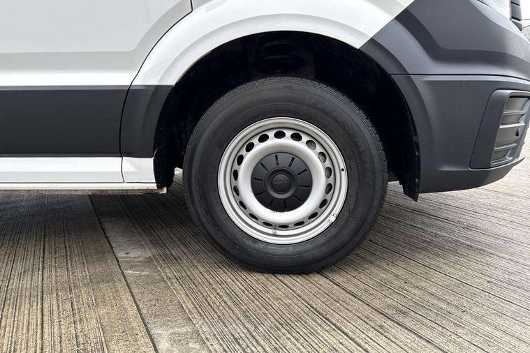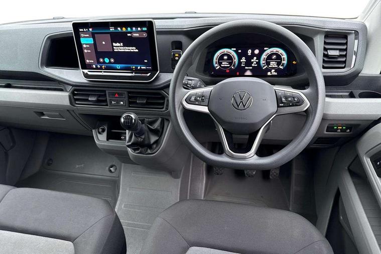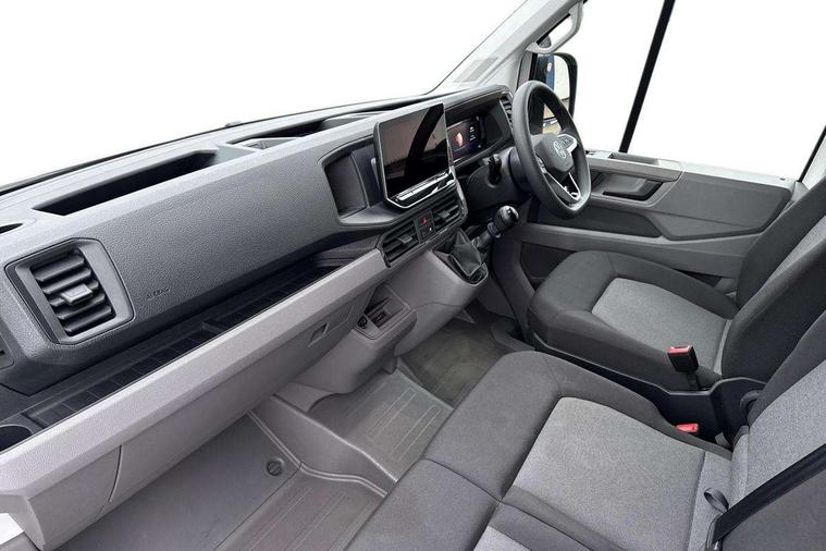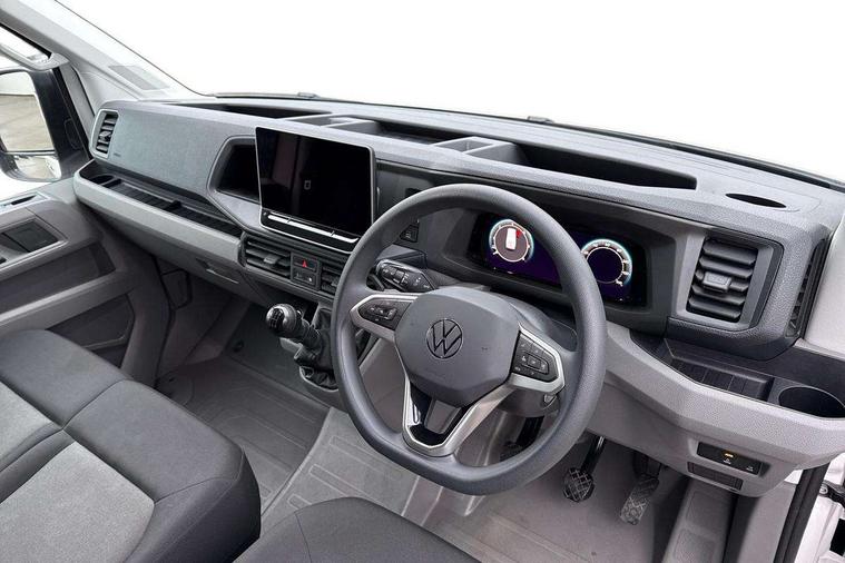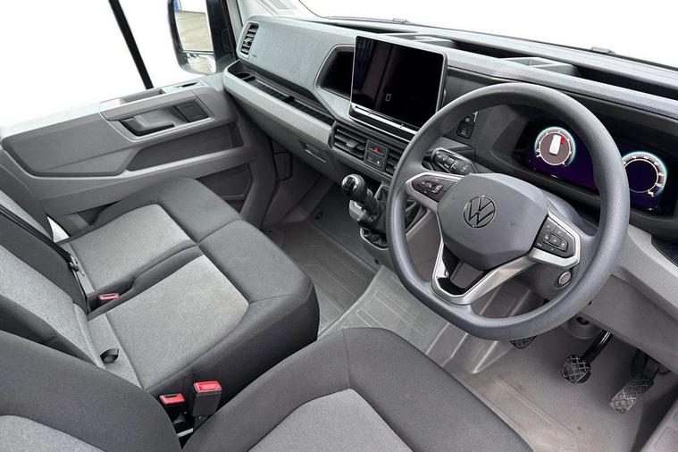 Advanced driver attention and drowsiness monitor, Blind spot monitor, Bluetooth, Digital clock, Digital cockpit with active Info display, Dynamic road sign display, E-call + We connect basic preparation, Forward collision warning with warning and braking reaction to vehicles, pedestrians and cyclists, Front assist including city emergency braking, Instrument cluster, Lane keeping assist, Lights on warning buzzer, Locking fuel cap, Rev counter, Roof console for interior lighting control, Service indicator, Speedometer, USB socket at top of windscreen, Wireless charging, 2 USB C ports in dashboard, DAB Radio, Auto low beam mode, Leaving home function and manual coming home function, Black unpainted plastic front bumper, Cab doors, Convex and wide angle mirror, Driver seatbelt warning light, Electric windows, Heat insulating glass, Indicators in front door mirrors, One towing eye in front, Rear badges, Special identification plate, Touch panel control for exterior lights, Unpainted radiator grille, Windscreen wiper auto control with light and rain sensor, Air recirculation system, Ashtray, Centre console storage tray, CFCU preparation, Charcoal filter, Document holder on centre console, Drinks holders, Electromechanical Servotronic steering, Electronically controlled heating system, Fully adjustable suspension type driver seat, Height adjustable head restraints, Height and reach adjustable steering wheel, Illuminated glove compartment with lockable lid, Interior light, including 2 reading lights, Interior light, switchable by door, Jack and tool kit, Preparation for interface for external use with terminal block, Storage compartments in doors and in step, right, Storage tray on dashboard, Two 12V outlets in the cab (in the dashboard), Without rear side trim panel passenger load compartment, Non-smokers pack - Crafter, 3 point inertia reel belt on all seats, Automatic hazard light with emergency braking, Crosswind assist, Driver and front passenger airbag with front passenger airbag deactivation, Height adjustable seatbelts for outer cab seats, 1 rigid key, Central locking system with Keyless Go without SAFELOCK entry - Keyless entry and start, Engine immobiliser, ABS, Automatic post collision braking system, EBA, EBD, EDL, Electronic parking brake - hill hold control, ESP, Front disc brakes, HBA, Hill start assist, Start and stop system with regenerative braking, TCS, Hub cap covers,
