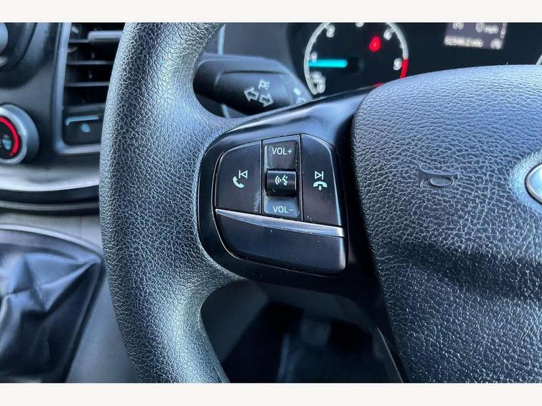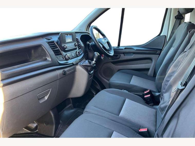 Easy fuel capless refuelling system, Embedded modem, Ford Eco mode, PAS, Selectable drive mode, Trip computer, Vehicle maintenance monitor, Audio controls mounted on steering wheel, Automatic headlamps with follow me home, Black coloured lift/decklid exterior handles, Black exterior door handle, Black exterior mirror finish, Complete grille with 3 bars, Door open tyre carrier drop, Electric front windows with one touch facility for driver and front passenger, Emergency brake light flashing, Front splash guards/Mud flaps, Headlamp levelling, Intermittent front wash/wipe, Kerbside side load doors, Low roof line, Part body colour front bumper, Quad beam headlamps, Rear cargo hinged door, Rear door edge warn reflectors, Rear mudflaps, Rear splash guards, Self coloured rear bumper, Unrestricted side load door opening, Wide bodyside grey mouldings, 2 Interior grab handles, Cloth upholstery, Driver non illuminated sunvisor, Floorwell lights, Glove box lid, Header mounted courtesy lights - 2 map lights, Header mounted package tray, Height adjustable front headrests, Molded gear shift knob, Partial molded headliner, Partial rubber inside floor cover, Passenger non illuminated sunvisor, Passenger underseat storage box, Reach and rake adjustable steering column, Recirculation heater, Tool kit, Interior trim accent pack A- Transit custom, Less rear seat pack - Transit Custom, 3 point seatbelts for all seats, Driver's airbag, Dual note electric horn, Height adjustable drivers seatbelt mount, Passenger seatbelt height adj, Seatbelt remainder for driver and passenger, Auto locking on drive-away, Auto relocking, Non locking lug nuts, Remote central locking, Speed dependent power lock group, 2 12v sockets, 80 litre fuel tank, ABS, Auto start/stop system, Diesel particulate filter, ESP, Extra heavy duty alternator, Mechanical parking brake, Power point plug 400W - Level 2, Roll stability control, Side wind mitigation, Standard duty suspension, 15" steel wheels, Hub cap covers,