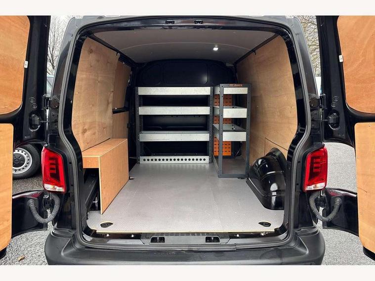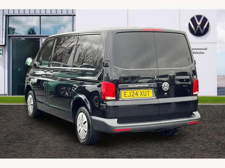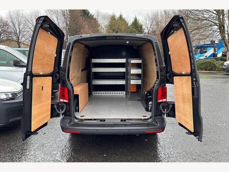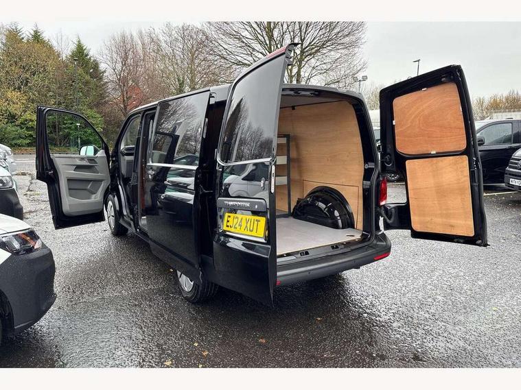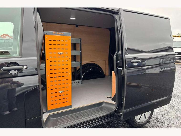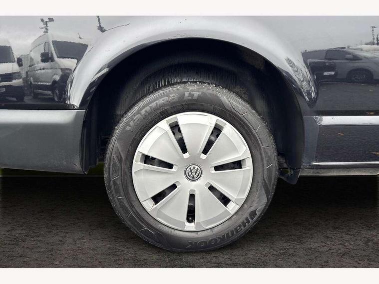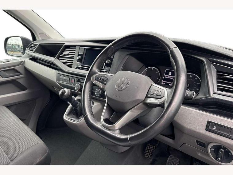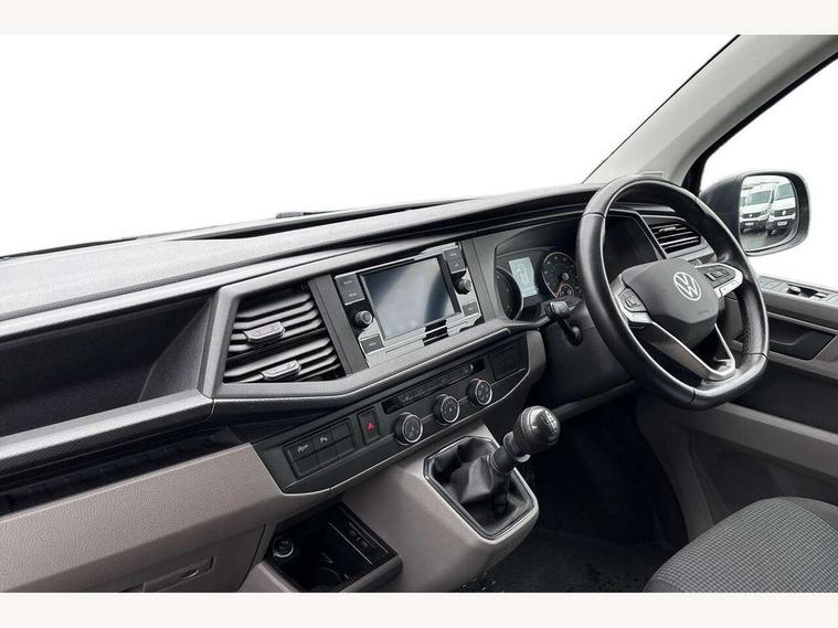 Cross wind assist, Dimmable illuminated instruments, Driver alert with Multi-function display plus, eCall emergency system, Forward collision warning front assist with autonomous emergency braking, Mobile phone interface, Multi function display plus with black and white display, 2 USB interfaces type C in dashboard, 4 speakers with 2 tweeters and 2 woofers, Composition colour radio with 6.5" touchscreen, Digital radio reception (DAB+), Volkswagen app connect, Closing rear wing door with unlatching from the inside, H7 twin halogen headlamps, Heat insulating glass (green) in cab and passenger/load compartment, Heat insulating windshield made of laminated glass, Left convex exterior mirror, Rear wing doors without window apertures, Right convex exterior mirror, Separate Daytime running lights, Transporter nameplate on the rear fender, Unpainted radiator grille with 2 chrome trims, 3 spoke leather wrapped multi function steering wheel, Comfort headliner in cab, hardboard roof trim in passenger and load compartment, Dust/pollen filter, Folding grab handles on roof frame, Front and rear left without window closed side panel in load compartment, Front seats on the right in 1st row of seat, Heavy duty tool kit and jack, High partition, Interior plastic loading edge protection, LED Interior lighting in load and passenger compartment, Standard lower part dashboard in palladium, Without refrigerant, Without right side window apertures in passenger and load compartment, Non smoker pack - Transporter, 3 point height adjustable seat belts on outer seats cab with electric pretensioners, Driver and front passenger airbag with front passenger airbag deactivation, Warning buzzer and light for driver and front passenger seat belt not fastened, Without child safety lock in passenger compartment, Electronic immobiliser, Wheel bolts without wheel locks, 16" chassis with 16" brake system, Diesel particulate filter, Electronic stability control, ABS, ASR with deactivation button, hill start assist and brake assist system, Standard anti drum measures, Start/stop system with regenerative breaking,