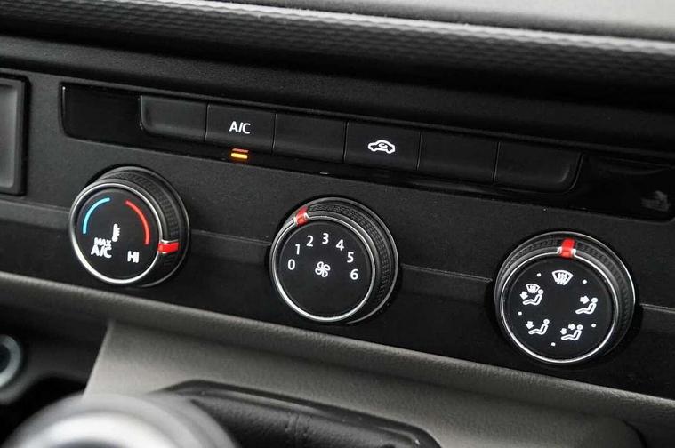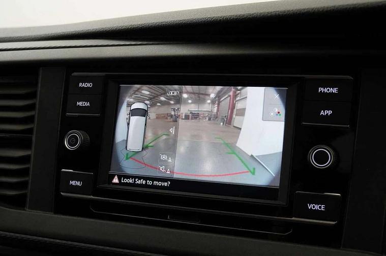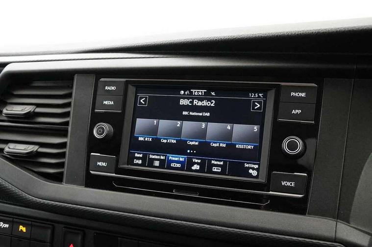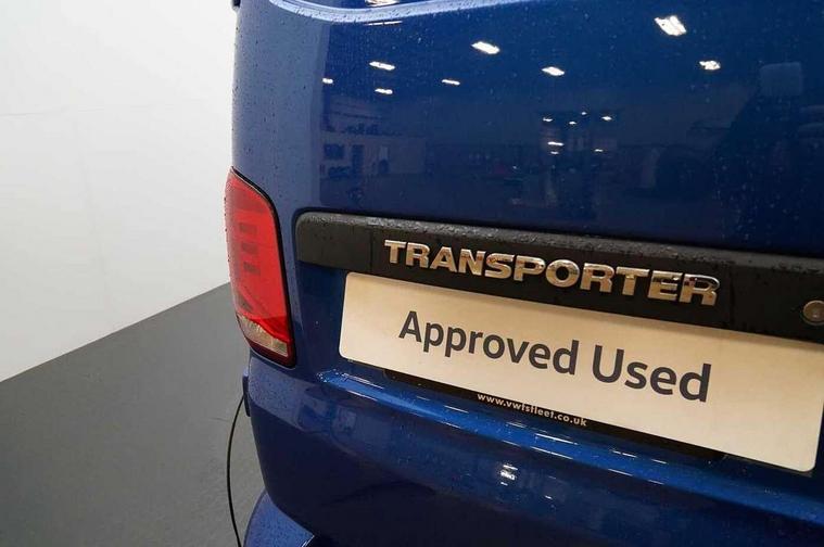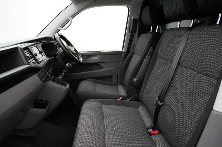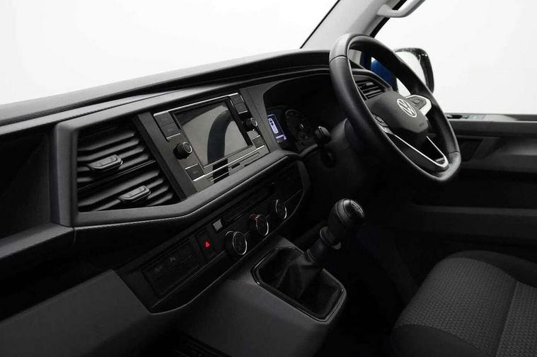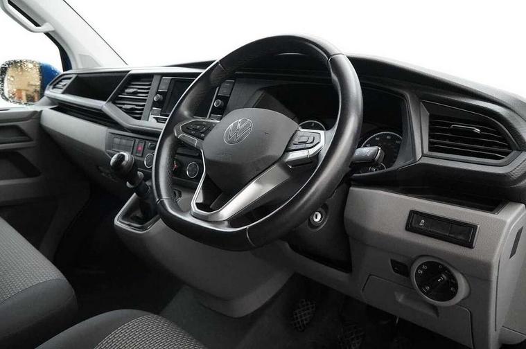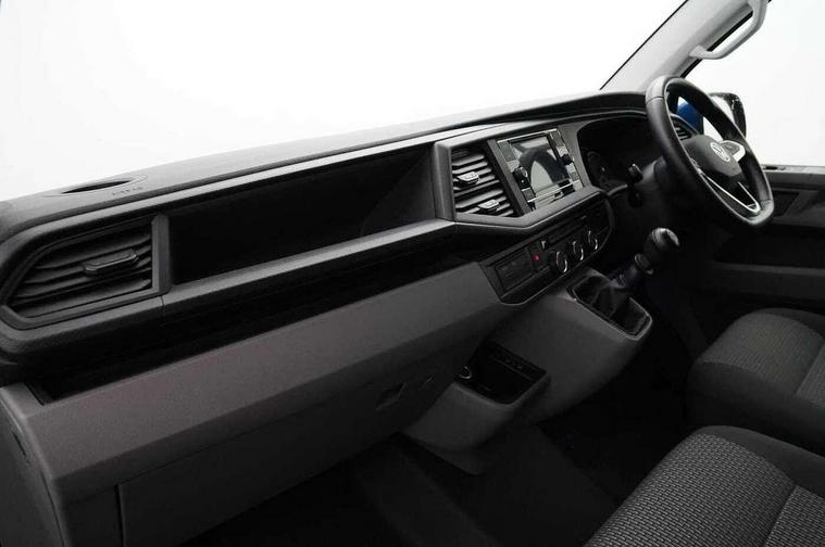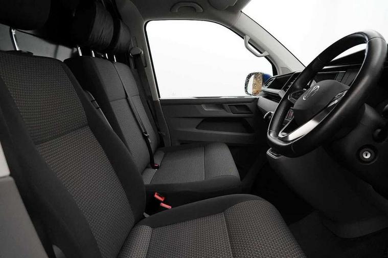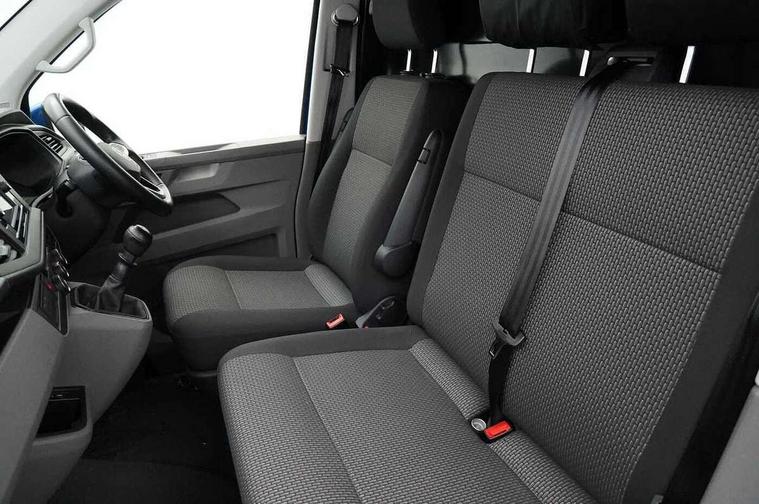 Adaptive cruise control, Cross wind assist, Dimmable illuminated instruments, Driver alert with Multi-function display plus, eCall emergency system, Forward collision warning front assist with autonomous emergency braking, Mobile phone interface, Multi function display plus with black and white display, 2 USB interfaces type C in dashboard, 4 speakers with 2 tweeters and 2 woofers, Composition colour radio with 6.5" touchscreen, Digital radio reception (DAB+), Volkswagen app connect, Automatic headlight control, leaving home and manual coming home feature, Closing rear wing door with unlatching from the inside, Front fog lamps with cornering light, Heat insulating glass (green) in cab and passenger/load compartment, Heated front windscreen, Left convex exterior mirror, Power folding adjustable door mirrors with separately heated, Radiator grille with 2 chrome trims, Rear wing doors without window apertures, Right convex exterior mirror, Transporter nameplate on the rear fender, Windshield wiper intermittent control with rain sensor for windshield wipers, 3 spoke leather wrapped multi function steering wheel, Auto dimming breakaway interior rear view mirror, Comfort headliner in cab, hardboard roof trim in passenger and load compartment, Dust/pollen filter, Front and rear left without window closed side panel in load compartment, Front seats on the right in 1st row of seat, Glove compartment with illumination, Heavy duty tool kit and jack, High partition, Interior plastic loading edge protection, LED Interior lighting in load and passenger compartment, Manual adjustable lumbar support for right single seat in 1st row seats, Refrigerant R134a, Standard lower part dashboard in palladium, Storage compartments on cab seats and reading light, Without right side window apertures in passenger and load compartment, Comfort pack - Transporter, Exterior pack without fog light- Transporter, Non smoker pack - Transporter, 3 point height adjustable seat belts on outer seats cab with electric pretensioners, Driver and front passenger airbag with front passenger airbag deactivation, Warning buzzer and light for driver and front passenger seat belt not fastened, Without child safety lock in passenger compartment, Anti theft alarm system with interior monitoring in cab, backup horn and towing protection, Lockable wheel bolts, 16" chassis with 16" brake system, Diesel particulate filter, Electronic stability control, ABS, ASR with deactivation button, hill start assist and brake assist system, Start/stop system with regenerative breaking, 16" Clayton alloy wheels,